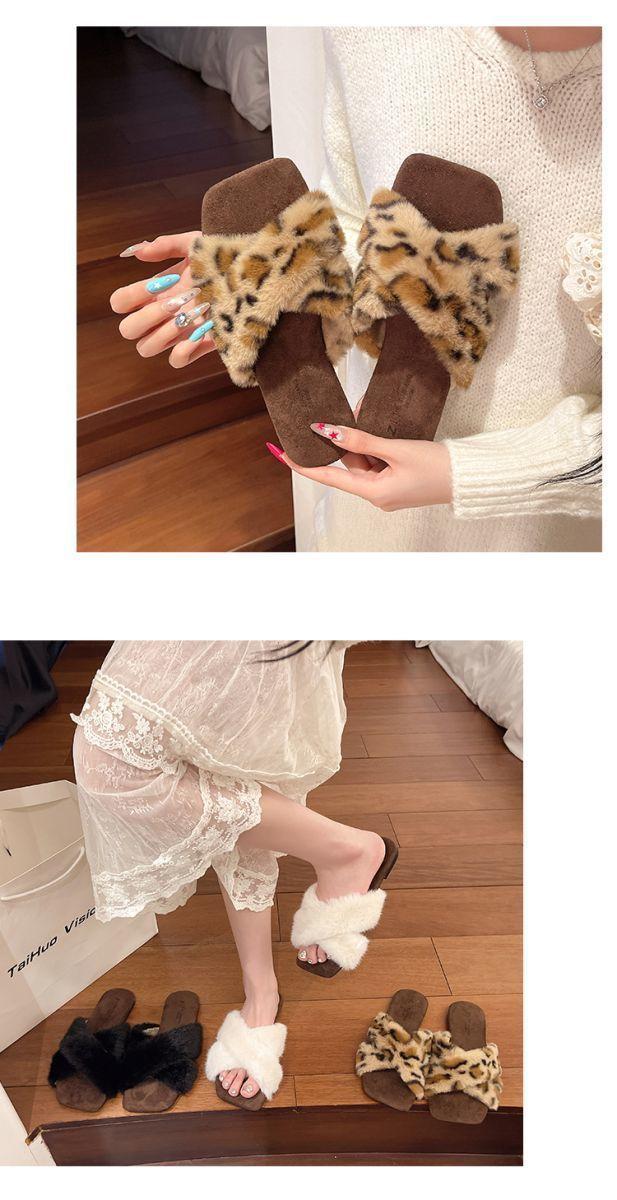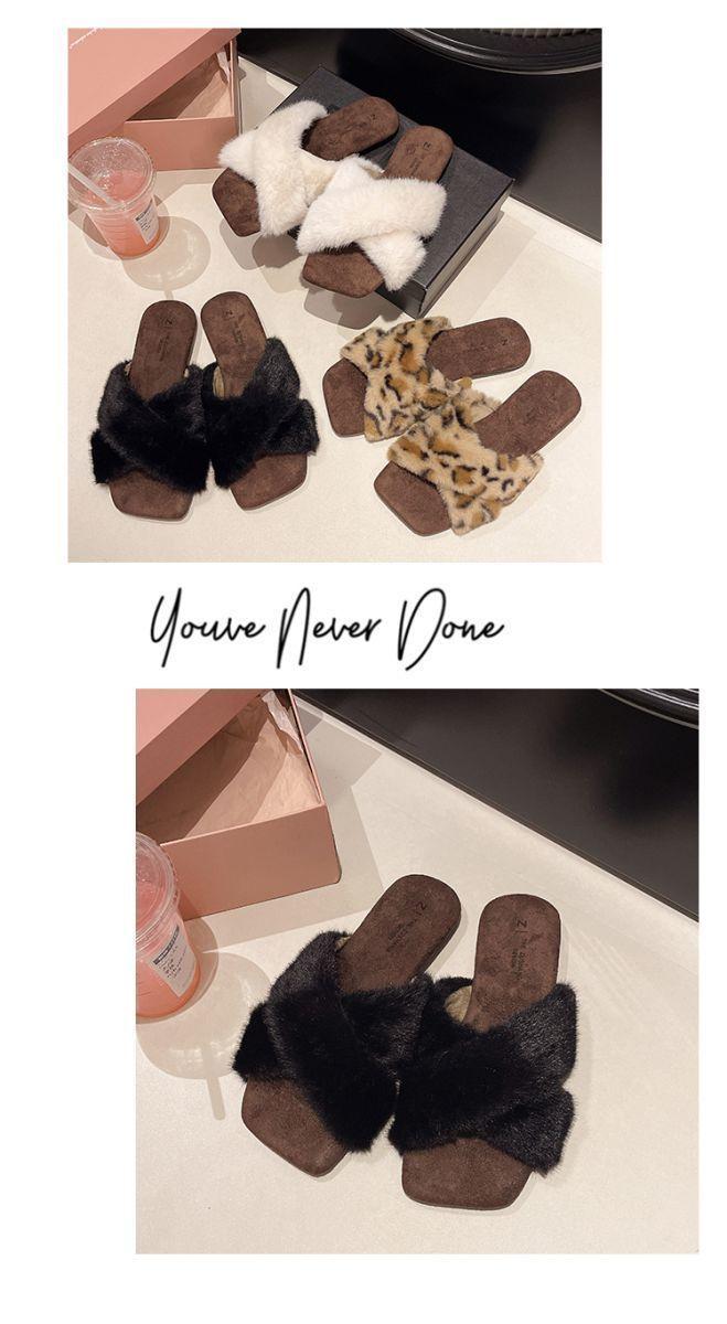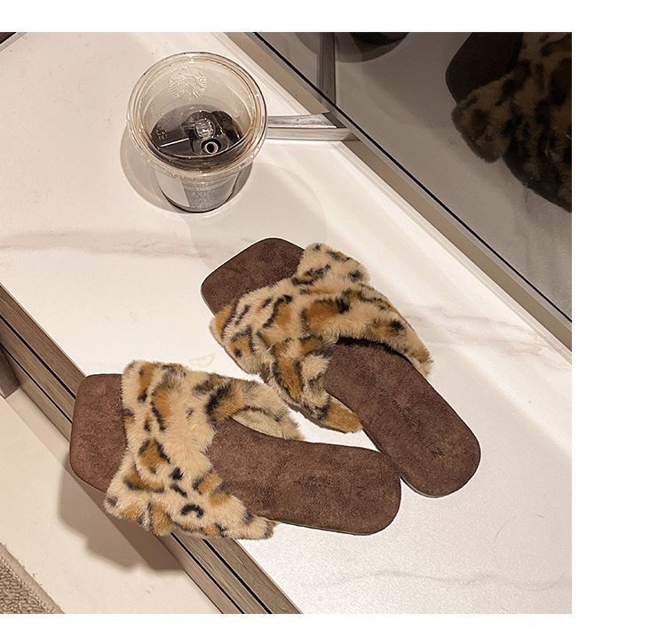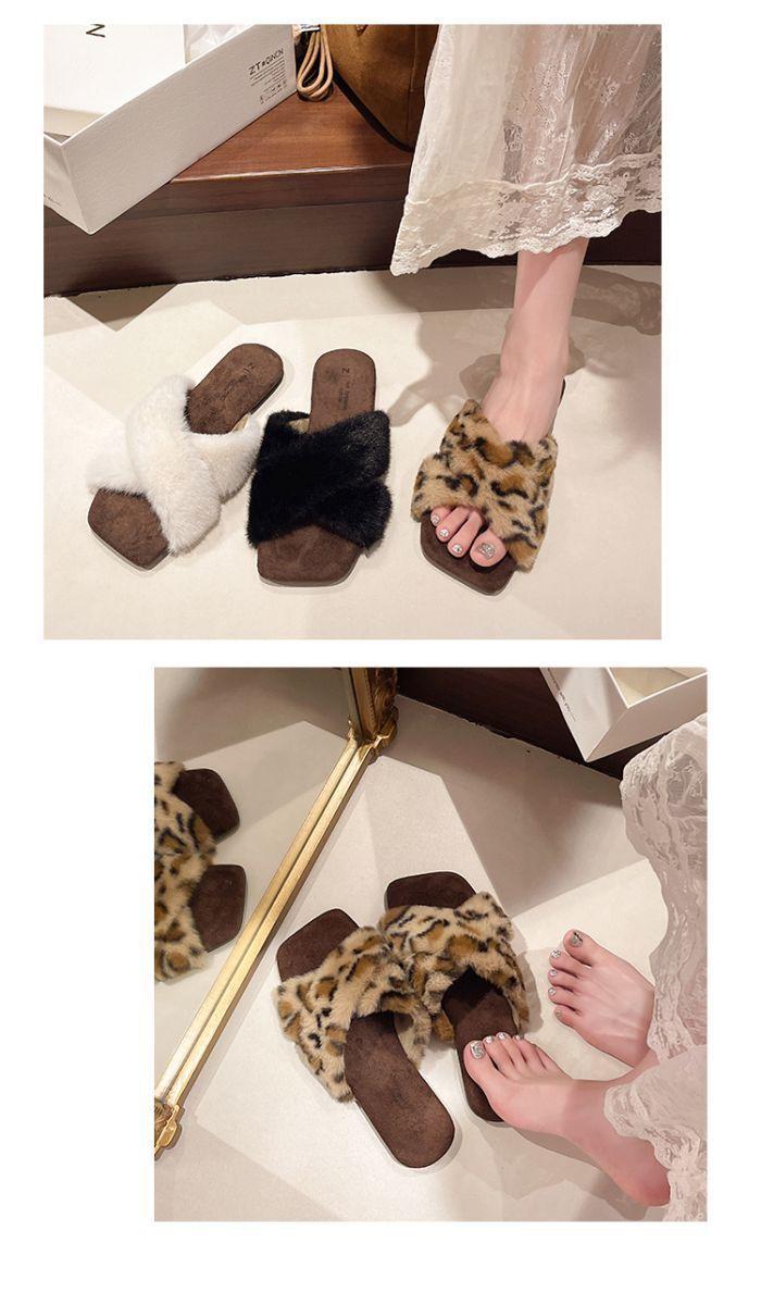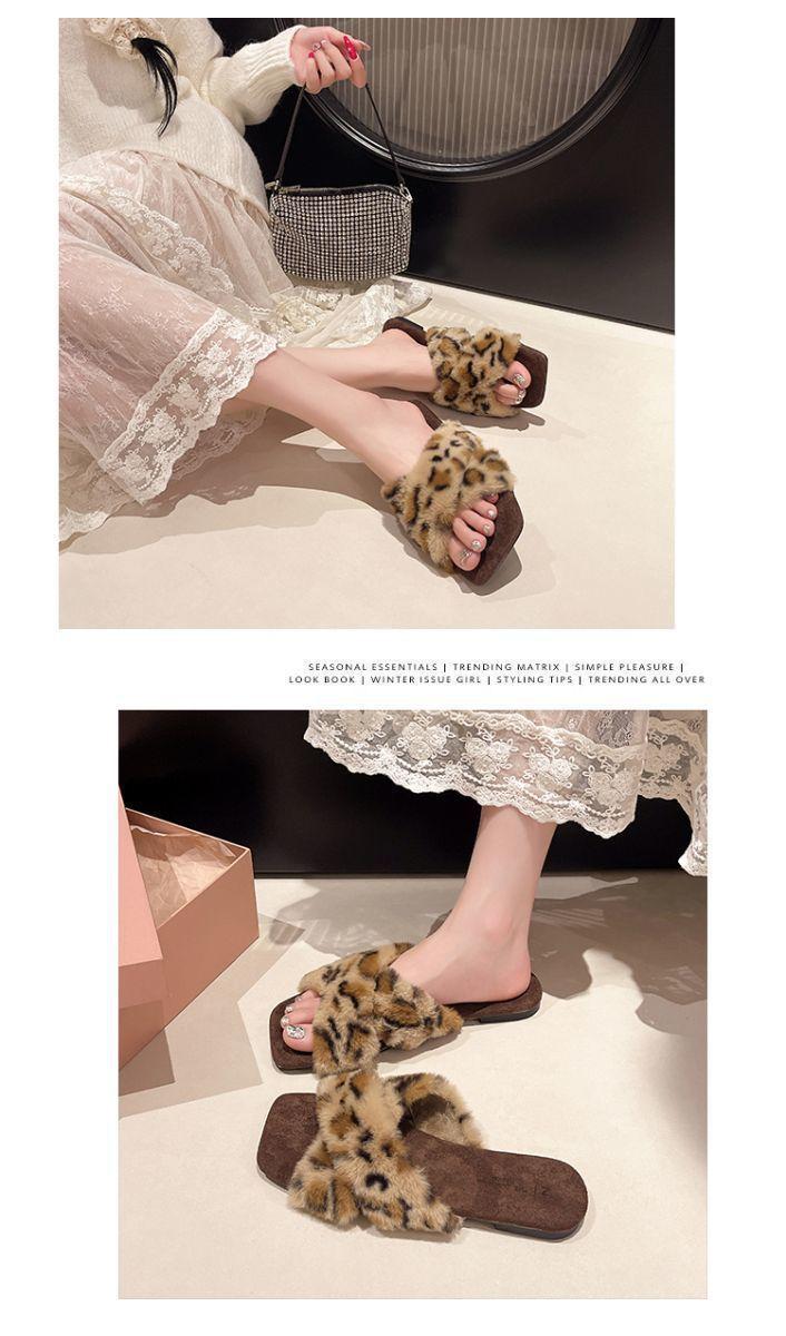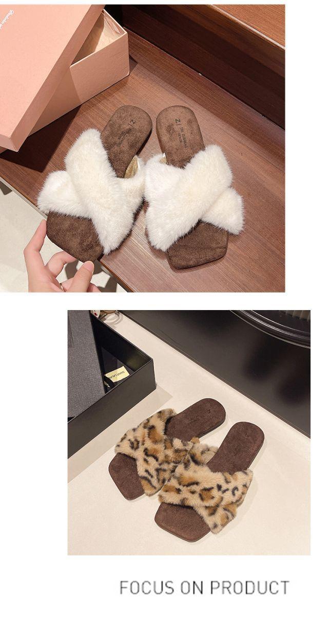 Pantuflas planas peludas francesas que las mujeres usan en la calle 2025 nuevo otoño e invierno felpa de alta gama pantuflas de una tira pantuflas de casa