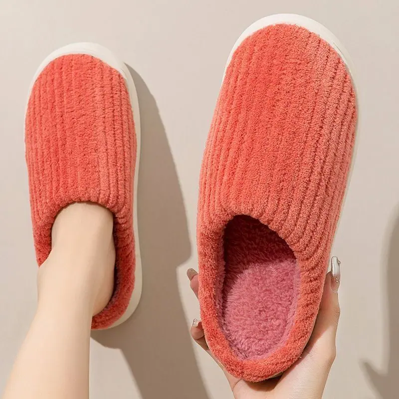2025 Nuevo Par Suela Suave Antideslizante Cálidas Pantuflas de Invierno Cubiertas del Talón Pantuflas de Algodón para Mujer para Otoño e Invierno para Interior Hogar