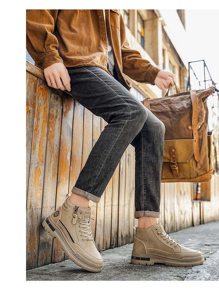 Botas Martin de caña alta para hombre zapatos de otoño nuevos transpirables zapatos de trabajo modernos versátiles antideslizantes resistentes al desgaste zapatos deportivos de protección laboral para hombre