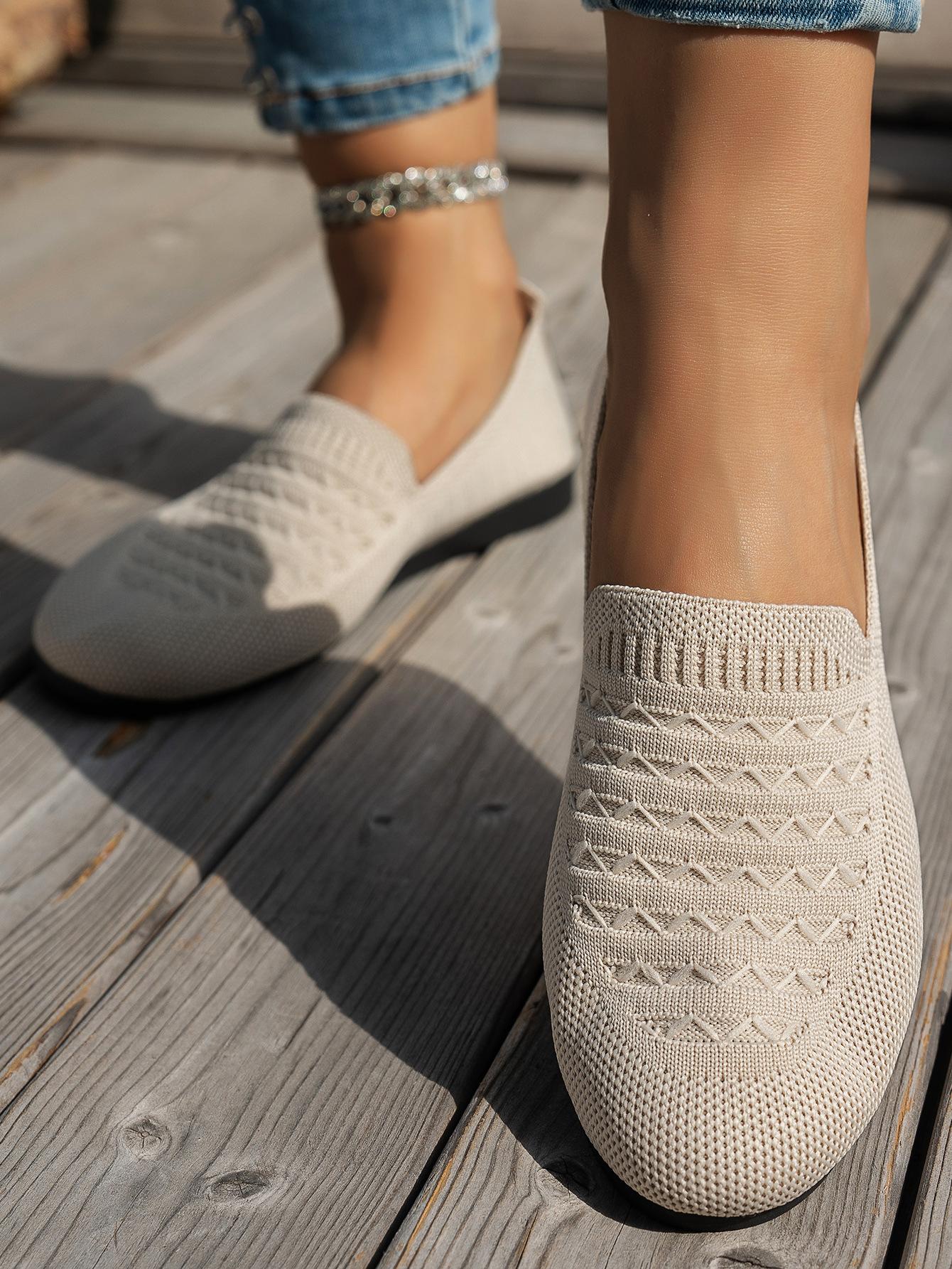 Nuevos zapatos bajos de punto transpirables de talla grande transfronterizos para mujer, de punta redonda, suela plana, ligeros, de punto, tipo mocasines holgazanes