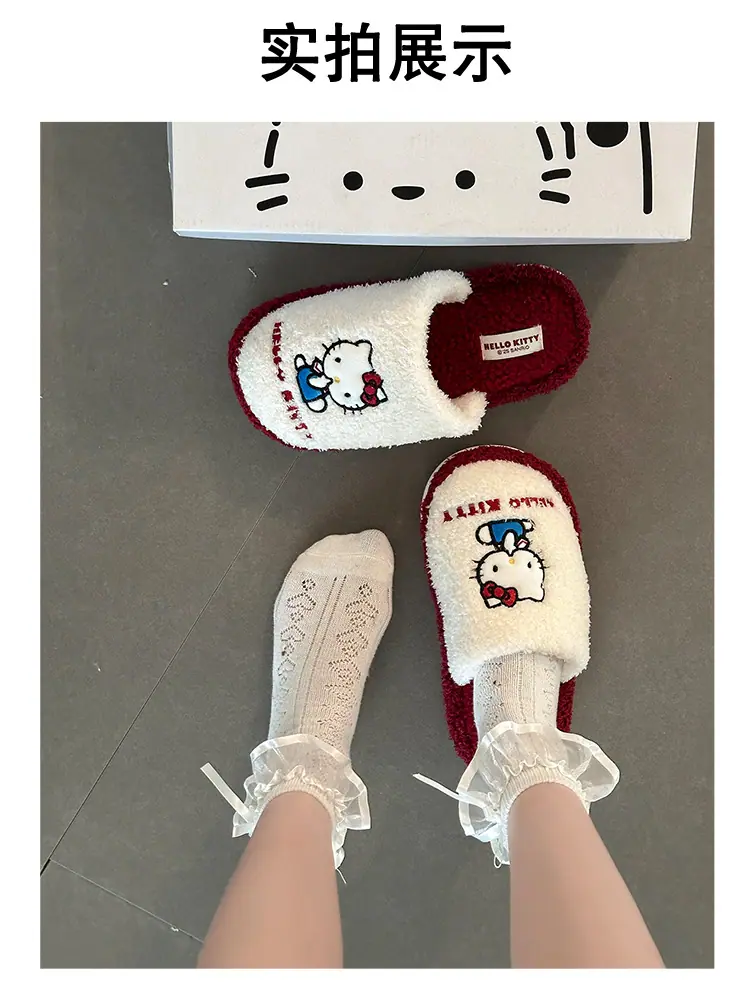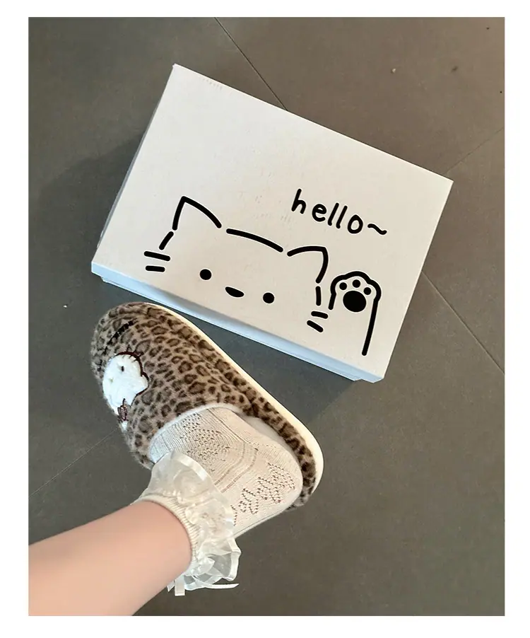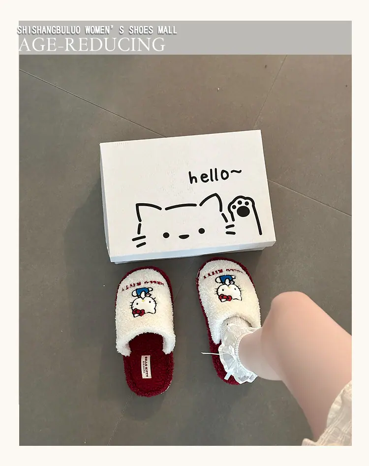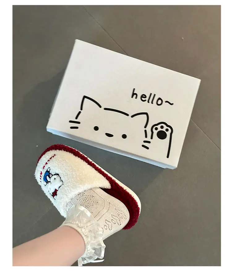 Zapatillas casuales de moda sin cordones de punta cerrada para mujer otoño invierno lindas de dibujos animados para el hogar versátiles cálidas planas esponjosas