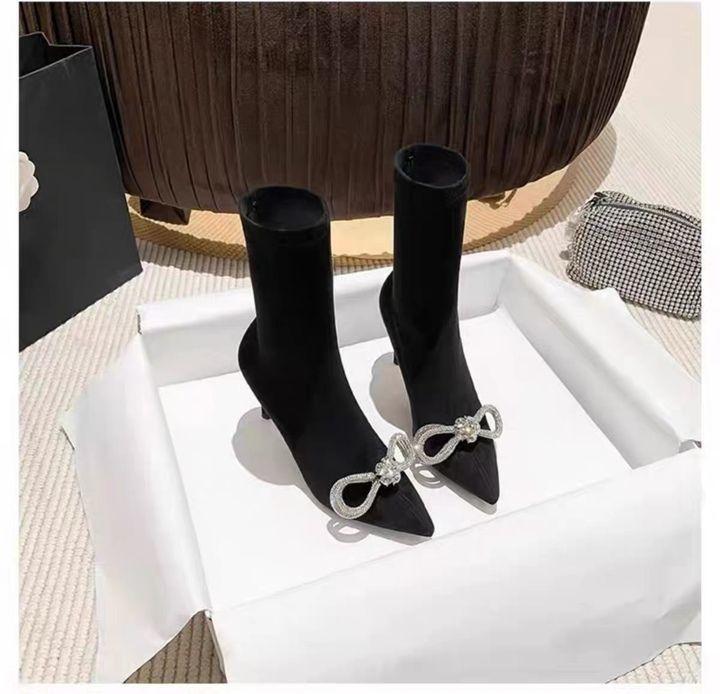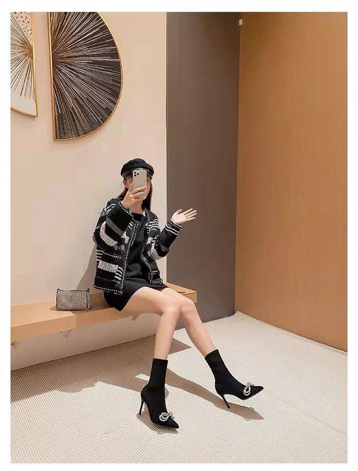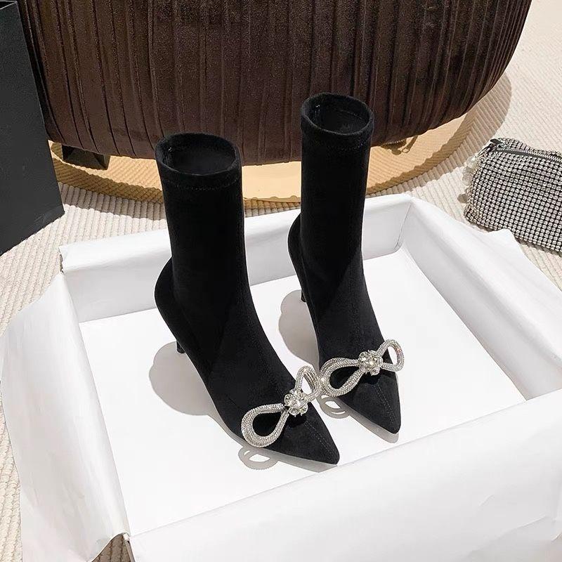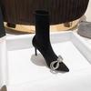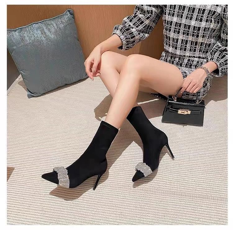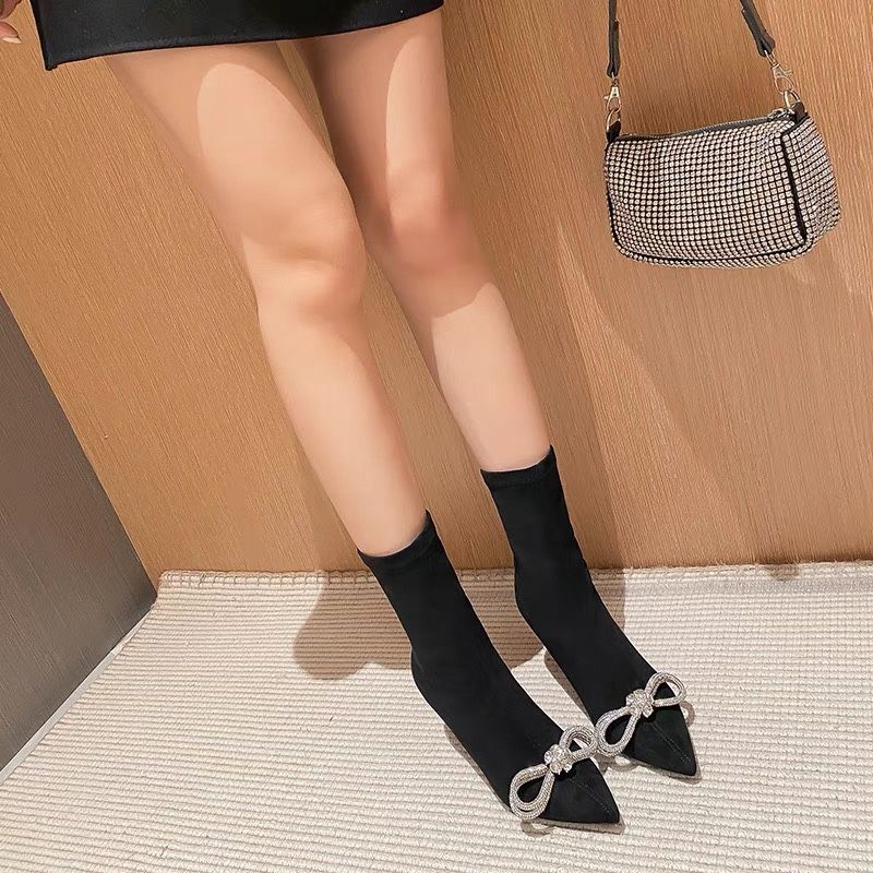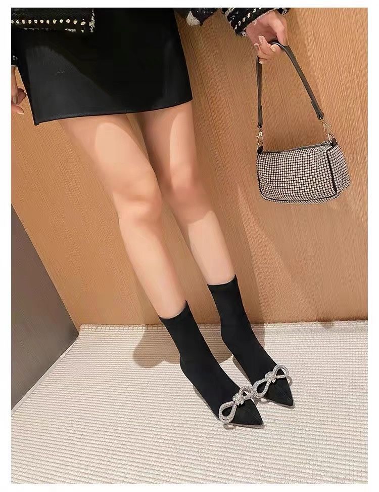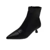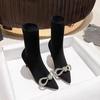 Botines Adelgazantes con Lazo de Temperamento 2025 Nuevo Otoño e Invierno Punta Afilada Tacón Alto Botines al Tobillo Tacón de Aguja Botas Elásticas de Moda para Mujer