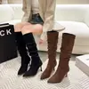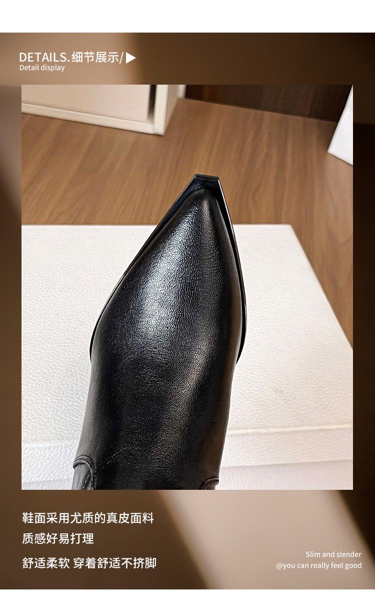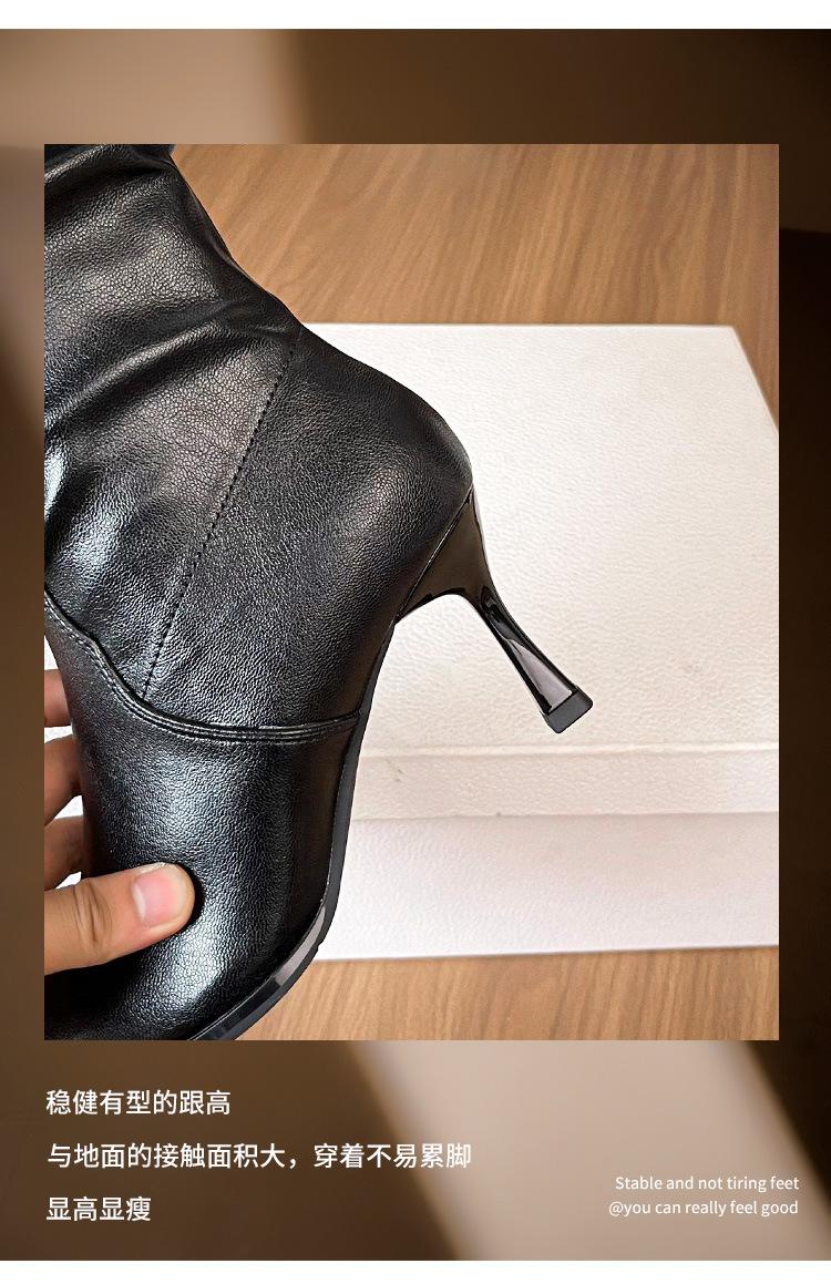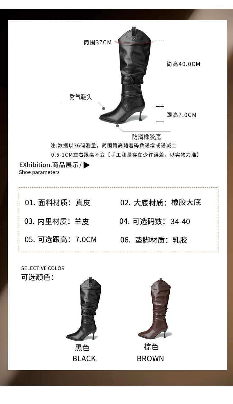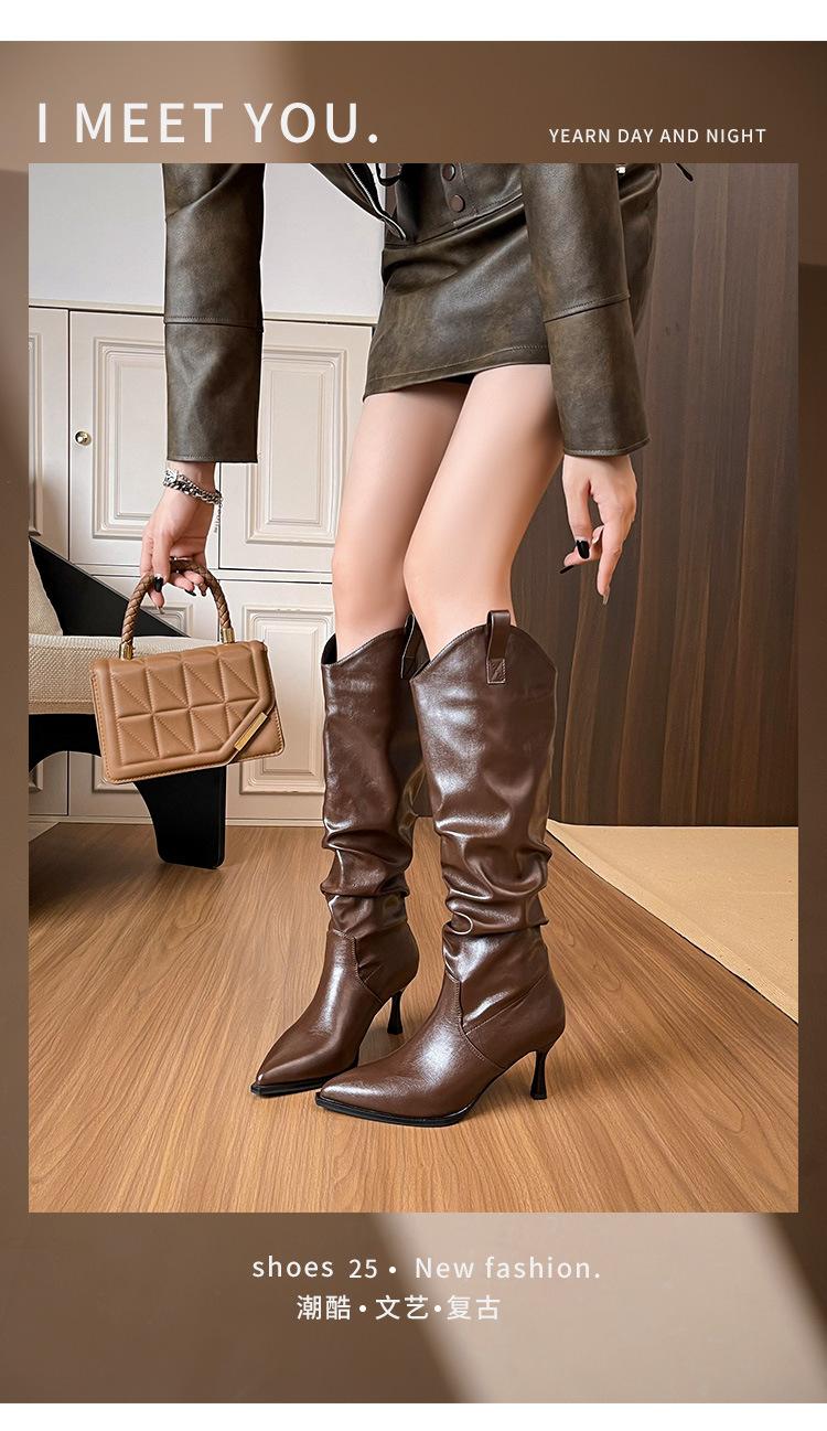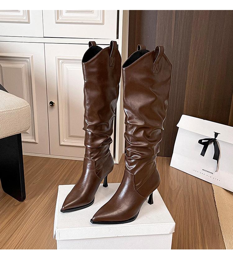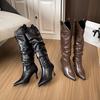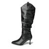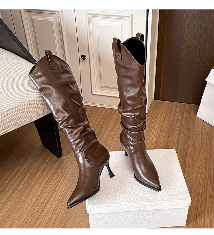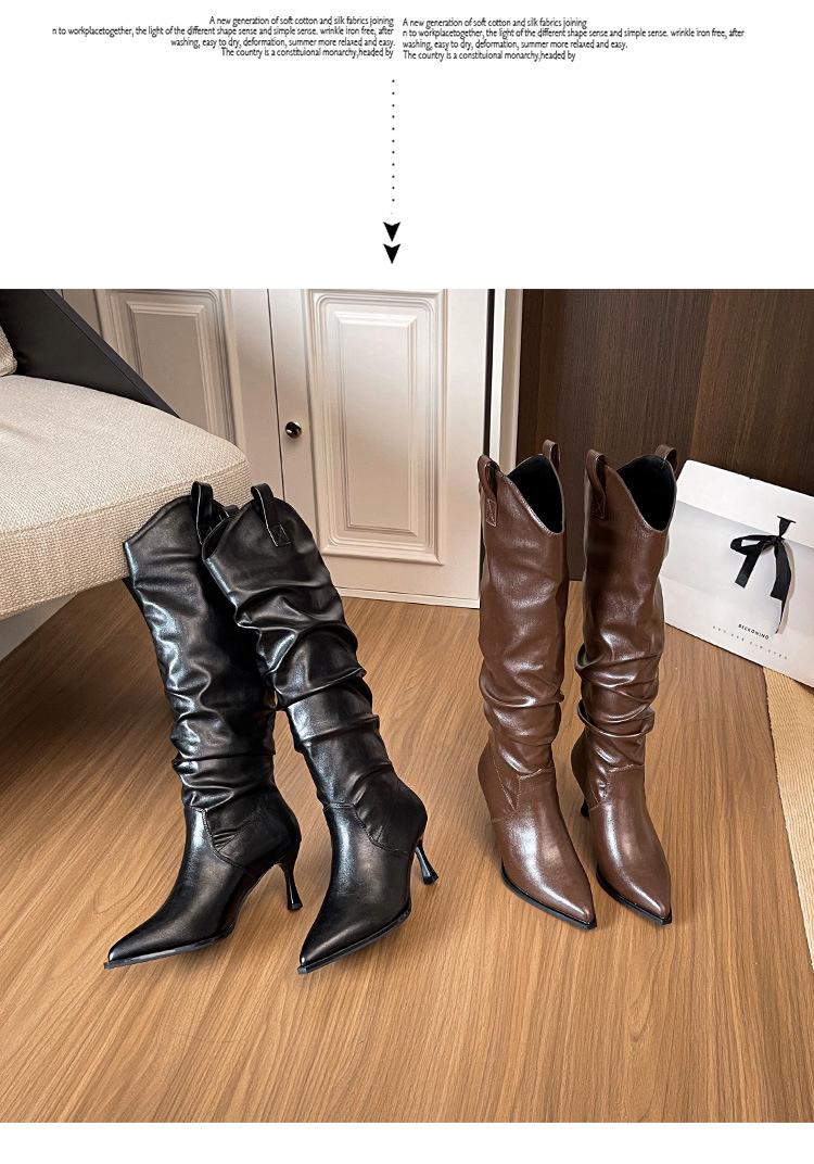 Botas altas de otoño e invierno para mujer, por encima de la rodilla, con punta puntiaguda, fruncidas, estilo botín, con tacón de aguja y caña alta que estiliza la figura.