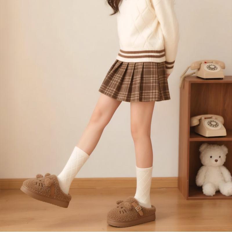 2025 Otoño/Invierno Nueva Moda Versátiles Pantuflas de Algodón para Mujer Dibujos Animados Lindas Pantuflas Cálidas de Punta Cerrada para Mujer