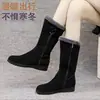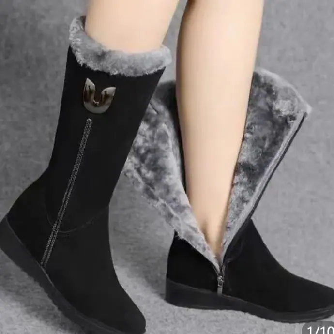 Botas de nieve de invierno para mujer, nuevas de suela plana, más terciopelo, más gruesas, de media caña, tipo Martin, con cremallera lateral, para mamá, antideslizantes, cálidas, zapatos de algodón