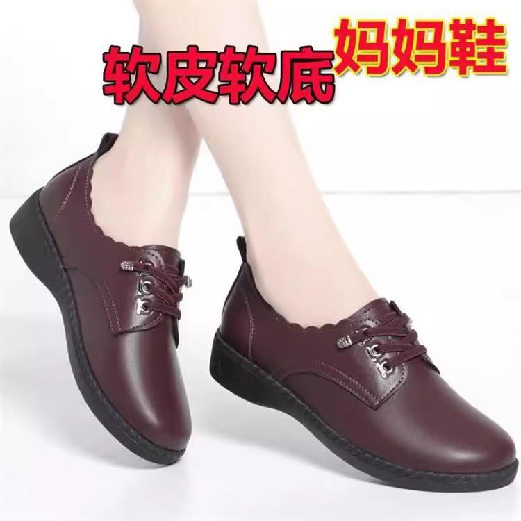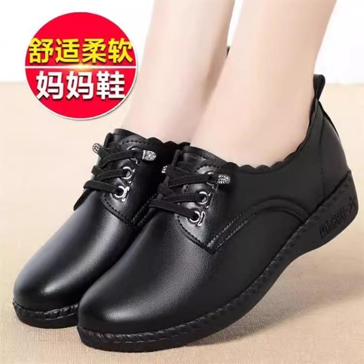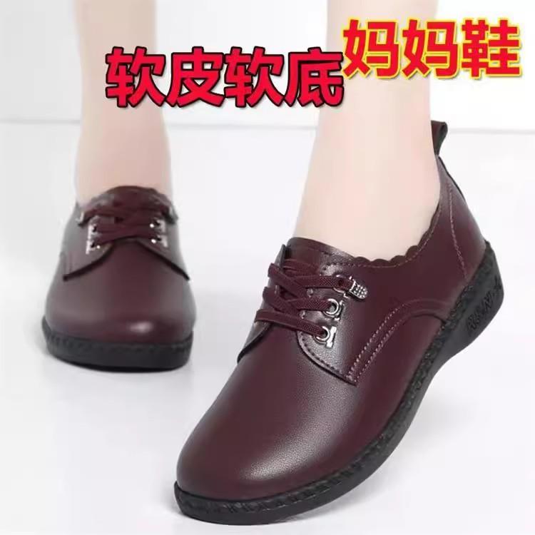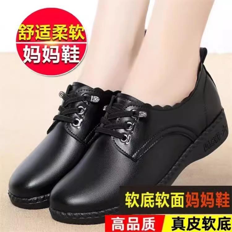 Zapatos de Mamá Pie Gordo Ancho Zapatos Gordos Cuero Genuino Cómodos Suela Suave Zapatos de Mujer de Mediana Edad Planos Casuales Zapatos de Cuero para Mujer de Mediana Edad