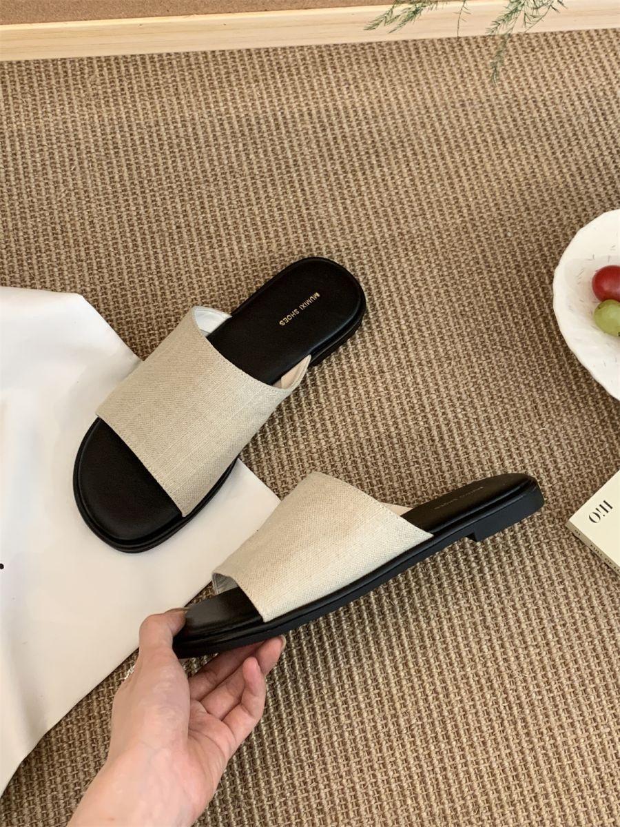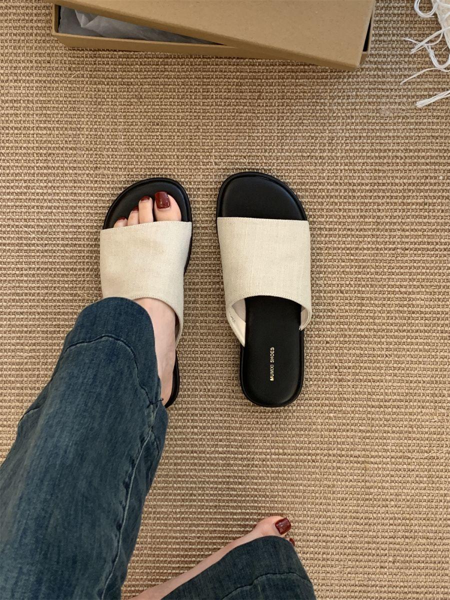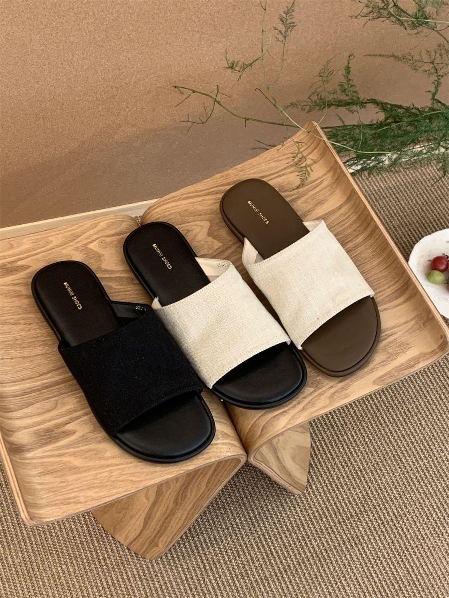 Nuevas Zapatillas Planas Casuales de Hada para Mujer Verano Exterior Retro Sandalias Coreanas Lino Vacaciones Zapatos de Playa Damas