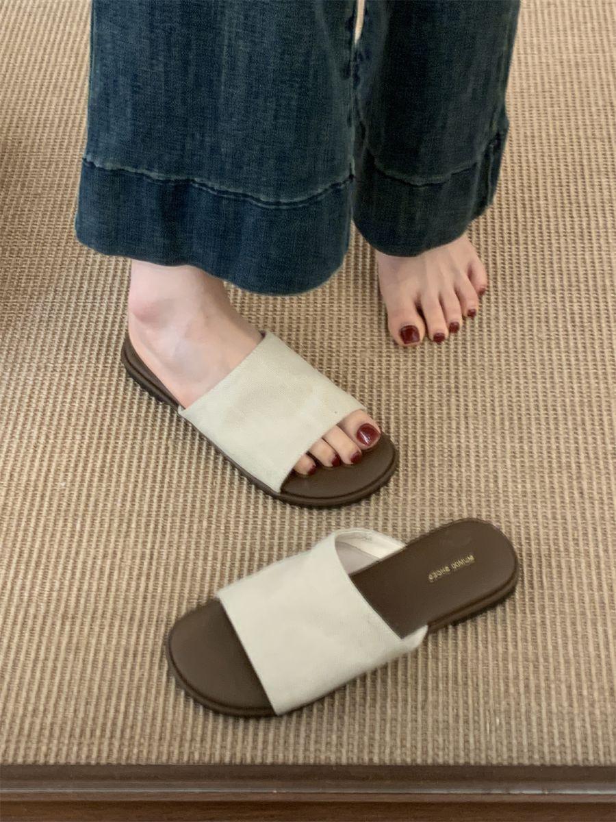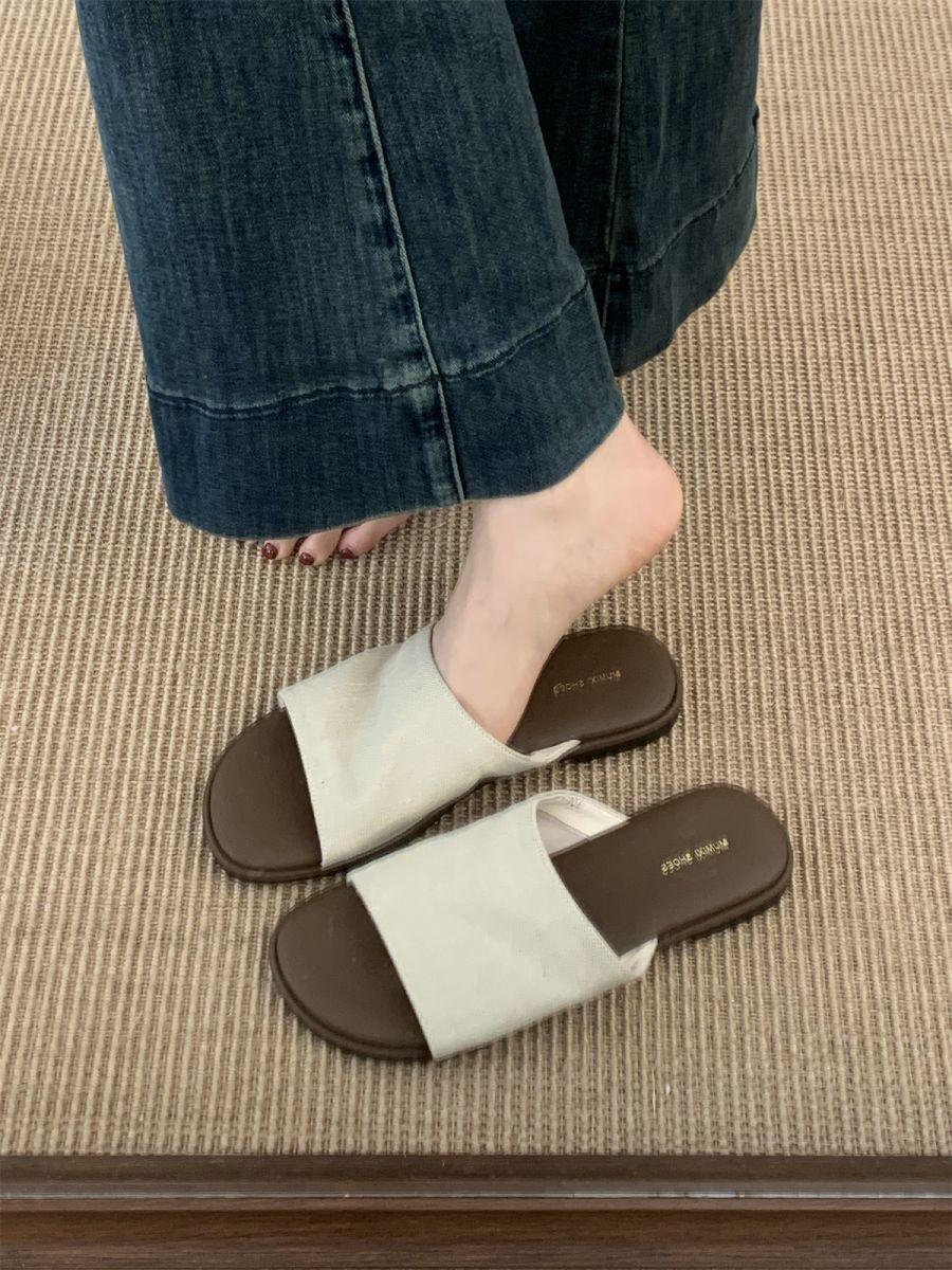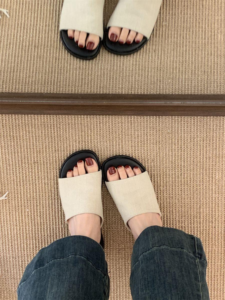 Nuevas Zapatillas Planas Casuales de Hada para Mujer Verano Exterior Retro Sandalias Coreanas Lino Vacaciones Zapatos de Playa Damas