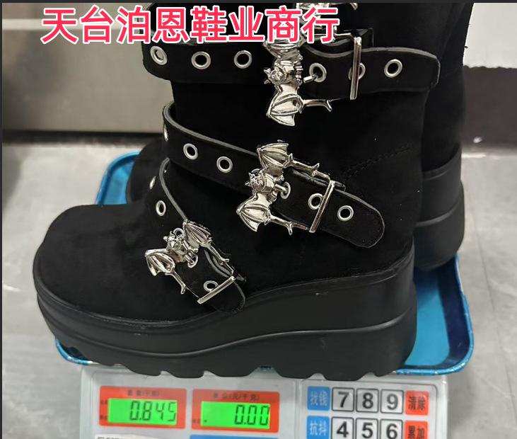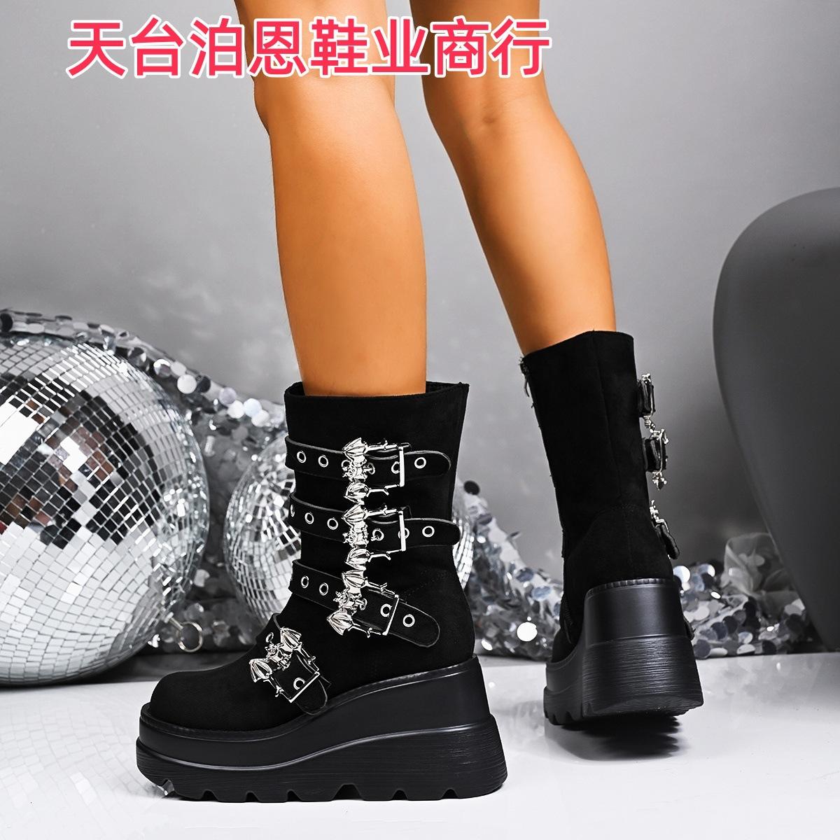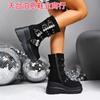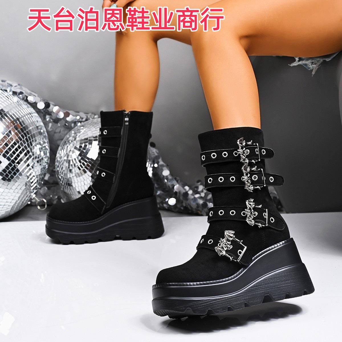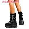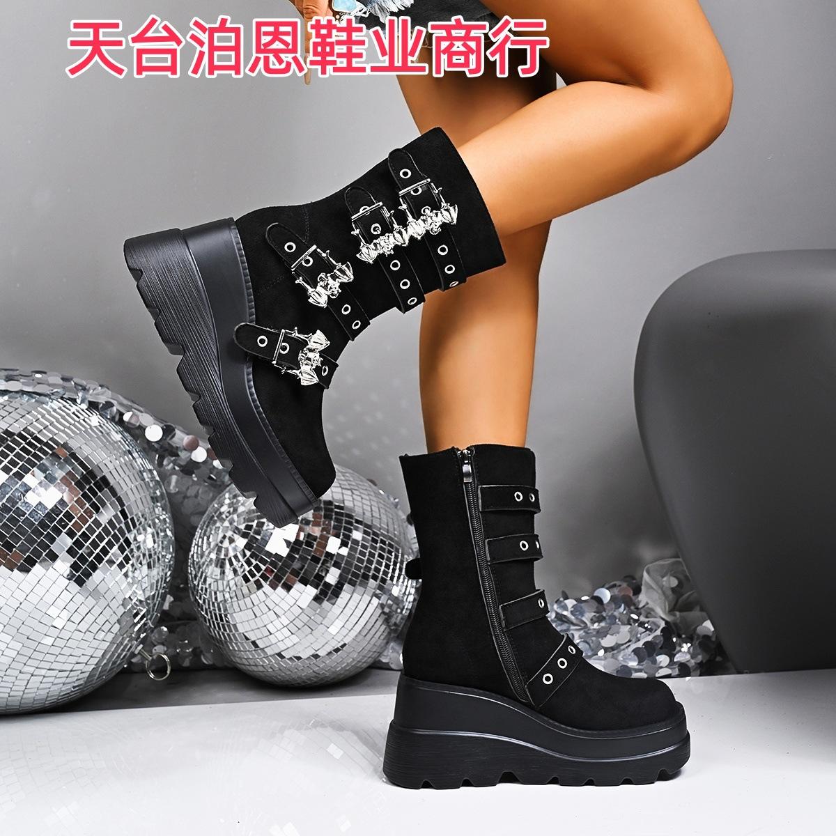 2025 Comercio Exterior Transfronterizo Estilo Retro Otoño e Invierno Nuevas Botas de Cuero para Mujer Punta Redonda Media Pantorrilla Cierre Lateral Botas de Moda