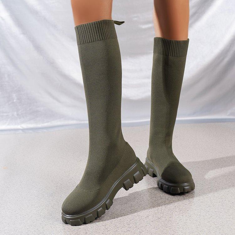 Comercio Exterior Talla Grande Botines Calcetín para Mujer Estilo Otoño Tejido de Punto Transpirable Color Sólido Plataforma Suela Gruesa Europeo y Americano Media Caña Botas Martin para Mujer