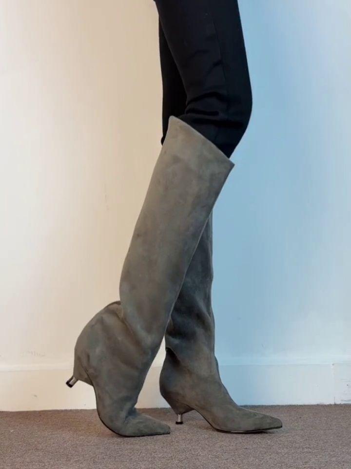 2025 nueva moda otoño e invierno versátil versátil adelgazante elástico botas skinny moda mujer punta puntiaguda tacón de aguja tacón alto botas largas