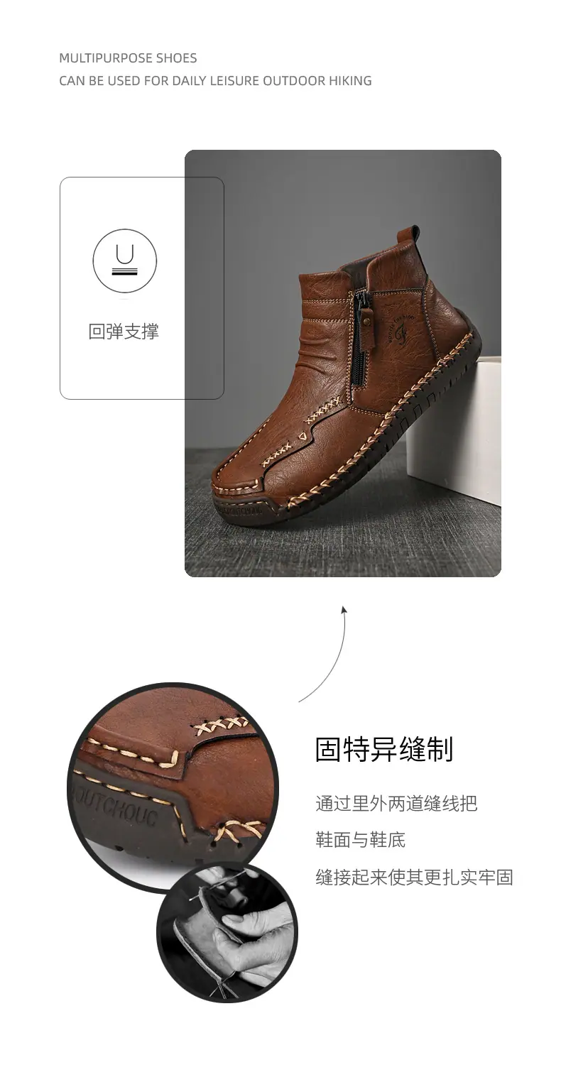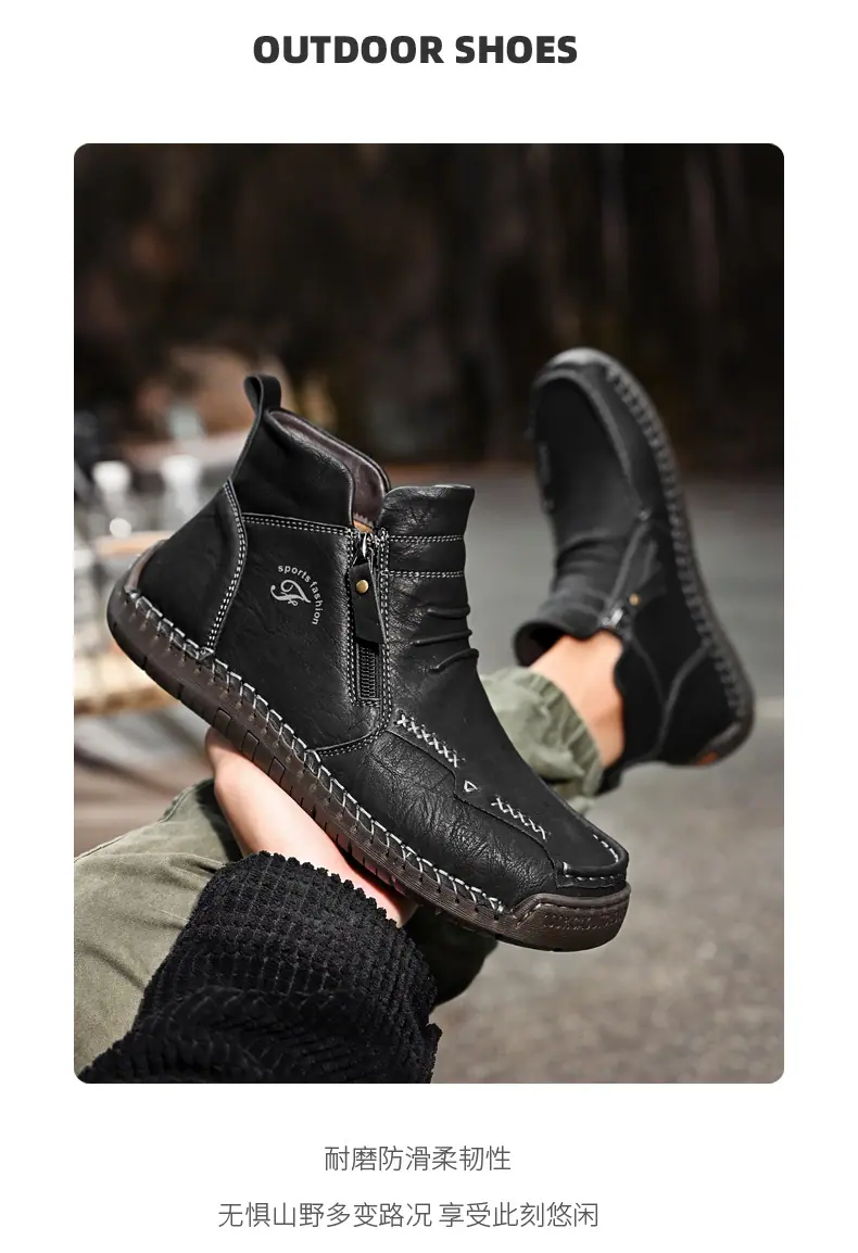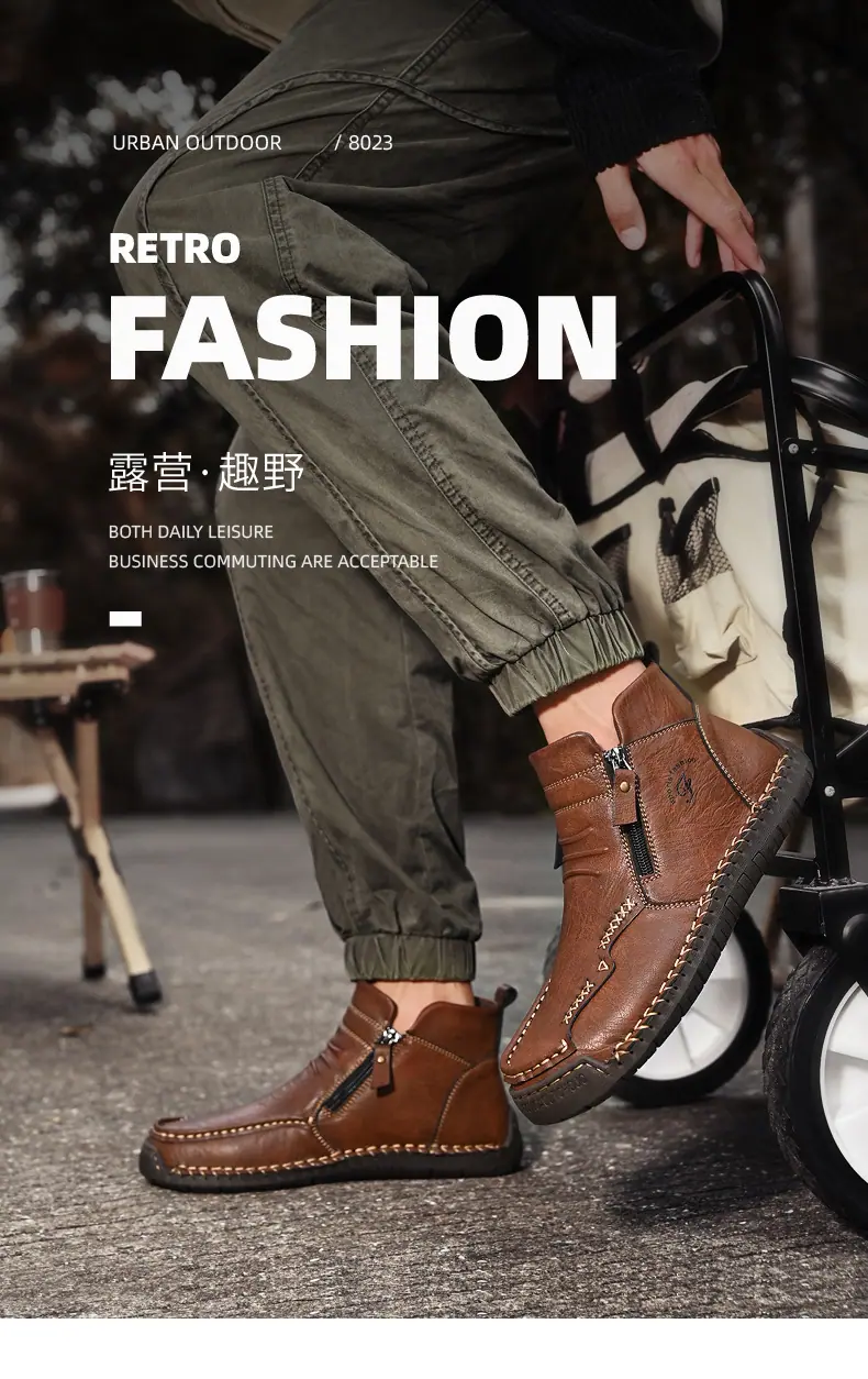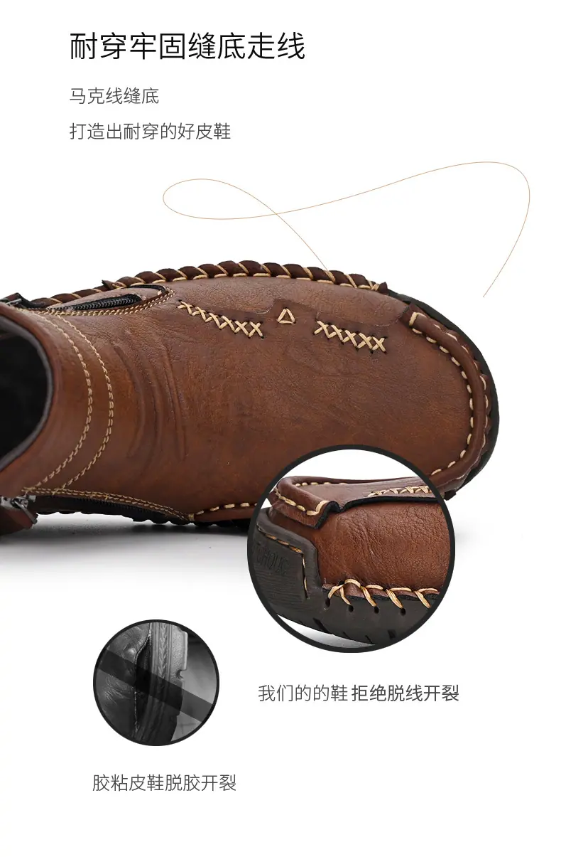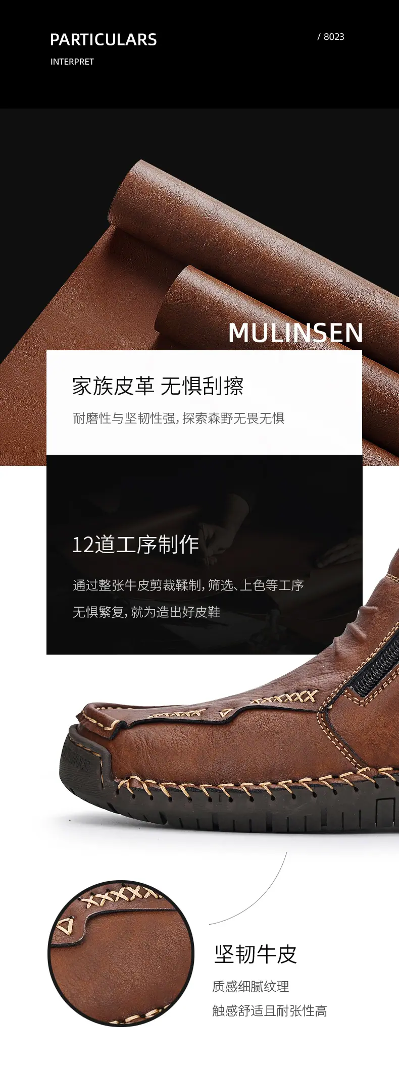 Sitio Independiente Transfronterizo Talla Grande Zapatos de Hombre Zapatos Casuales para Exterior Slip-On Planos Hechos a Mano Zapatos de Cuero Primavera Zapatos de Caña Alta Talla Grande