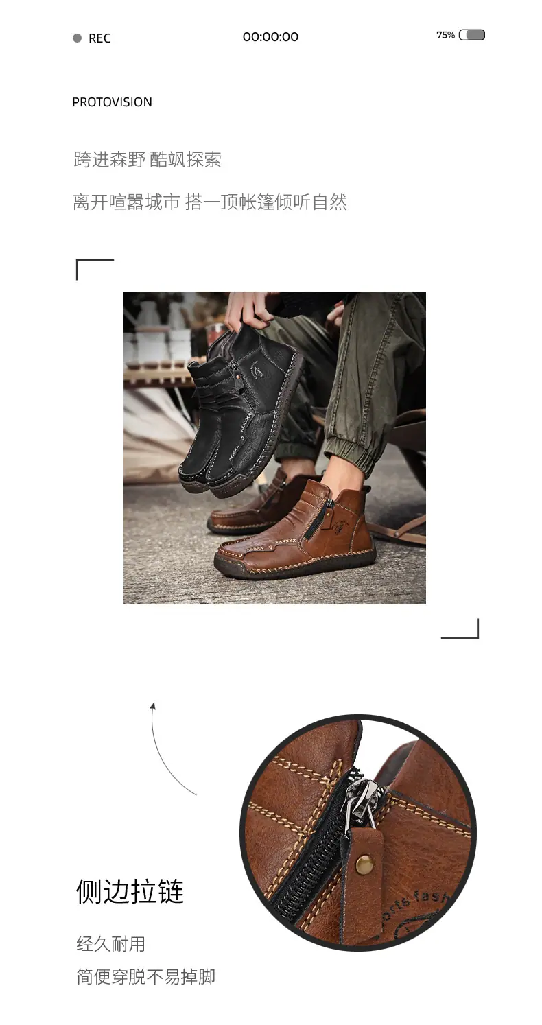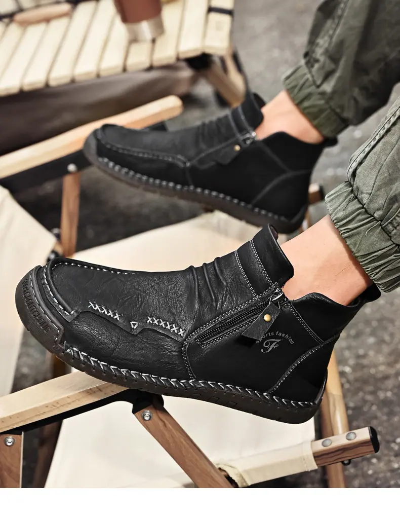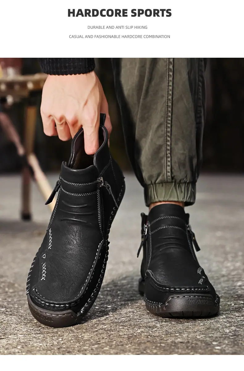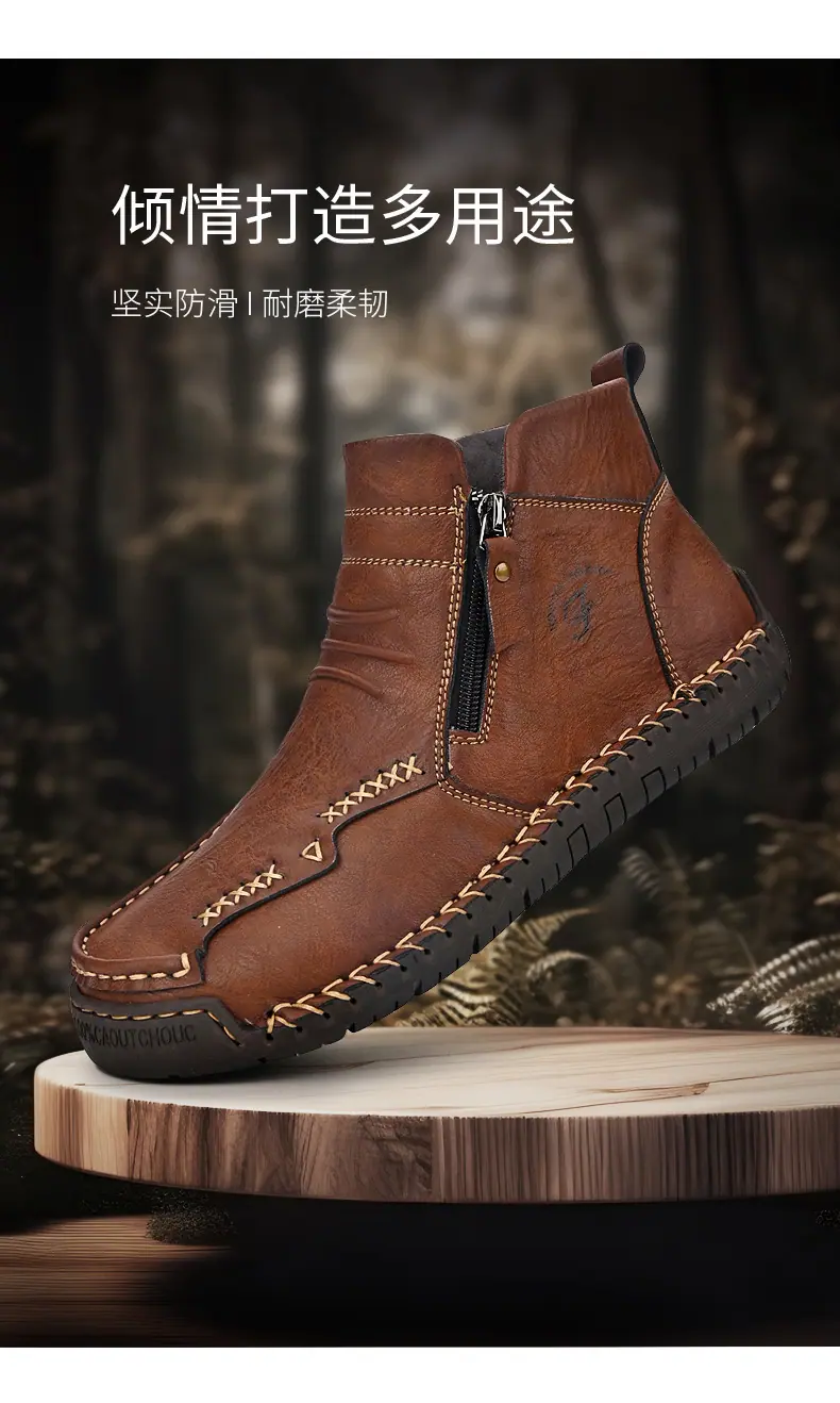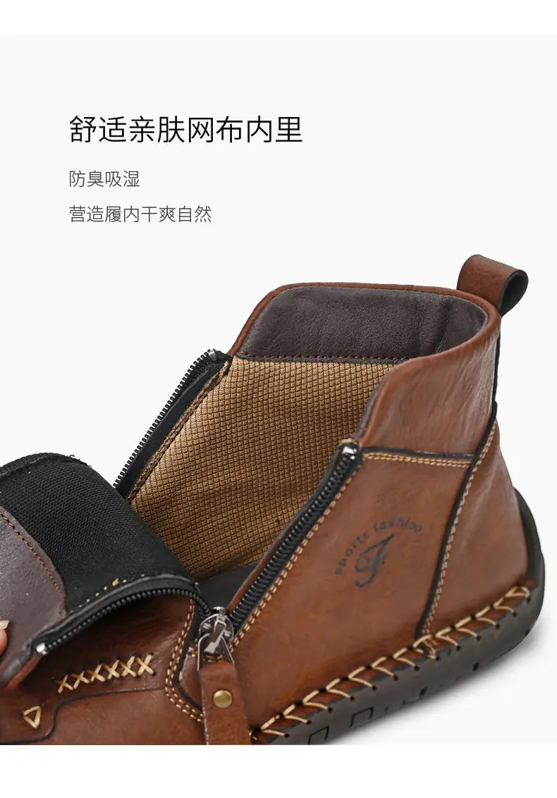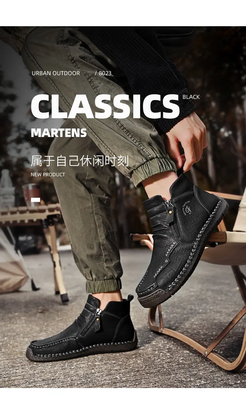 Sitio Independiente Transfronterizo Talla Grande Zapatos de Hombre Zapatos Casuales para Exterior Slip-On Planos Hechos a Mano Zapatos de Cuero Primavera Zapatos de Caña Alta Talla Grande