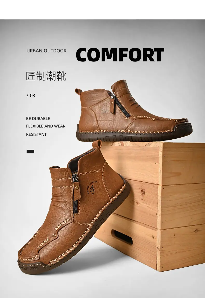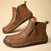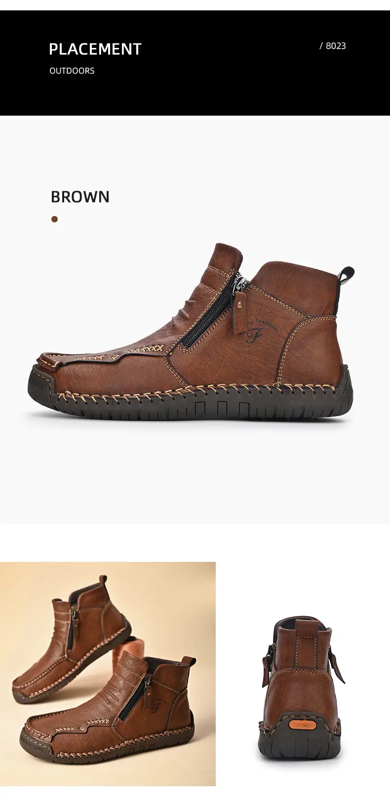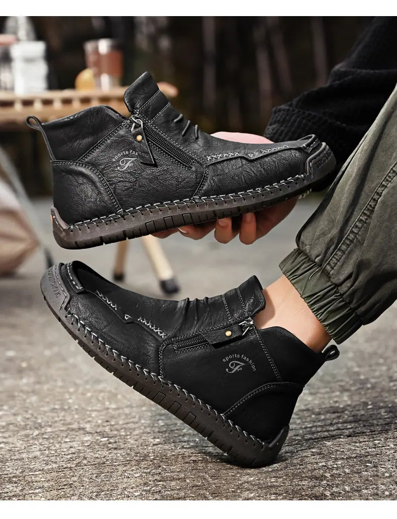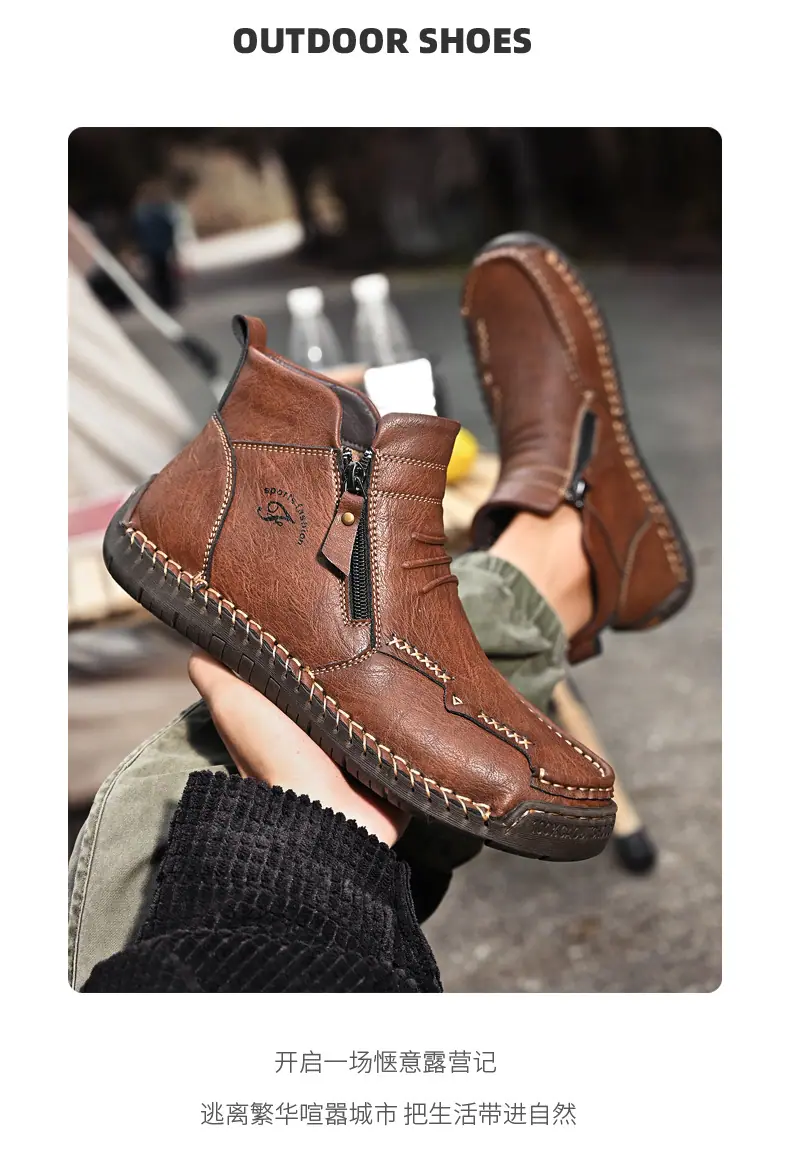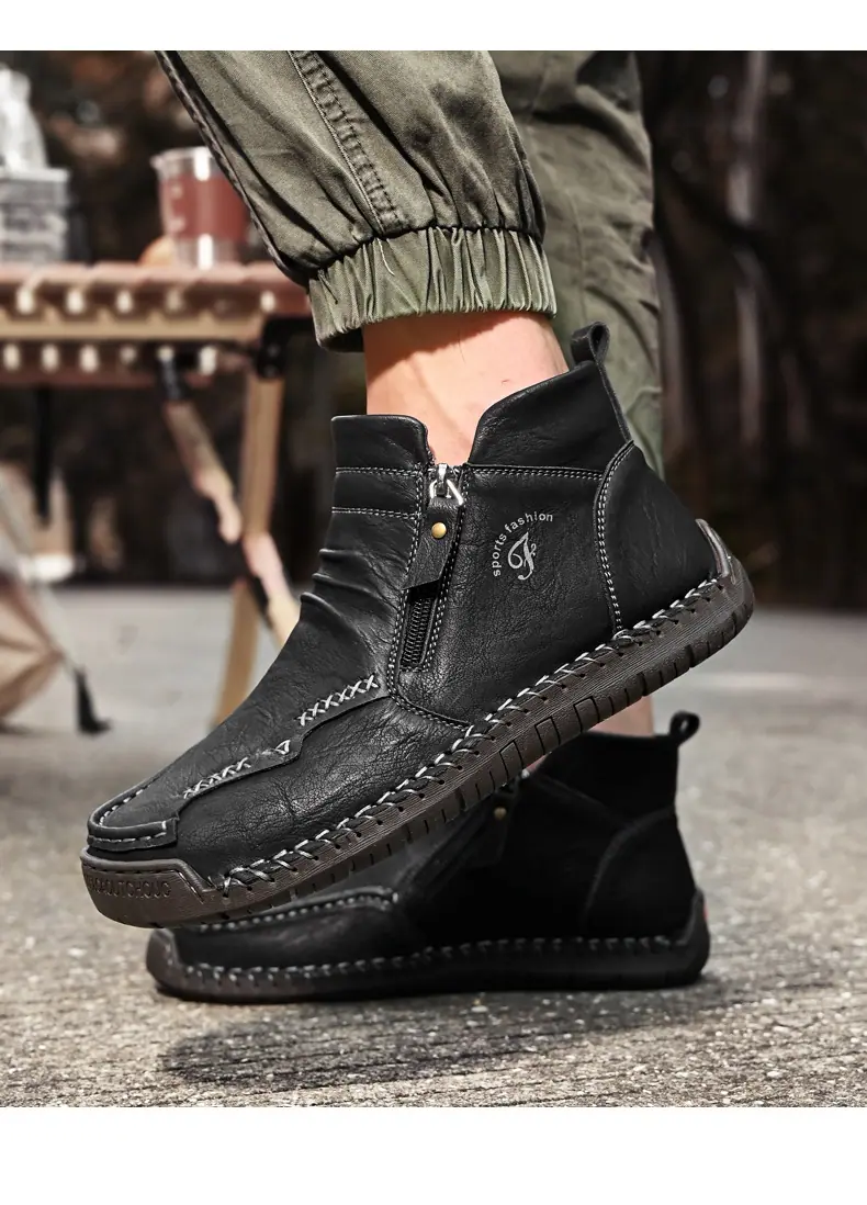 Sitio Independiente Transfronterizo Talla Grande Zapatos de Hombre Zapatos Casuales para Exterior Slip-On Planos Hechos a Mano Zapatos de Cuero Primavera Zapatos de Caña Alta Talla Grande