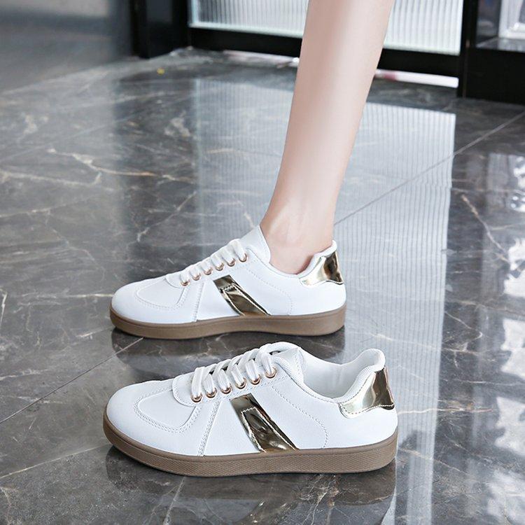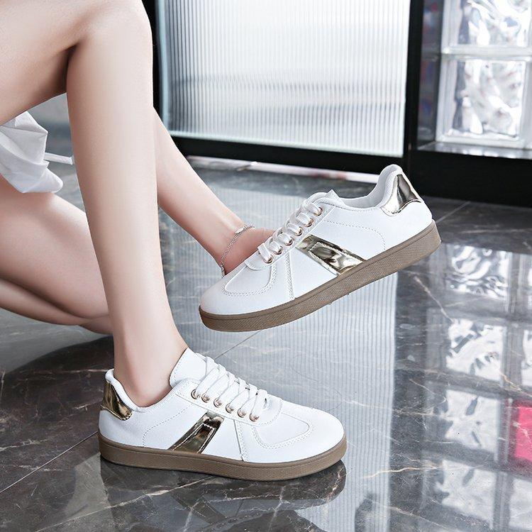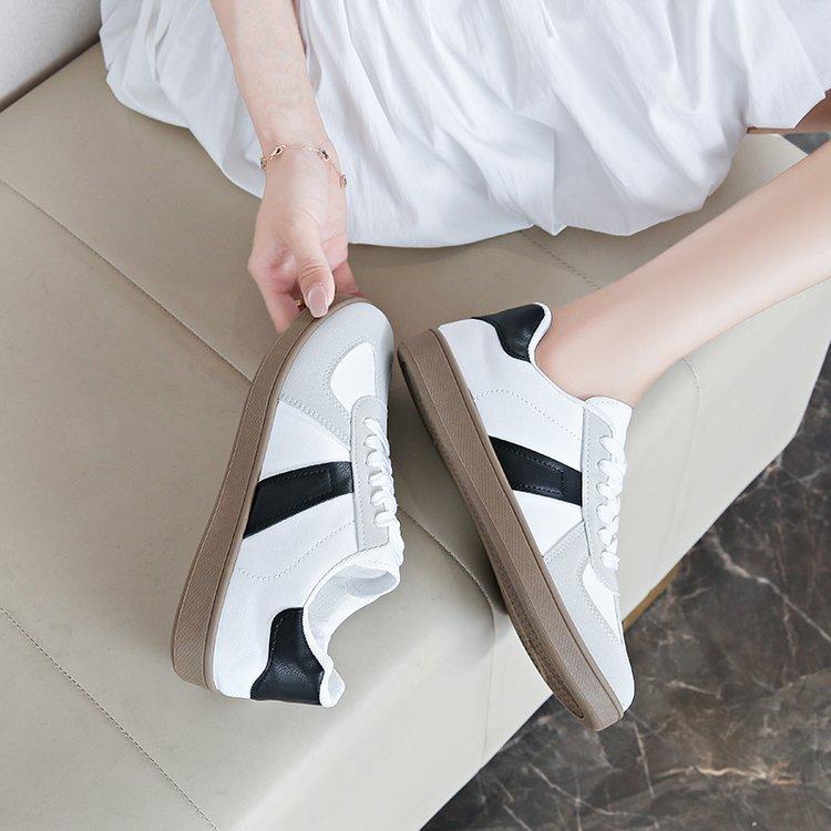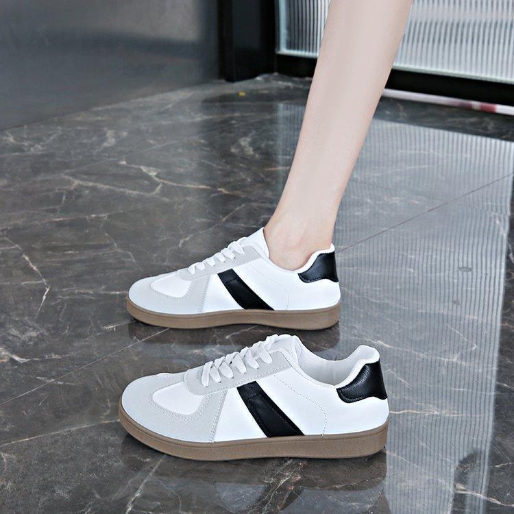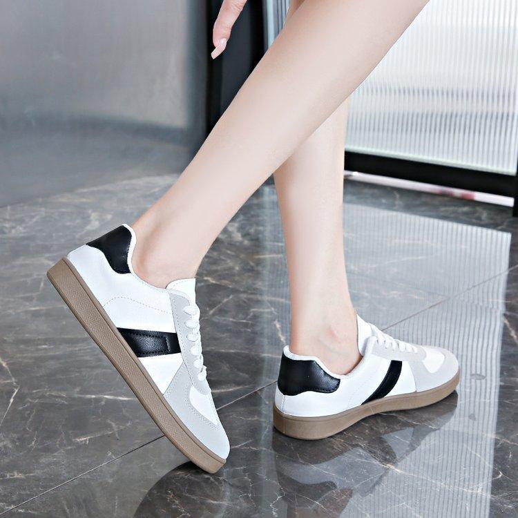 Compra Zapatos planos de moda blancos de comercio exterior europeo y americano para mujer, talla grande transfronteriza con cordones, tenis color block estilo universitario, zapatos individuales al por mayor al por mayor en Joom.pro