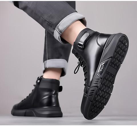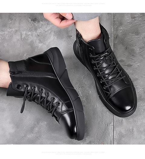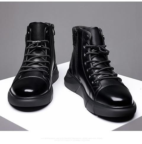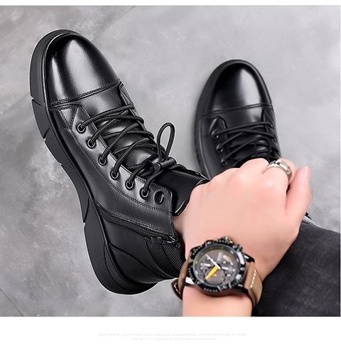 Botas Martin para hombre otoño e invierno zapatos de cuero de caña alta para hombre que aumentan la altura estilo coreano versátiles modernos de caña media para exteriores zapatos británicos