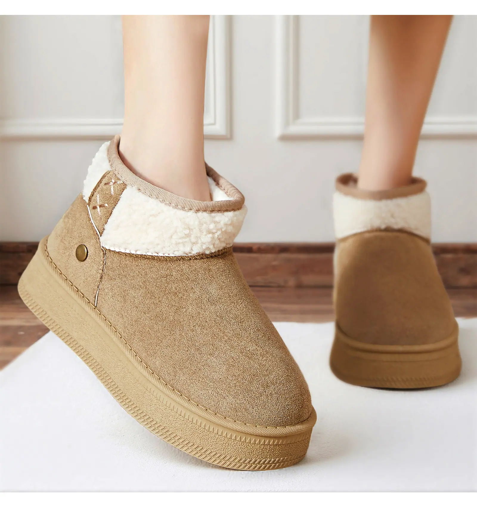 Botas de nieve cálidas nuevas para mujer, botas versátiles de moda hasta la mitad de la pantorrilla, a prueba de frío, cómodas, para mujer, más terciopelo, más botas de algodón grueso