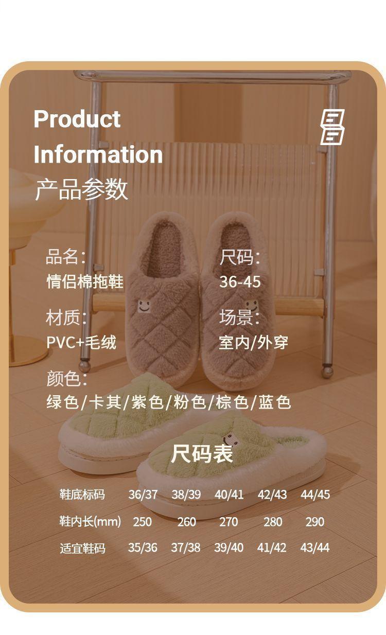 Pantuflas de Interior de Moda de Punta Cerrada para Hombre Casuales Cómodas para el Hogar Otoño e Invierno Lindas Pantuflas de Algodón Felpa Antideslizantes de Suela Gruesa para Mujer
