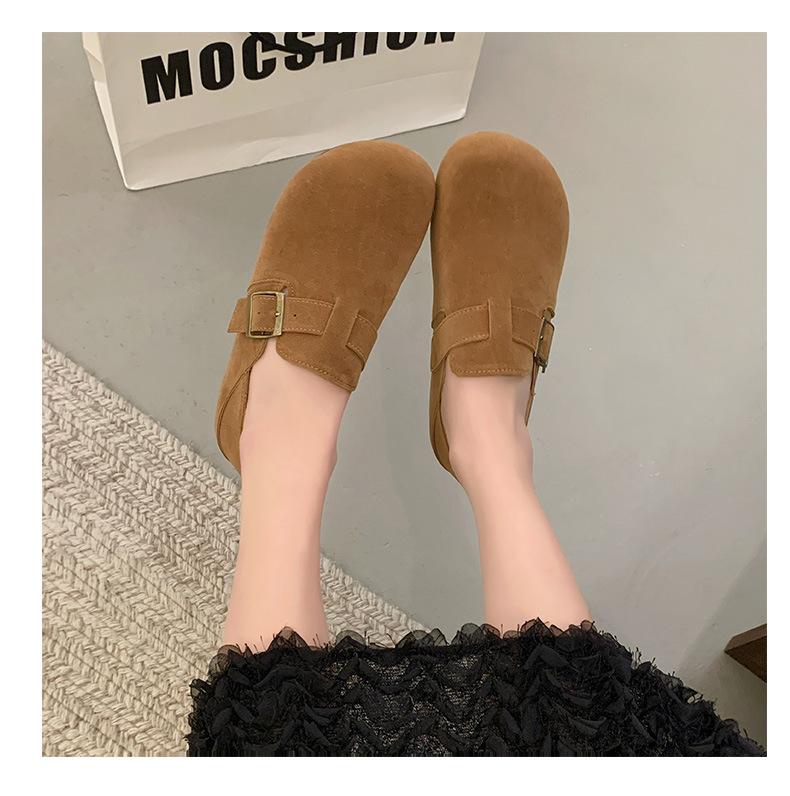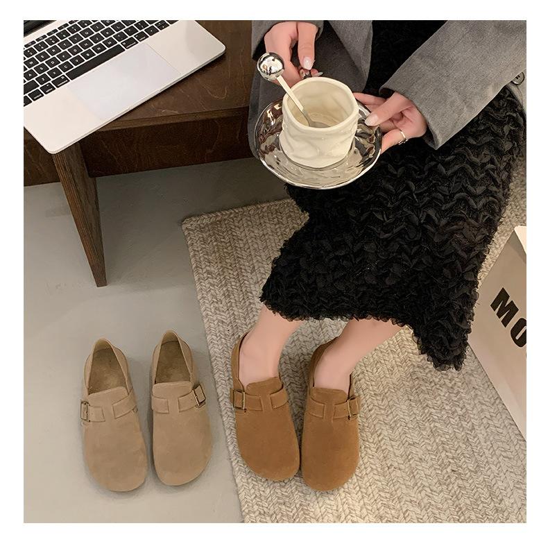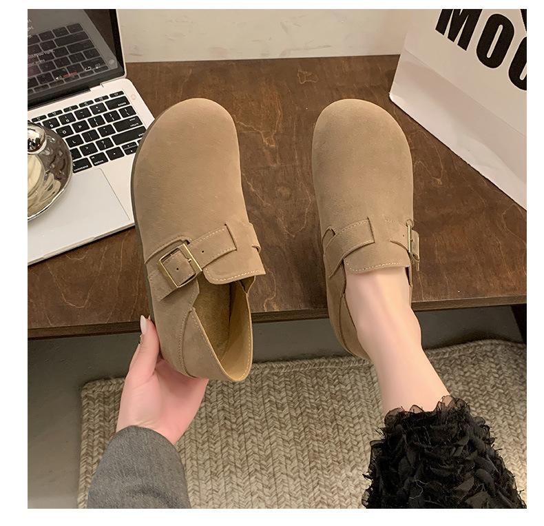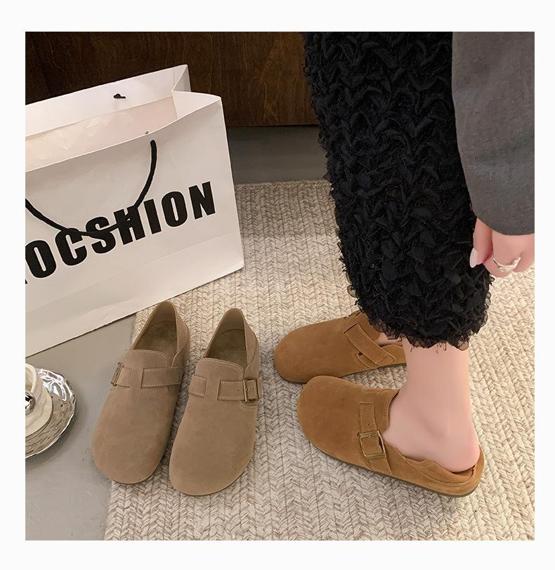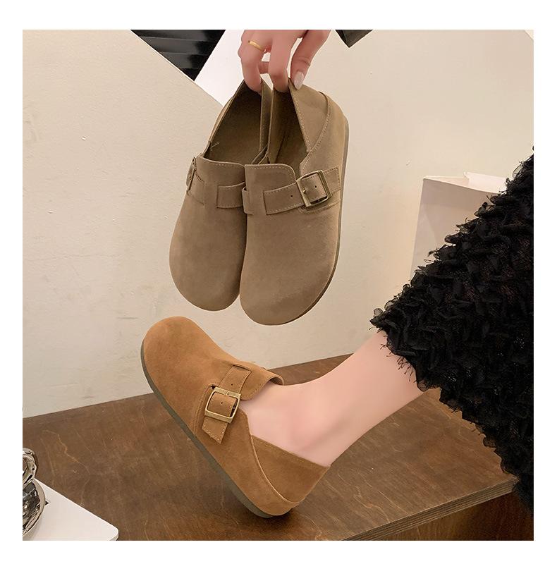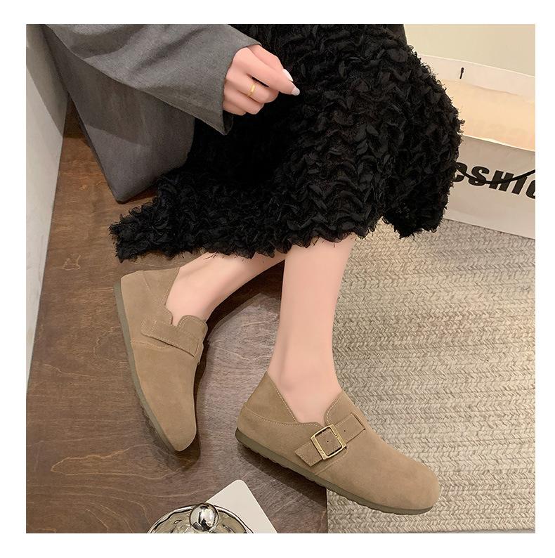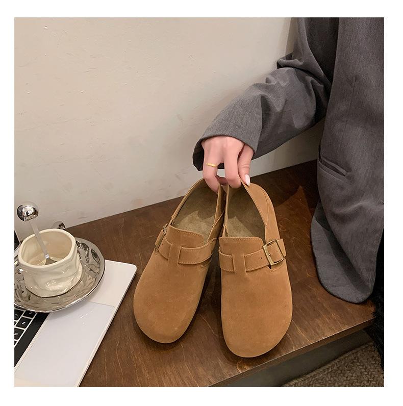 Retro Boca Profunda Birkenstock para Mujer 2025 Primavera y Otoño Casual Slip-on Perezosos Planos Zapatos Individuales Gamuza Punta Redonda Mocasines