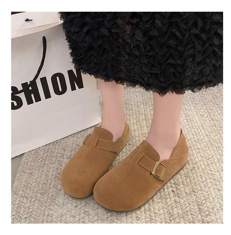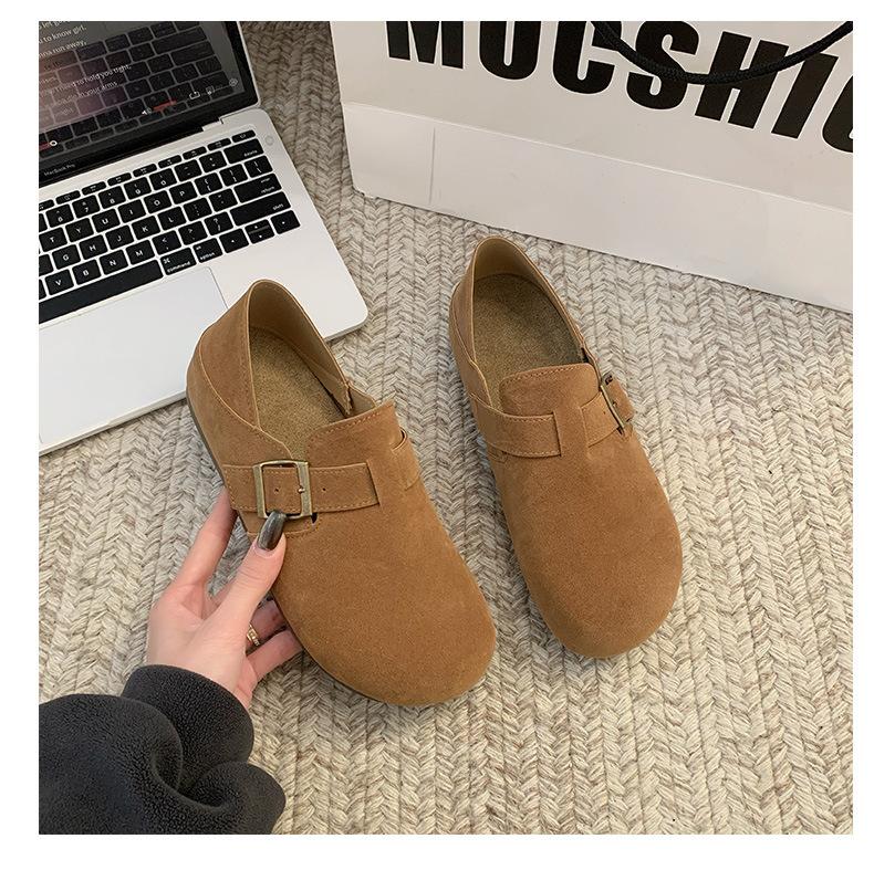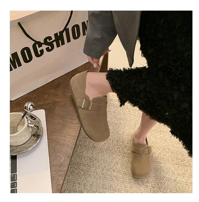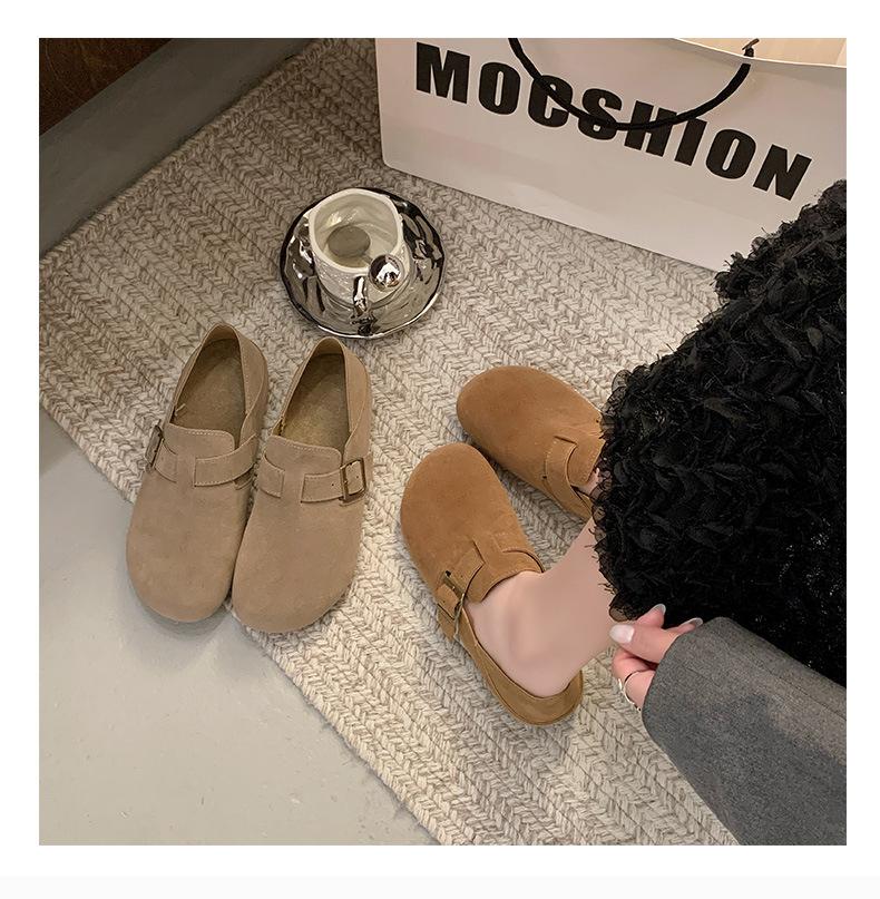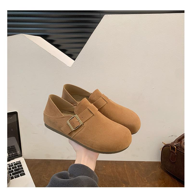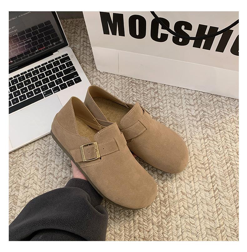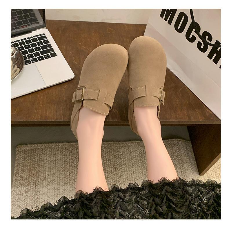 Retro Boca Profunda Birkenstock para Mujer 2025 Primavera y Otoño Casual Slip-on Perezosos Planos Zapatos Individuales Gamuza Punta Redonda Mocasines