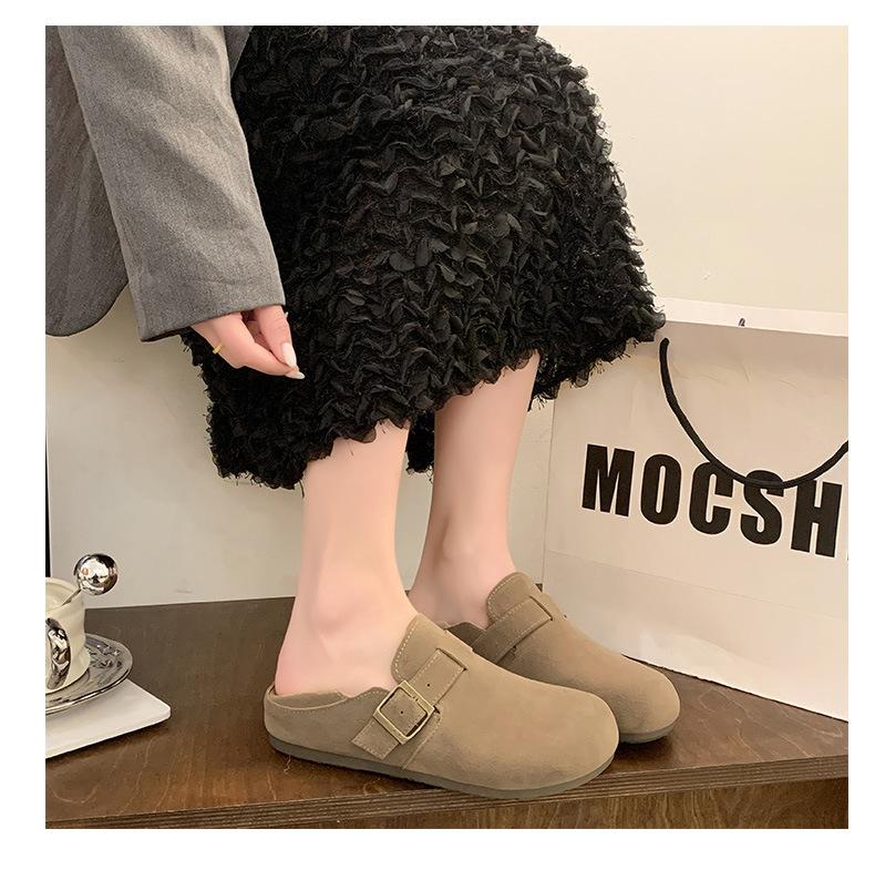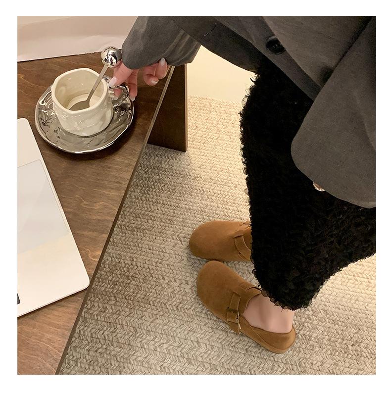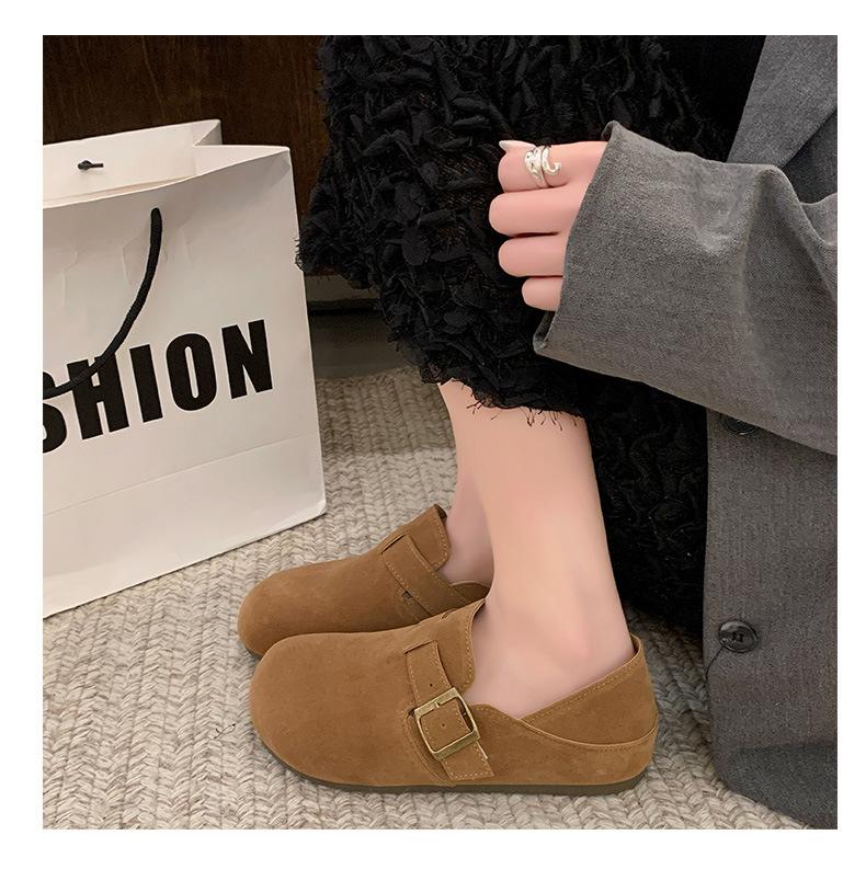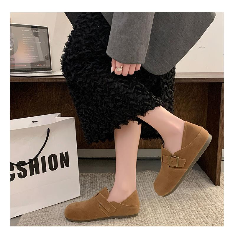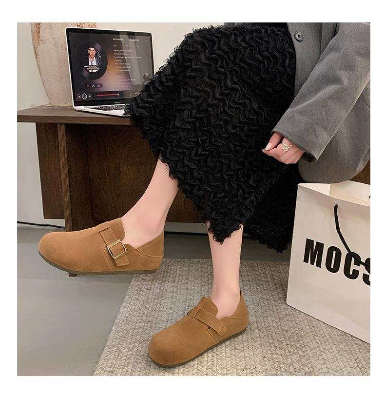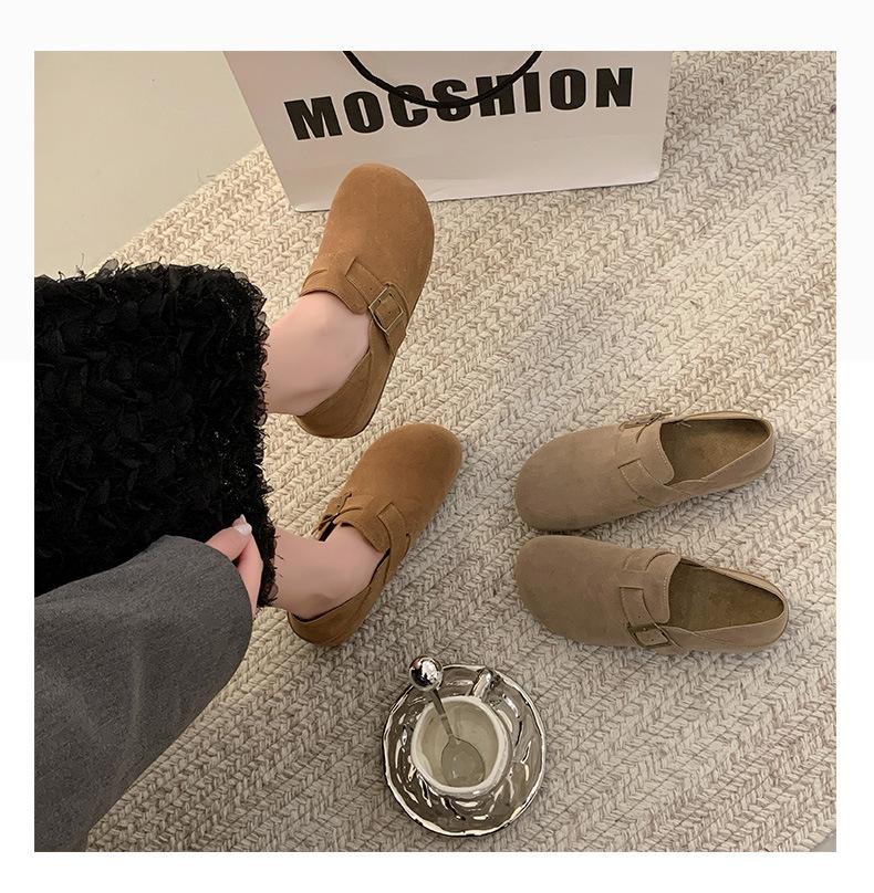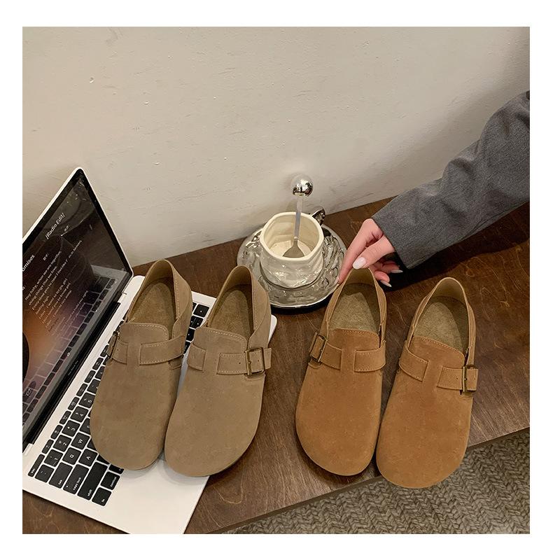 Retro Boca Profunda Birkenstock para Mujer 2025 Primavera y Otoño Casual Slip-on Perezosos Planos Zapatos Individuales Gamuza Punta Redonda Mocasines
