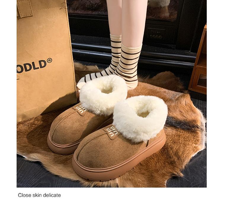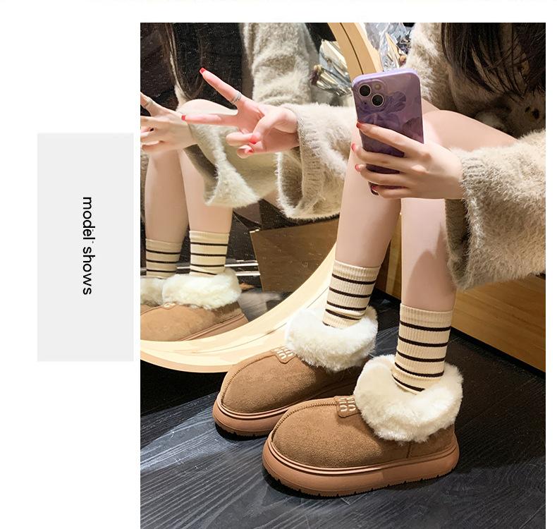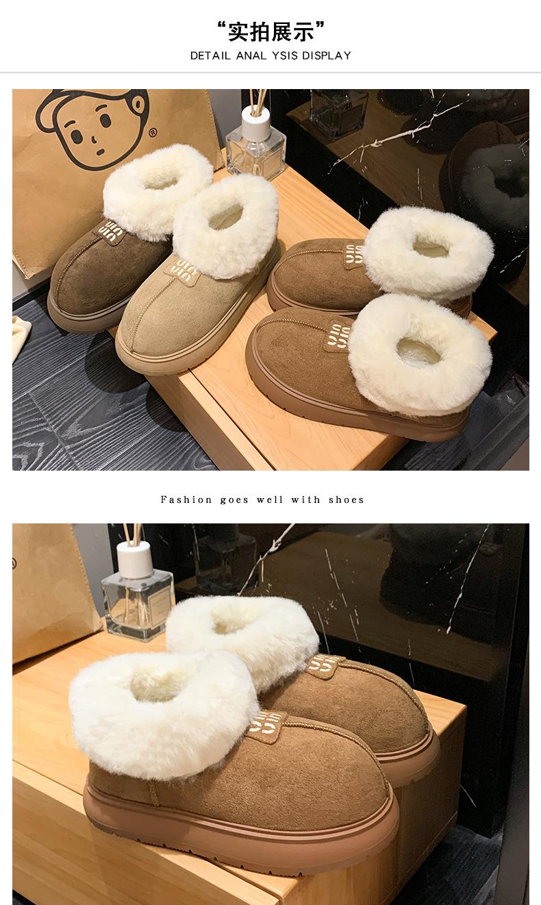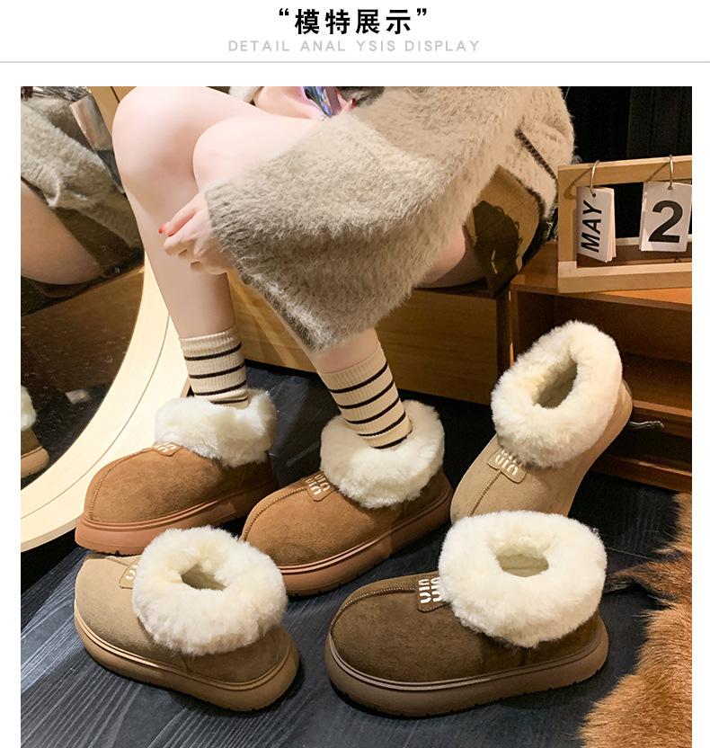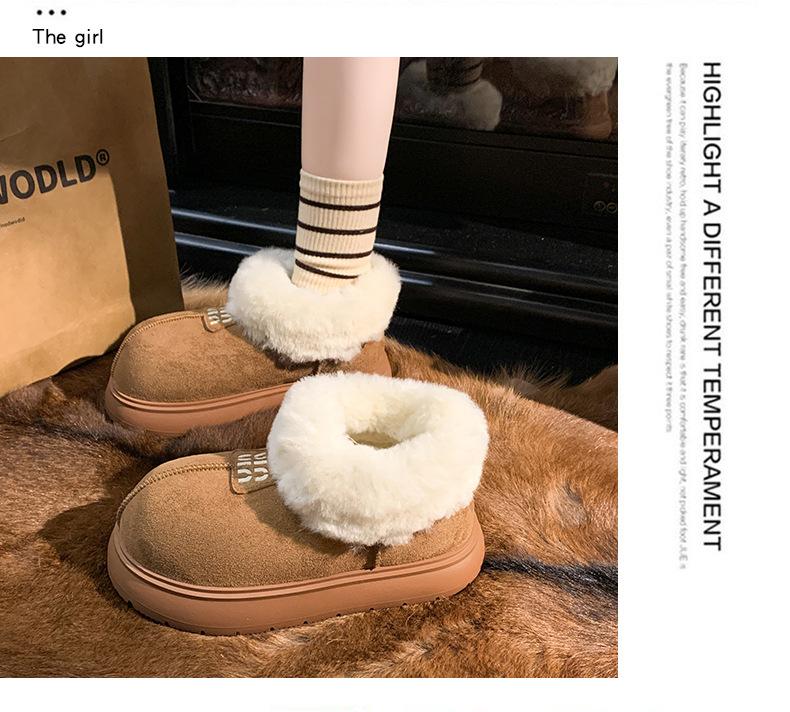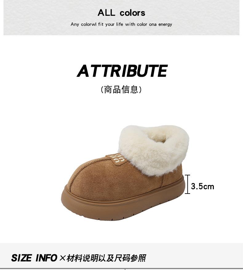 Botas de Nieve de Boca Grande Talla Pequeña Suela Gruesa para Mujer 2025 Invierno Nuevo Estilo Slip-on Cálidas Peludas Zapatos de Algodón