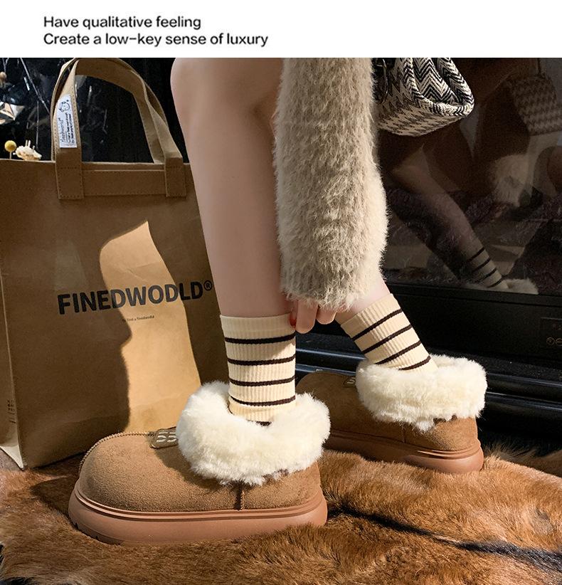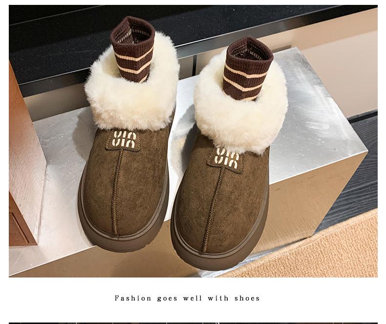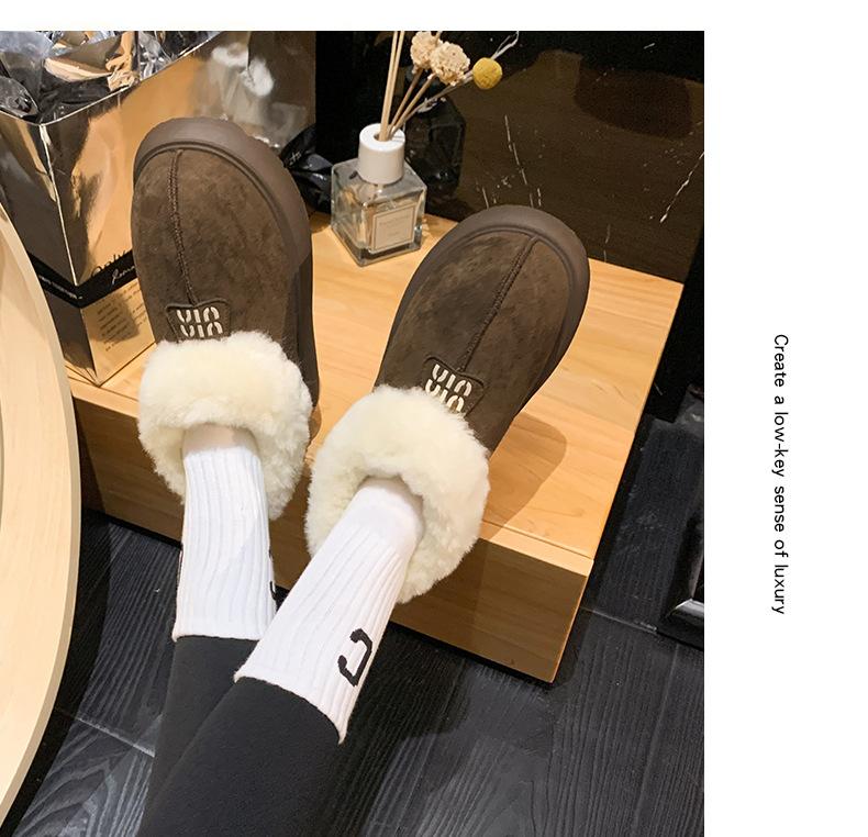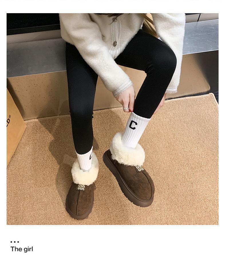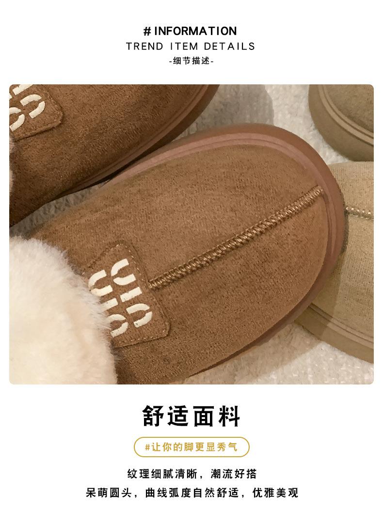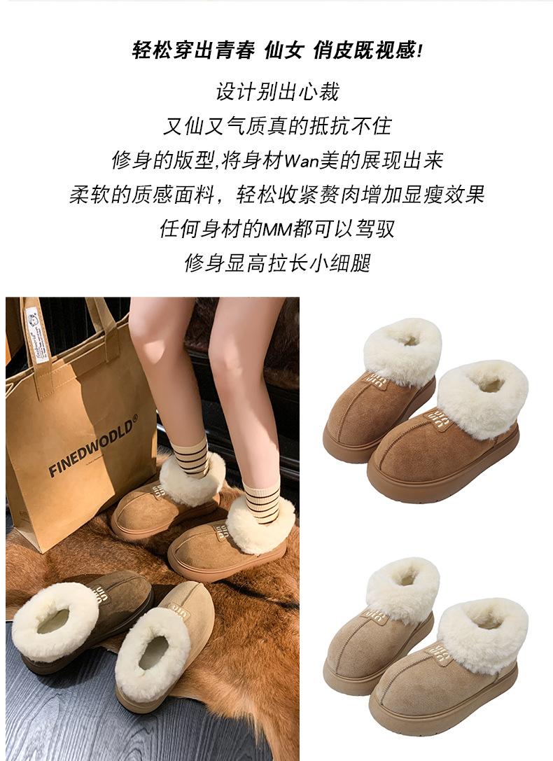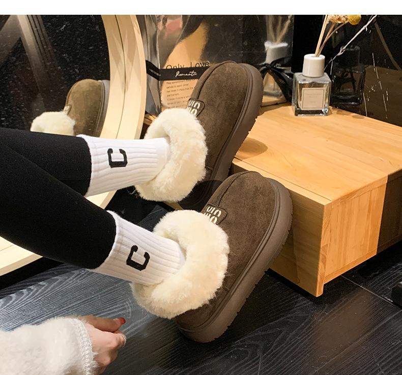 Botas de Nieve de Boca Grande Talla Pequeña Suela Gruesa para Mujer 2025 Invierno Nuevo Estilo Slip-on Cálidas Peludas Zapatos de Algodón