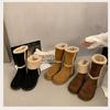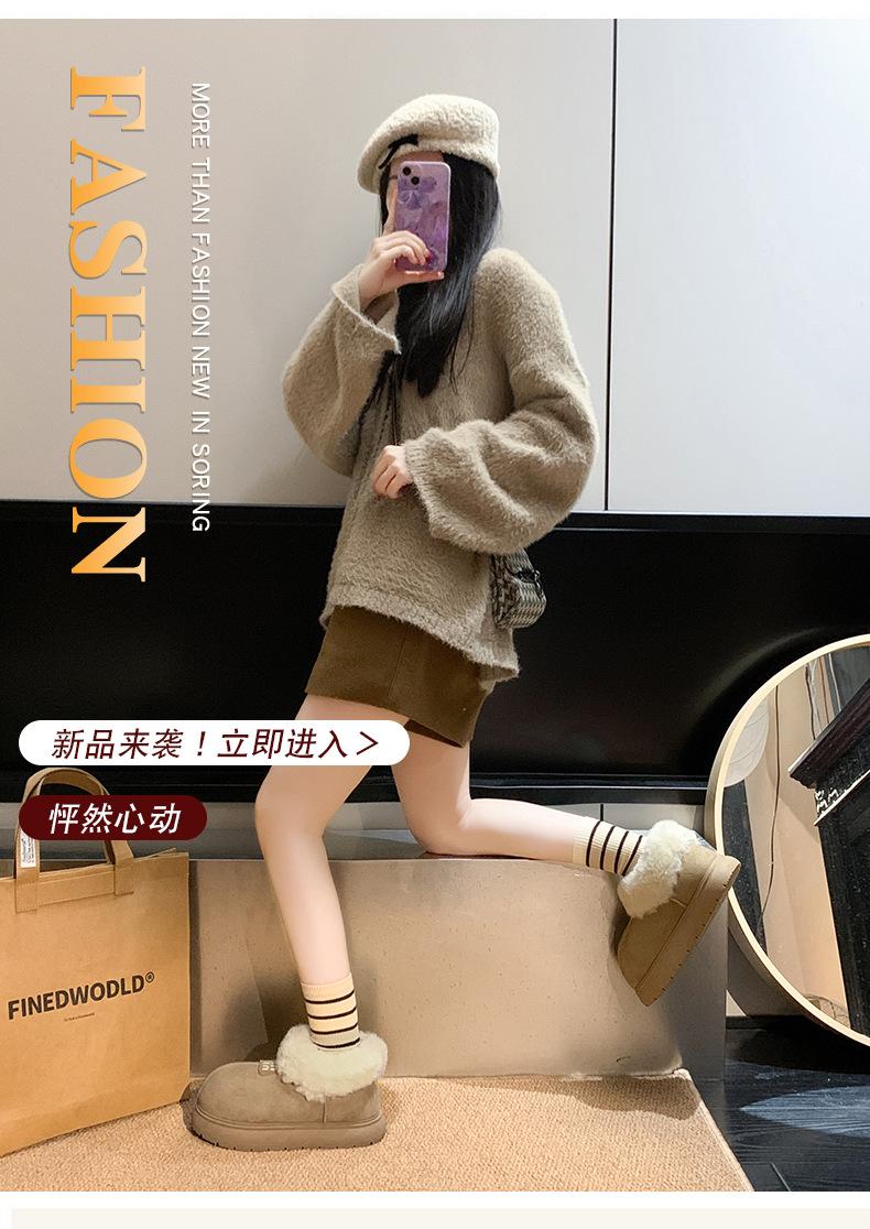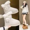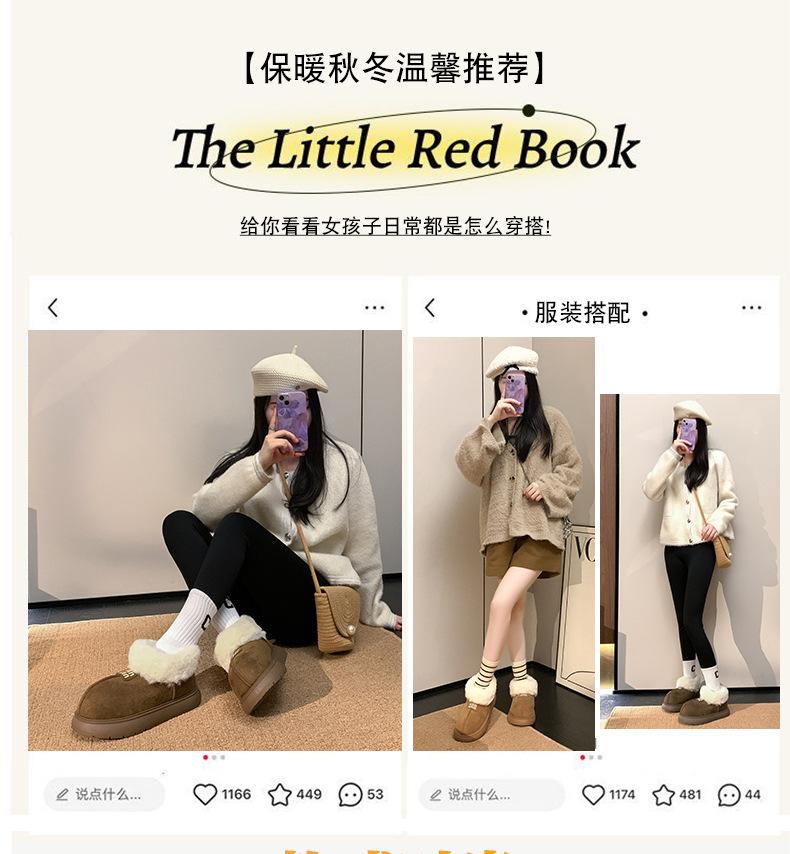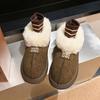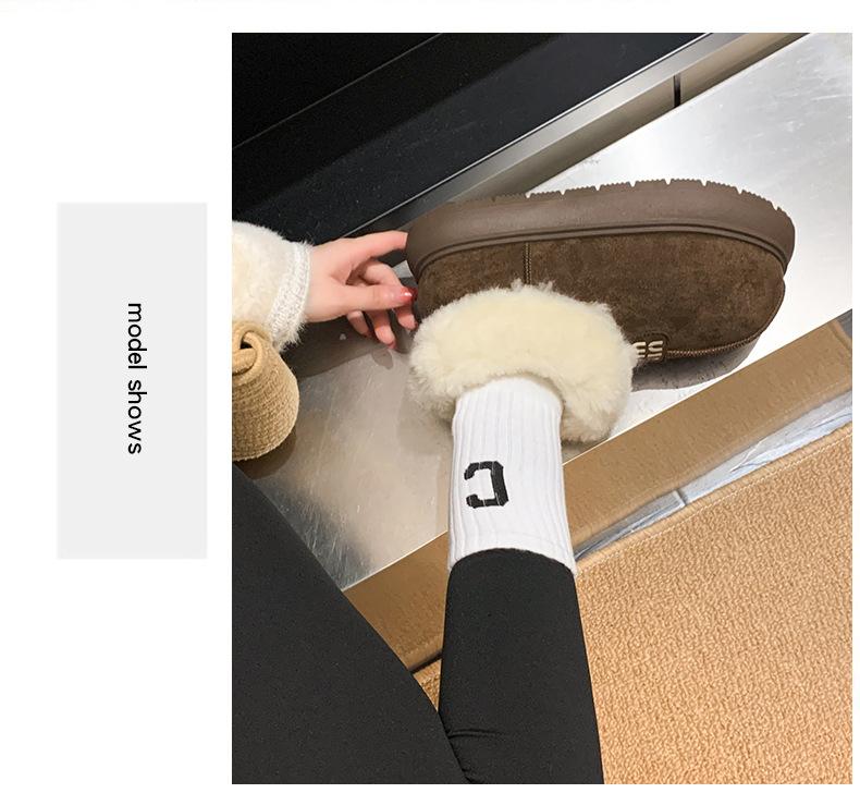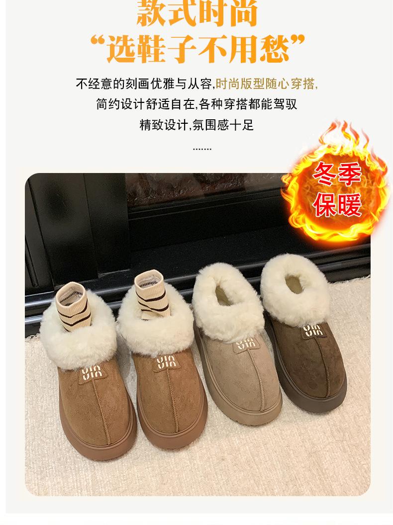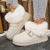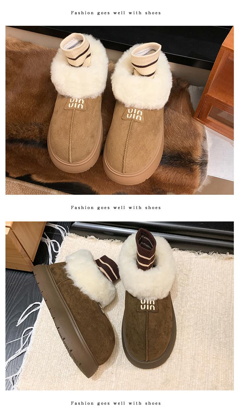 Botas de Nieve de Boca Grande Talla Pequeña Suela Gruesa para Mujer 2025 Invierno Nuevo Estilo Slip-on Cálidas Peludas Zapatos de Algodón