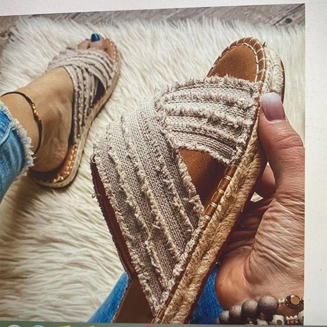 Comercio Exterior Talla Grande Chanclas Planas de Playa para Mujer Verano Suela de Cuerda de Cáñamo Sandalias Bohemias de Pescador con Tiras Cruzadas Venta al por Mayor