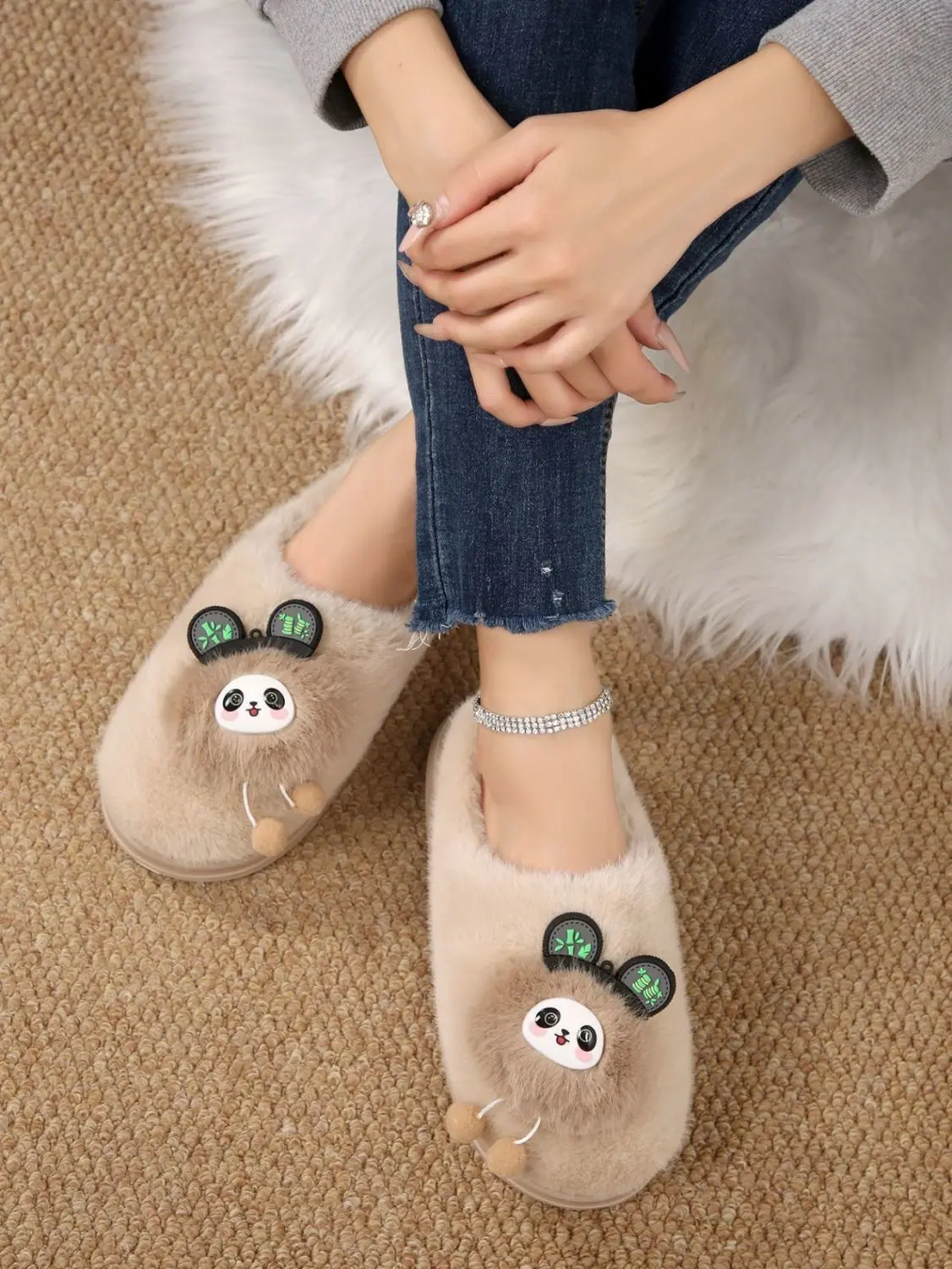 2025 Otoño/Invierno Nueva Moda Versátiles Pantuflas de Algodón Peluche para Mujer Dibujos Animados Lindas Antideslizantes Cálidas Pantuflas de Algodón para Mujer