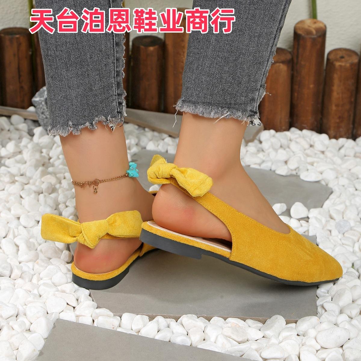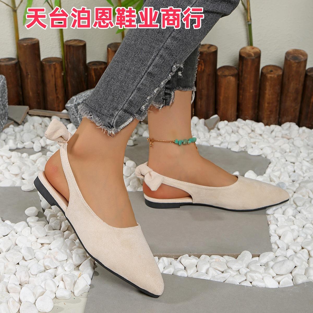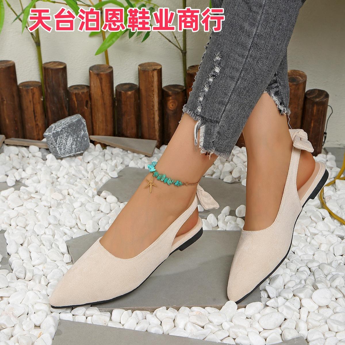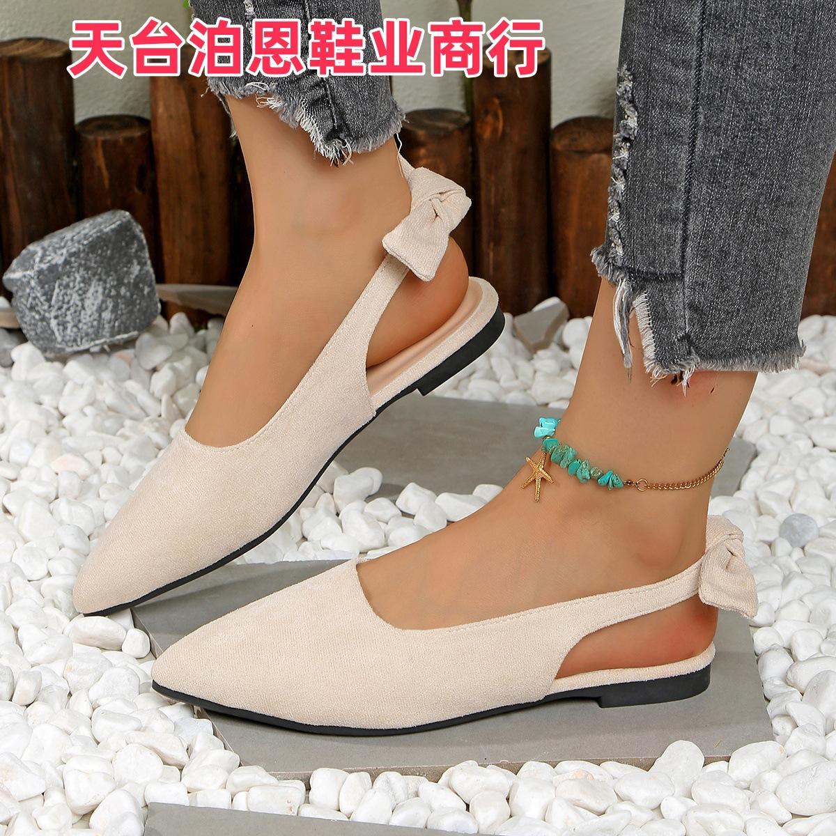 Verano 2025 Comercio Transfronterizo Nuevo Zapato de Punta para Mujer de Talla Grande Europeo y Americano Moño Plano Slip-on Sandalias de Mujer