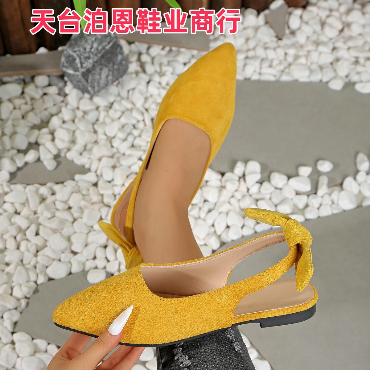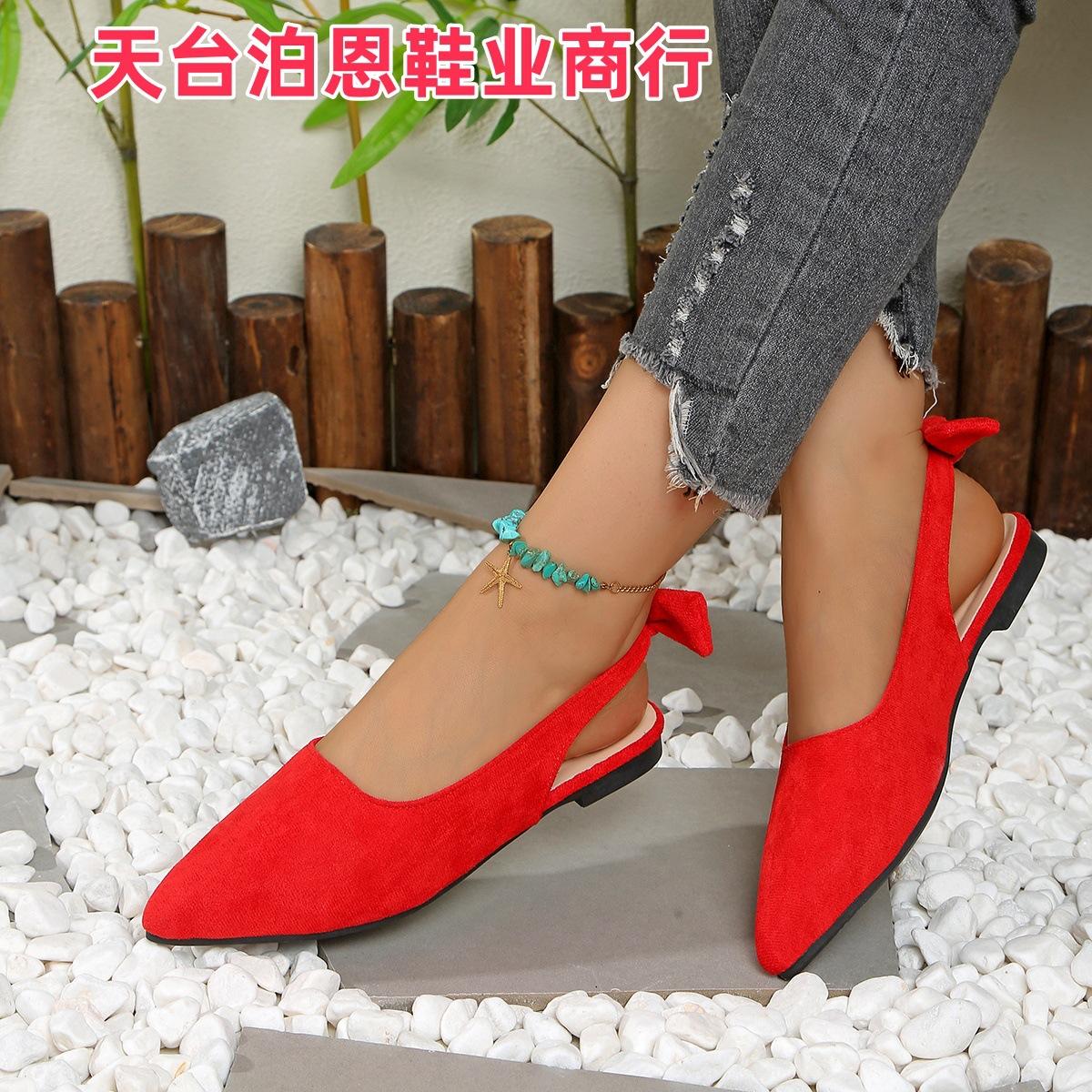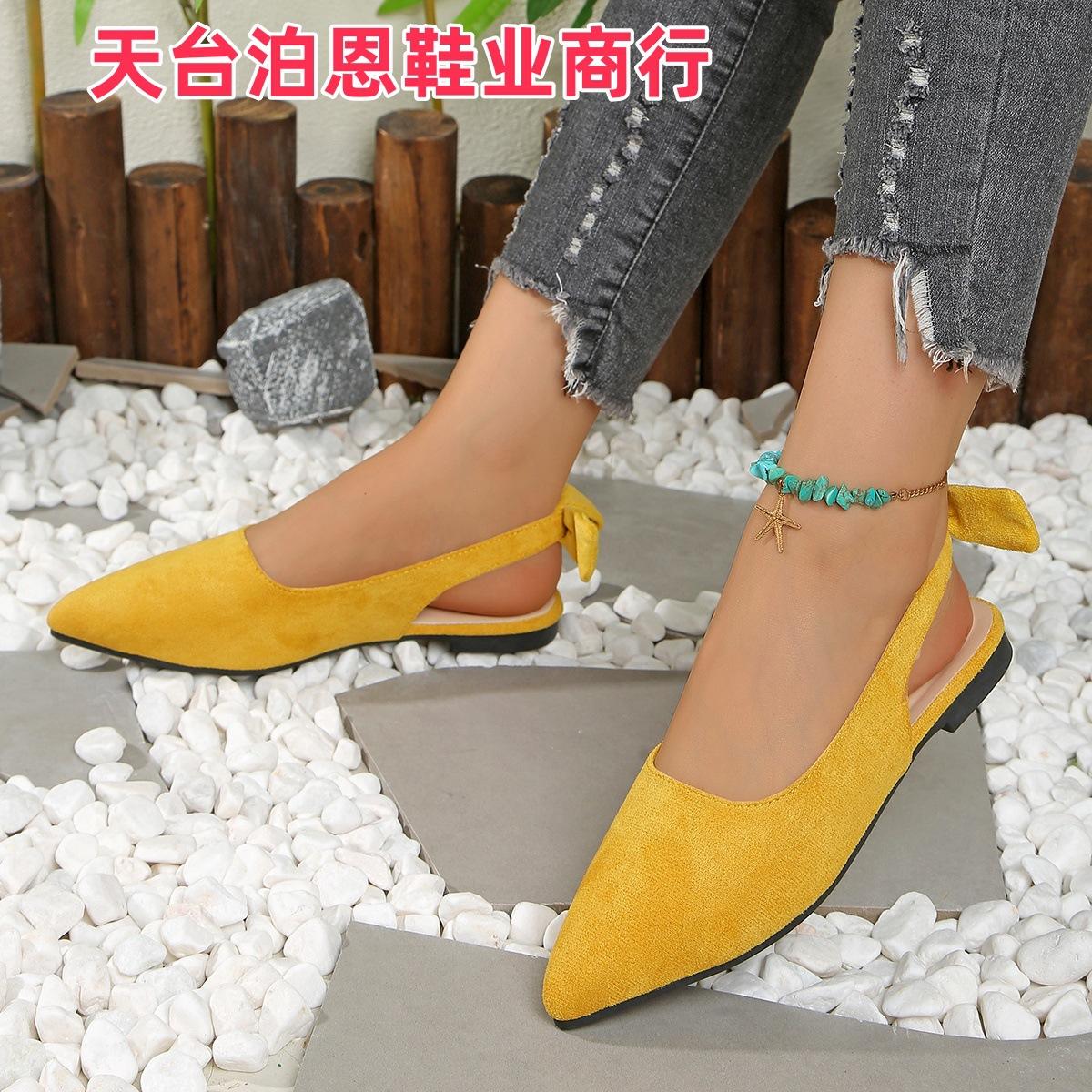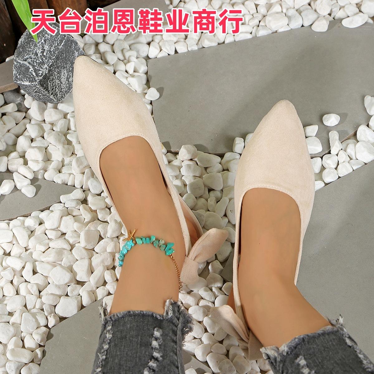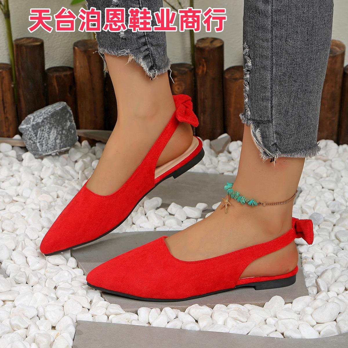 Verano 2025 Comercio Transfronterizo Nuevo Zapato de Punta para Mujer de Talla Grande Europeo y Americano Moño Plano Slip-on Sandalias de Mujer