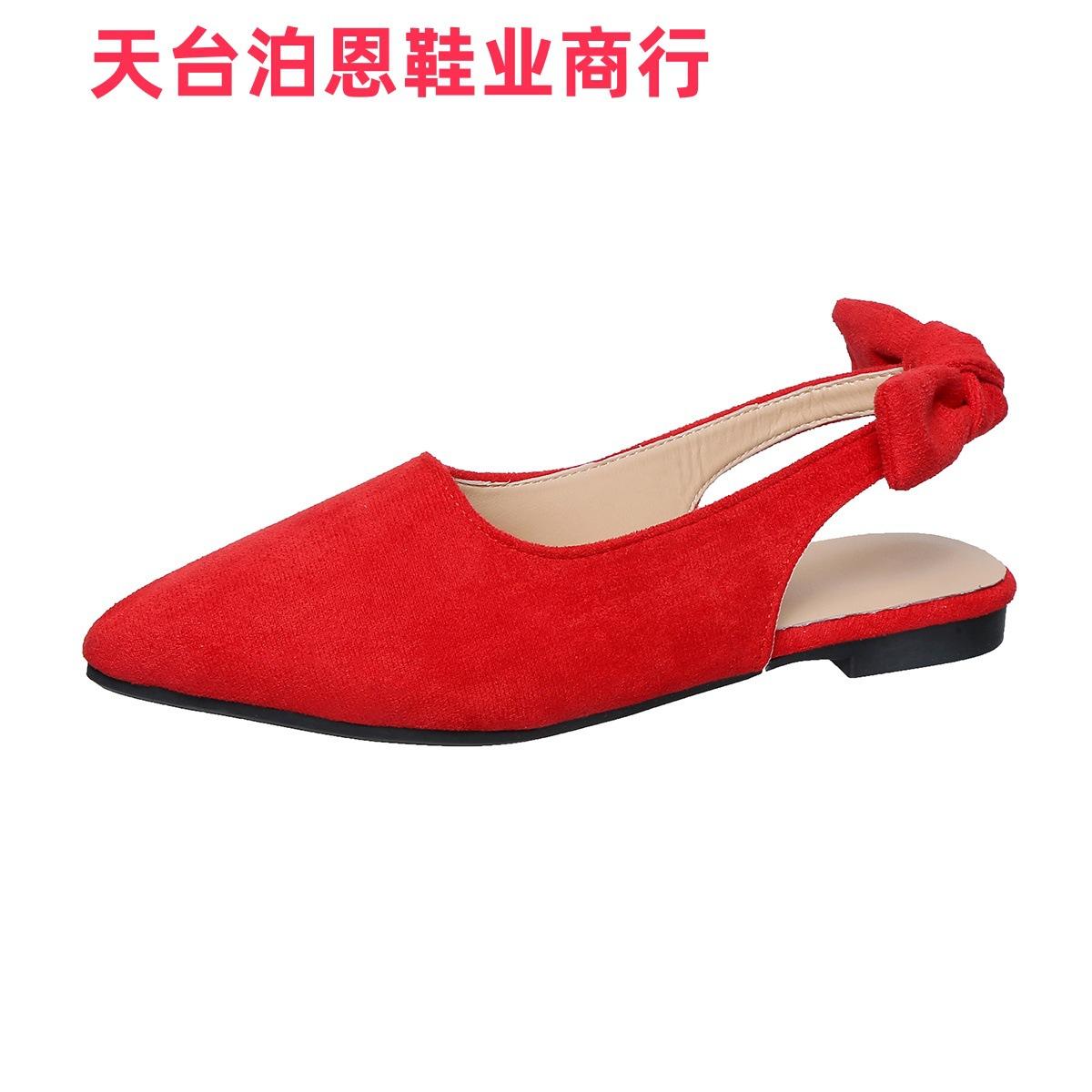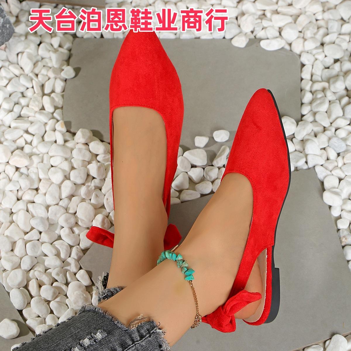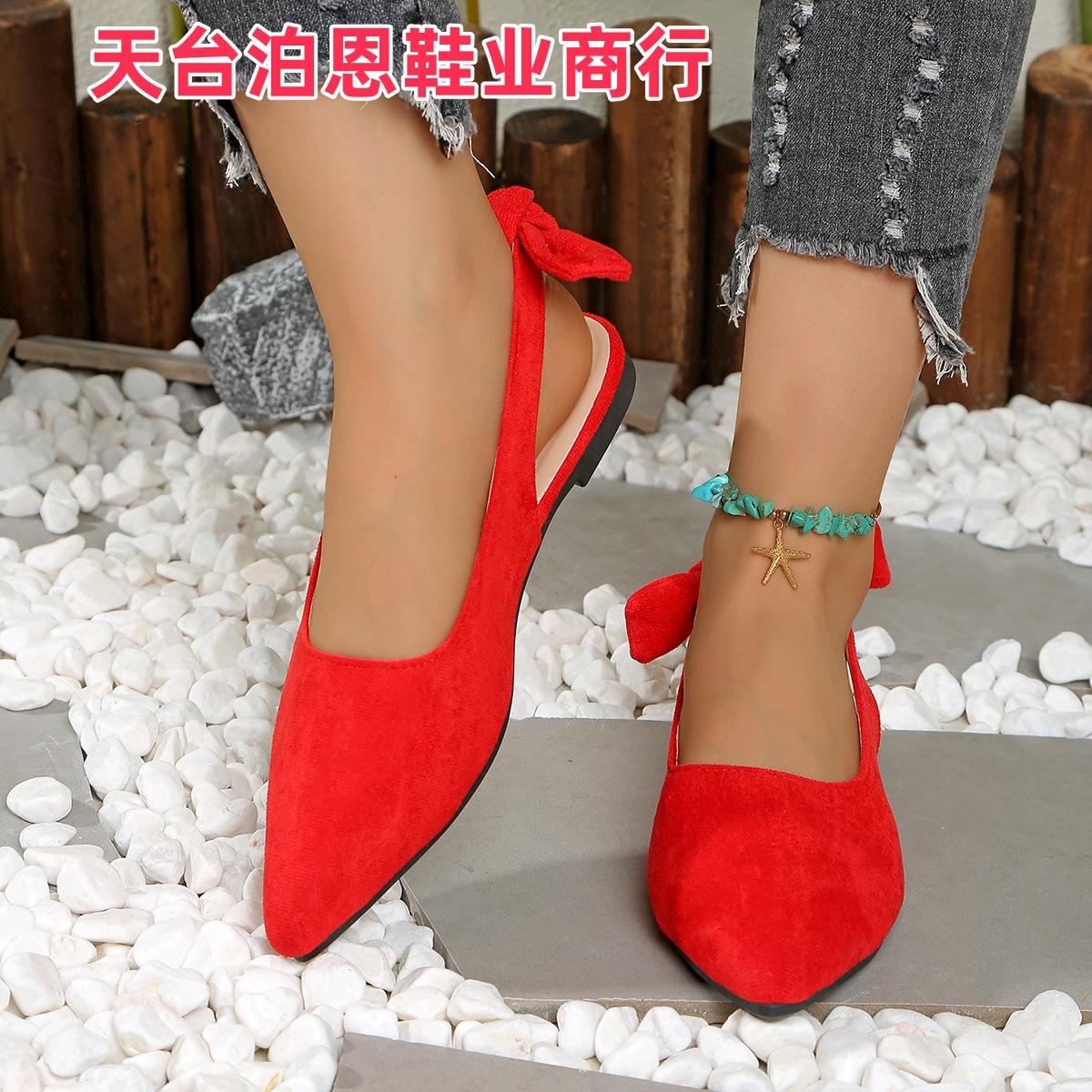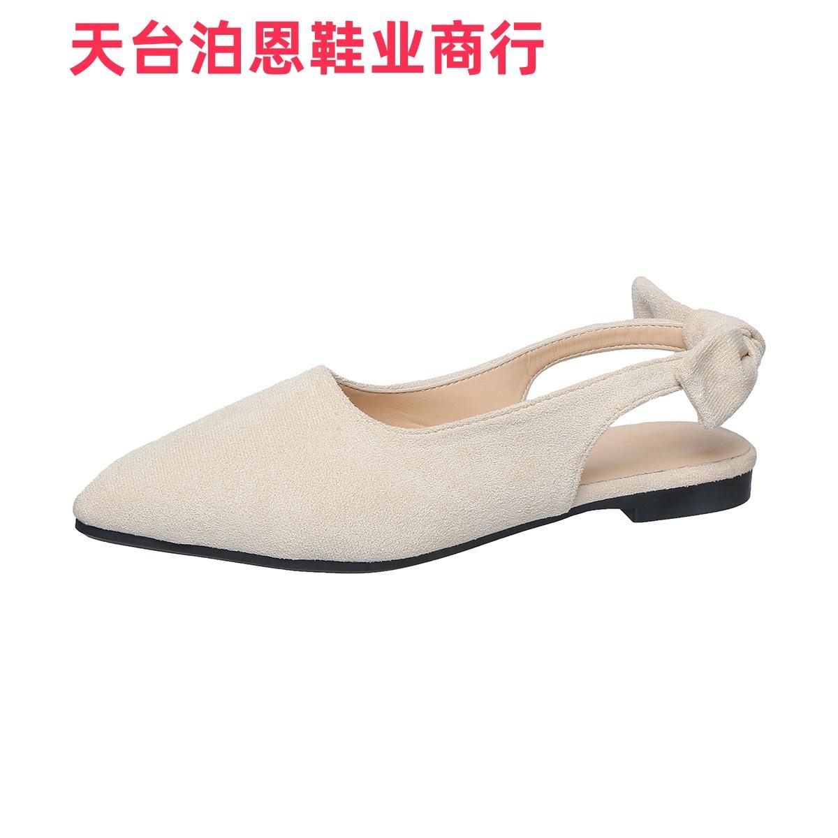 Verano 2025 Comercio Transfronterizo Nuevo Zapato de Punta para Mujer de Talla Grande Europeo y Americano Moño Plano Slip-on Sandalias de Mujer