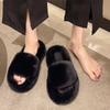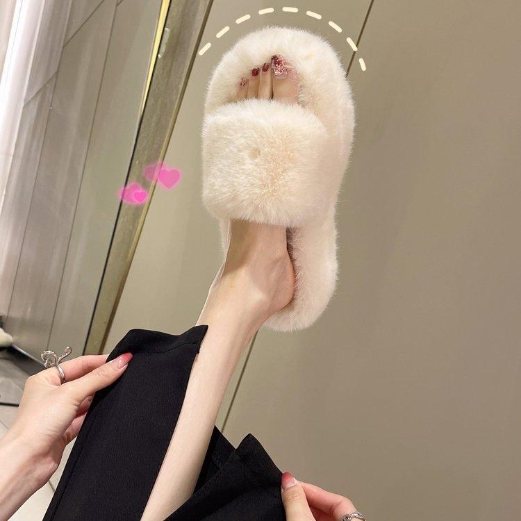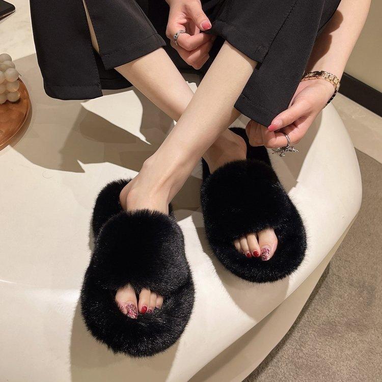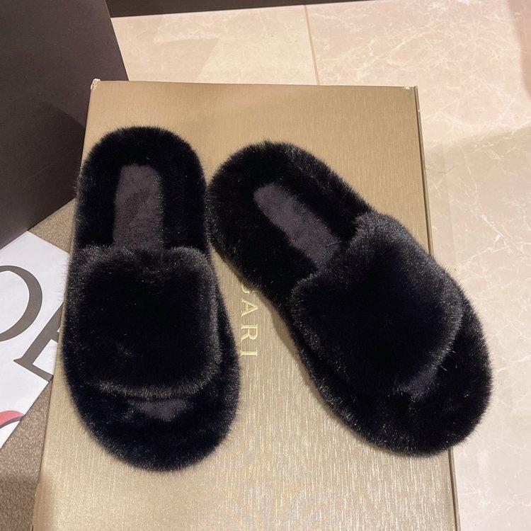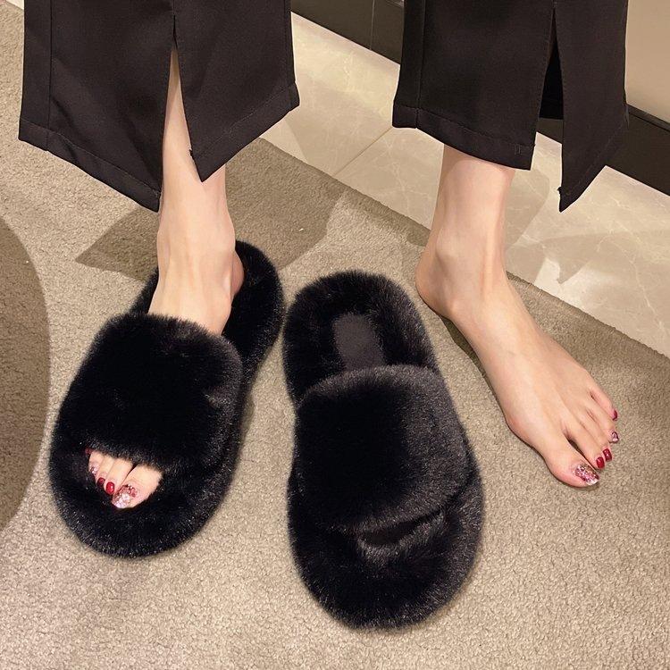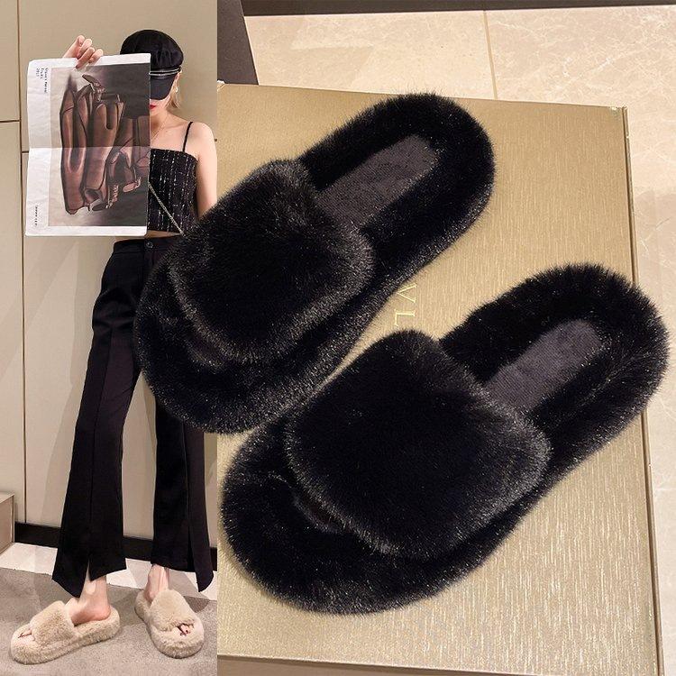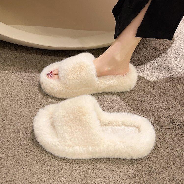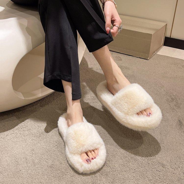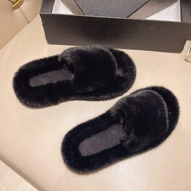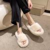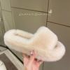 Pantuflas peludas de una palabra al por mayor para mujer 2025 nuevo estilo interior para el hogar cálidas de algodón pantuflas de felpa invierno