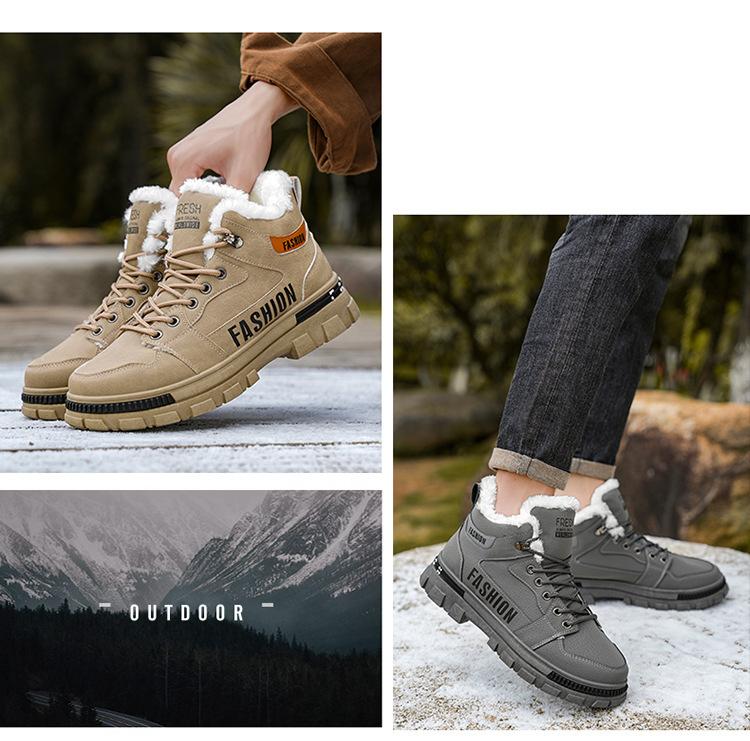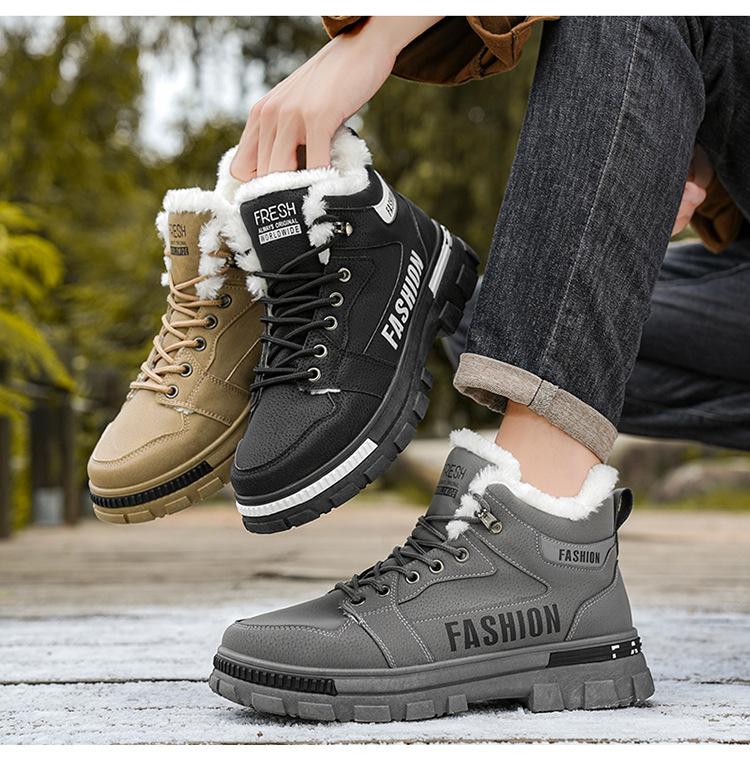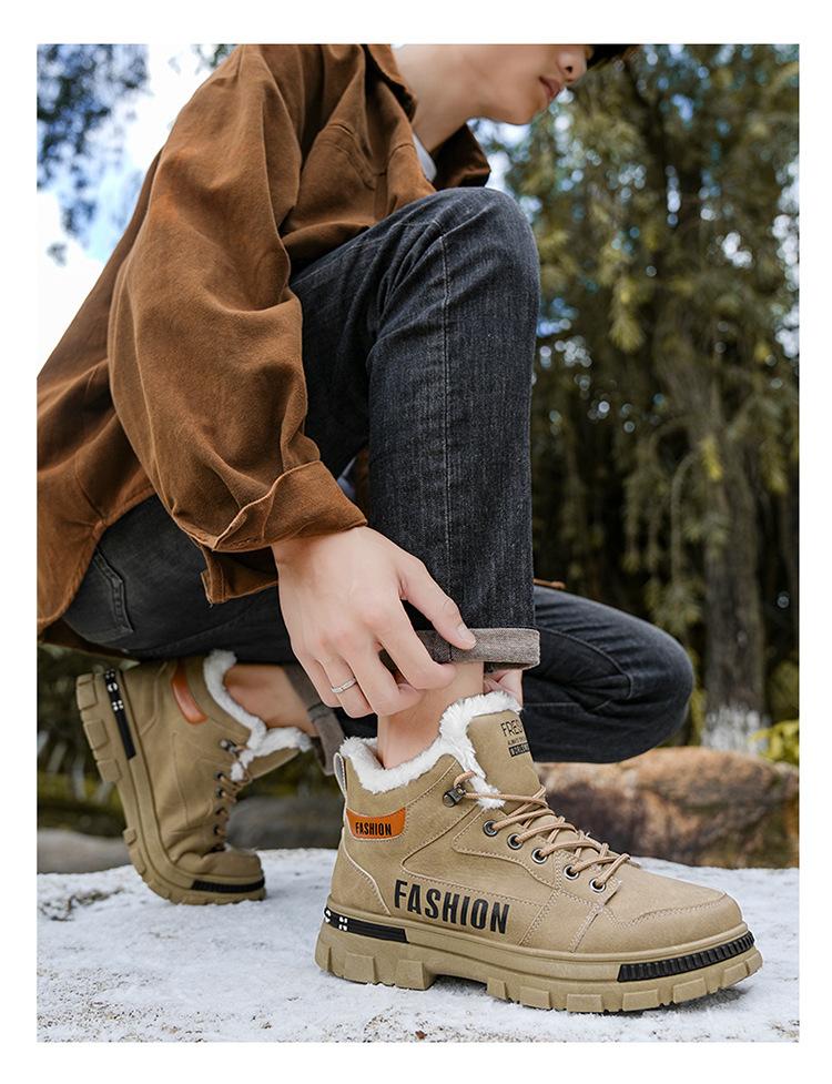 Compra Botas Martin de invierno con forro polar para hombre zapatos nuevos de caña alta zapatos de trabajo para hombre antideslizantes resistentes al desgaste engrosados cálidos de algodón botas cortas al por mayor en Joom.pro