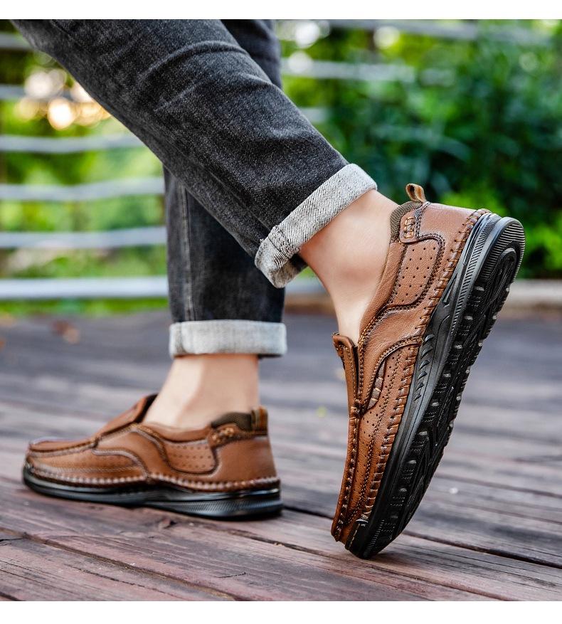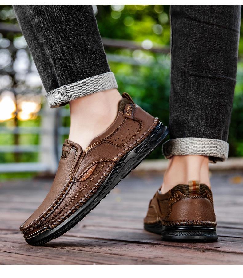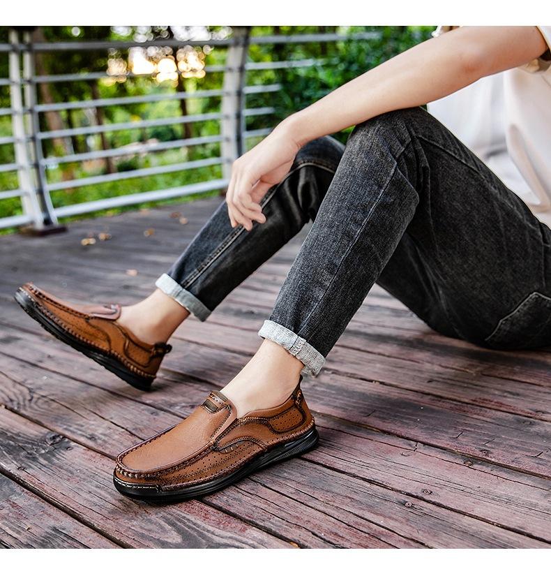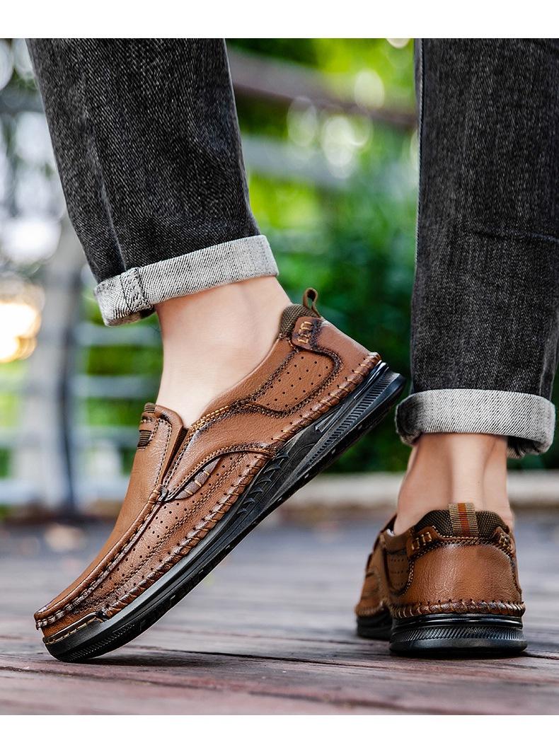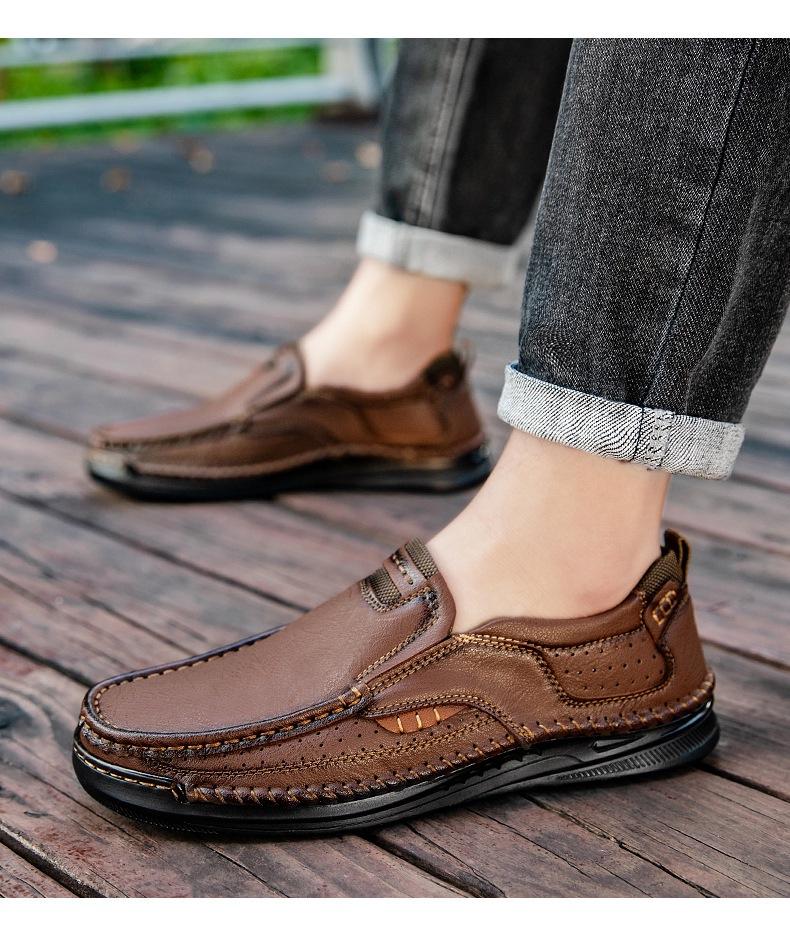 Zapatos de hombre de talla grande transfronterizos zapatos casuales de cuero de un paso zapatos de mocasín para conducir de suela blanda para hombre mocasines de papá sin cordones