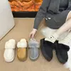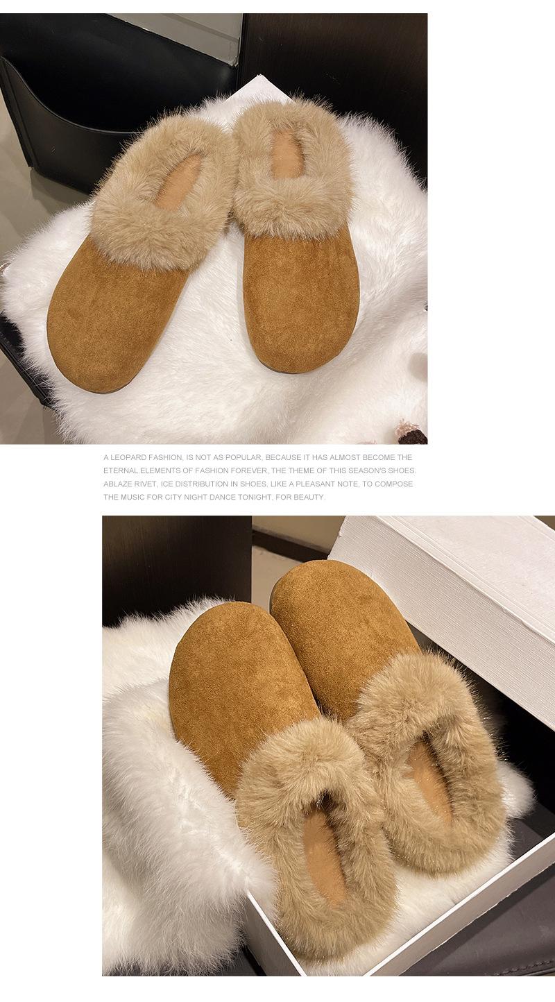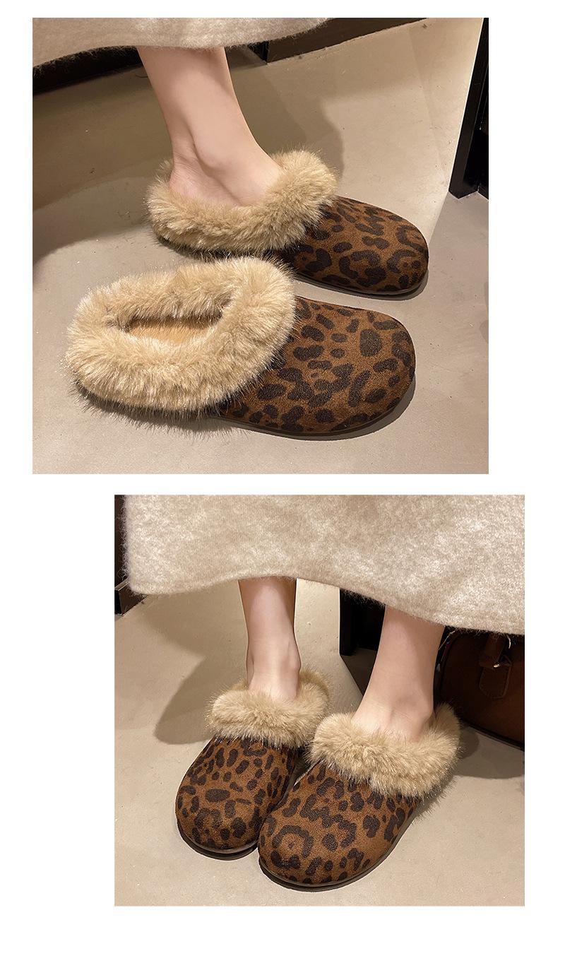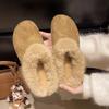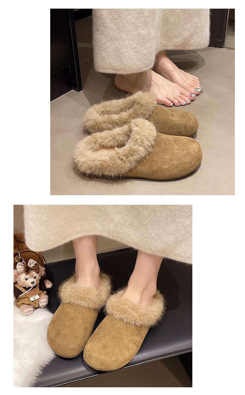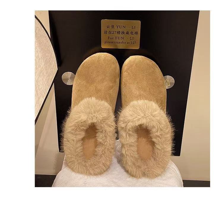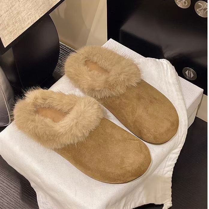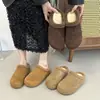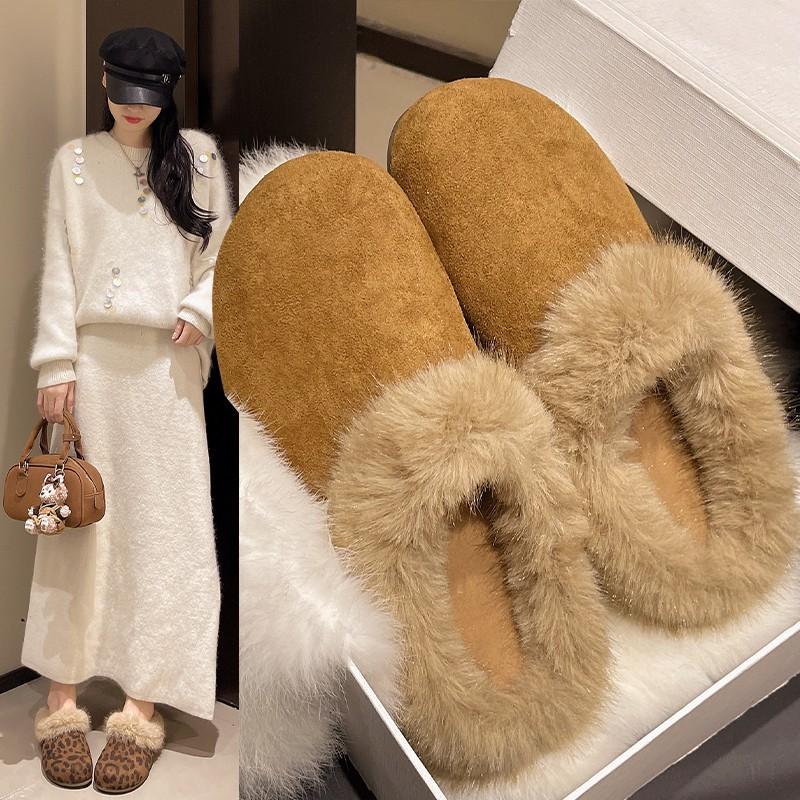 Zapatillas planas peludas de moda y versátiles para mujer 2025 otoño/invierno nuevo estilo punta redonda perezosas sin cordones zapatillas medias para uso exterior