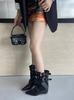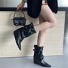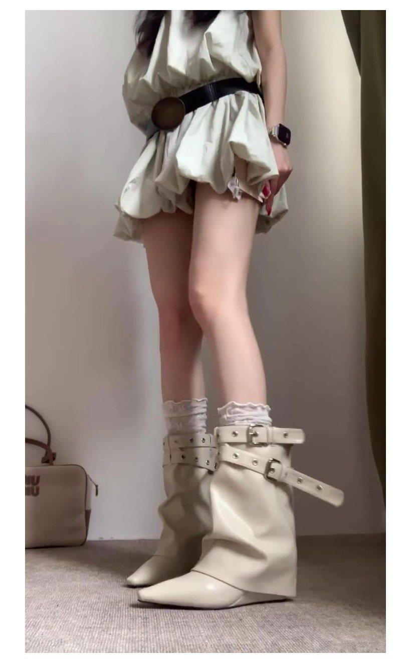 Botas Sexy 2025 Chica Caliente Otoño Invierno Hebilla Europeo Americano Punta Cuadrada Tacón de Cuña Nuevos Remaches Hasta la Pierna Tacón Alto Botines de Tobillo Mujer