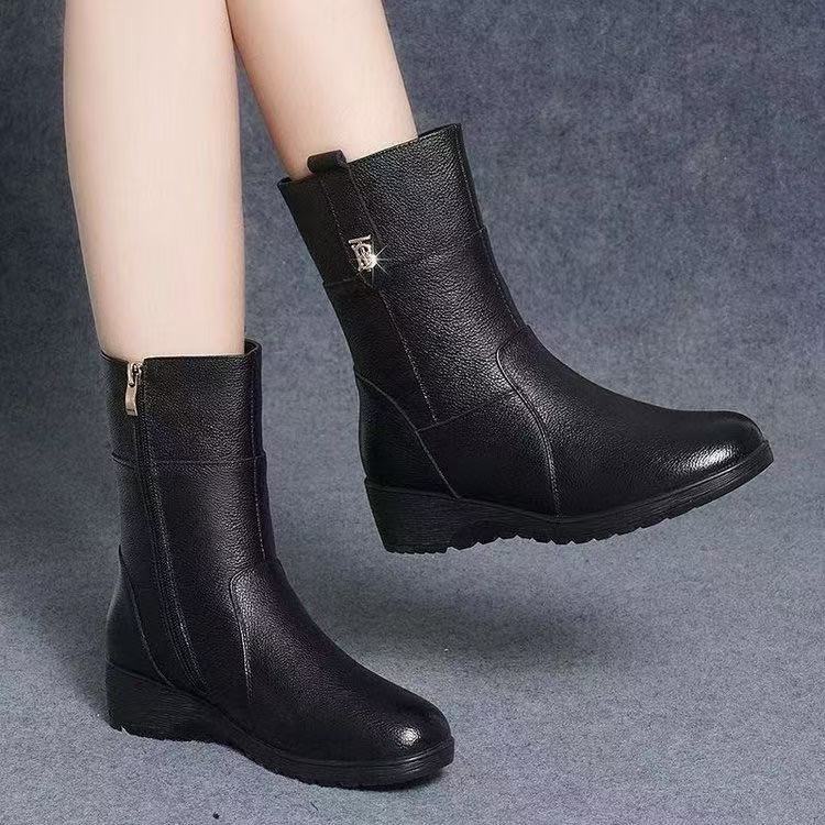 Comercio Exterior Transfronterizo Superventas 2025 Nuevos Zapatos de Invierno para Mamá Suela Suave Ligeras Cómodas Felpa Gruesa Media Caña Botas de Mujer