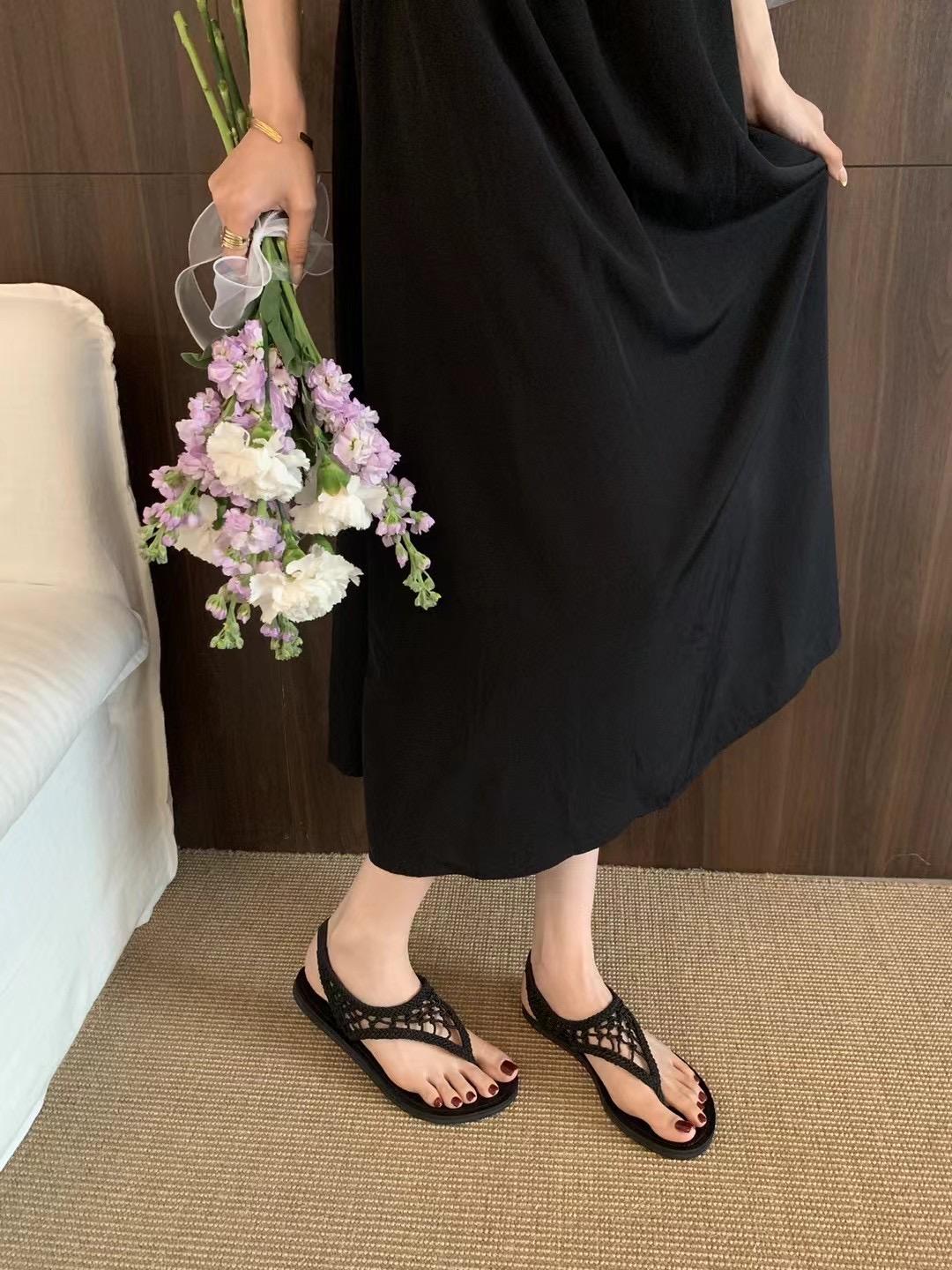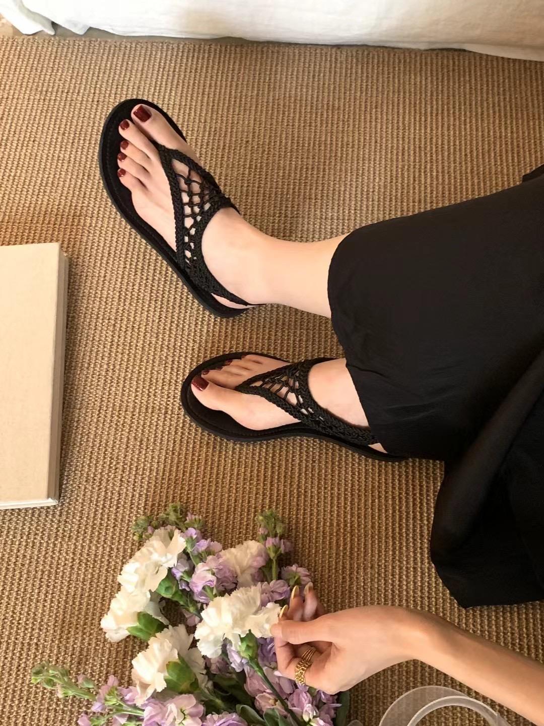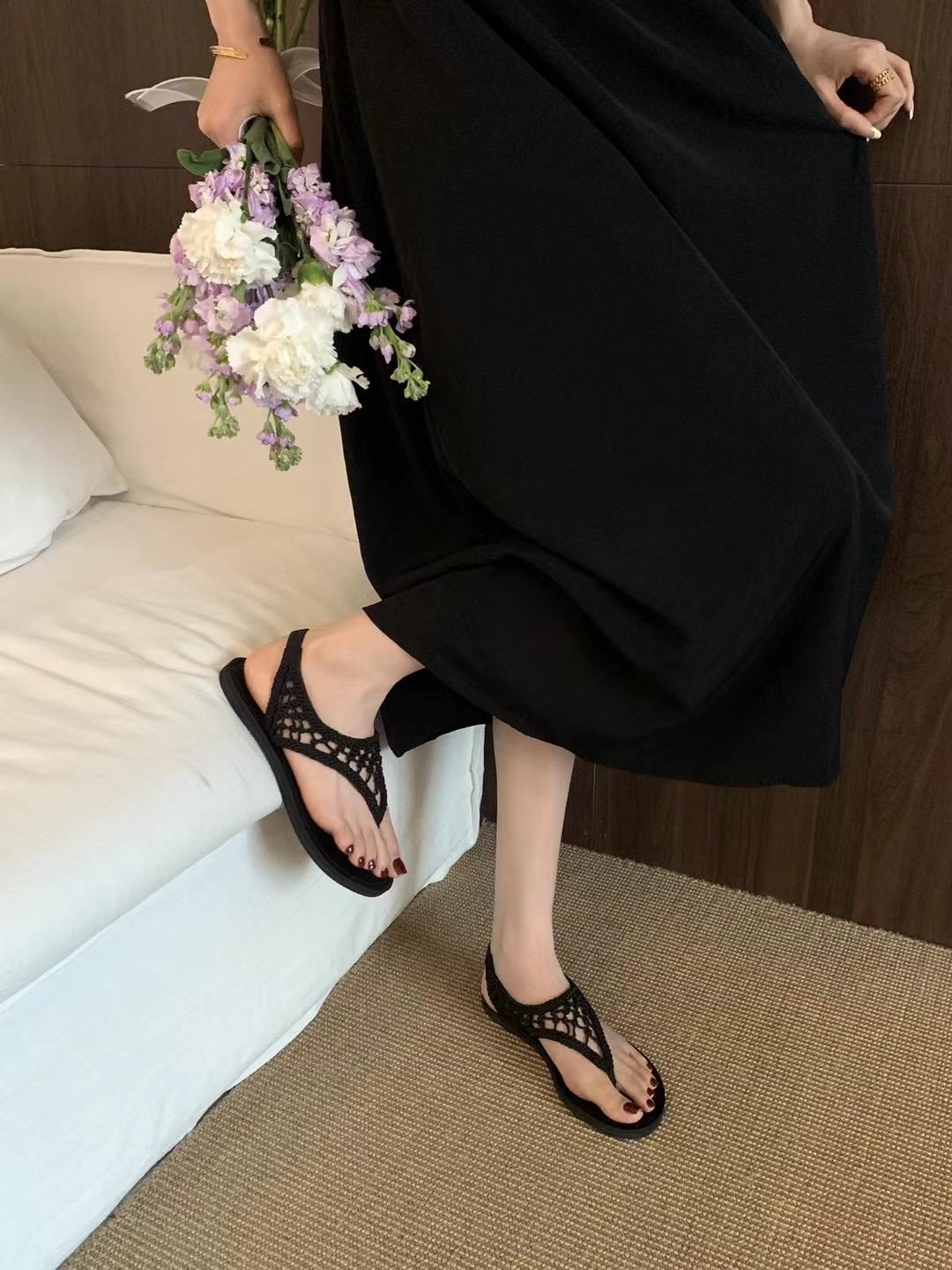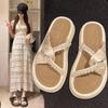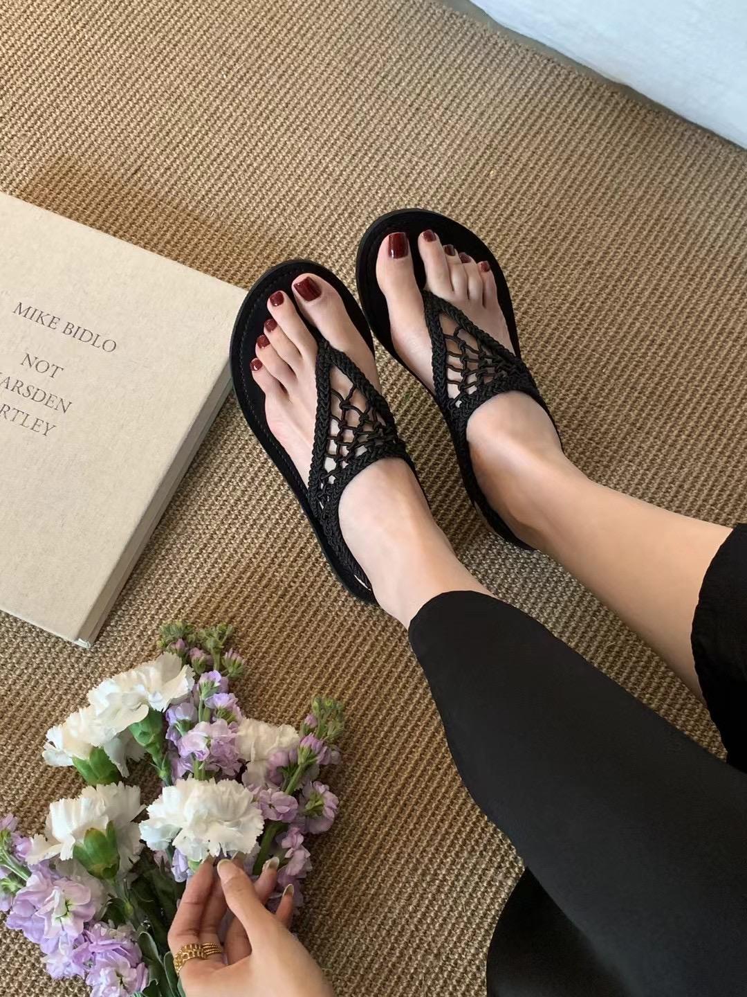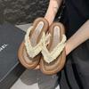 Sandalias Transpirables Caladas de Verano Nuevo Estilo Coreano Chanclas Tejidas a Mano Calzado Exterior para Mujer Vacaciones Playa