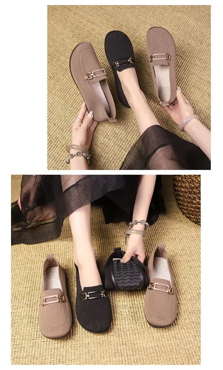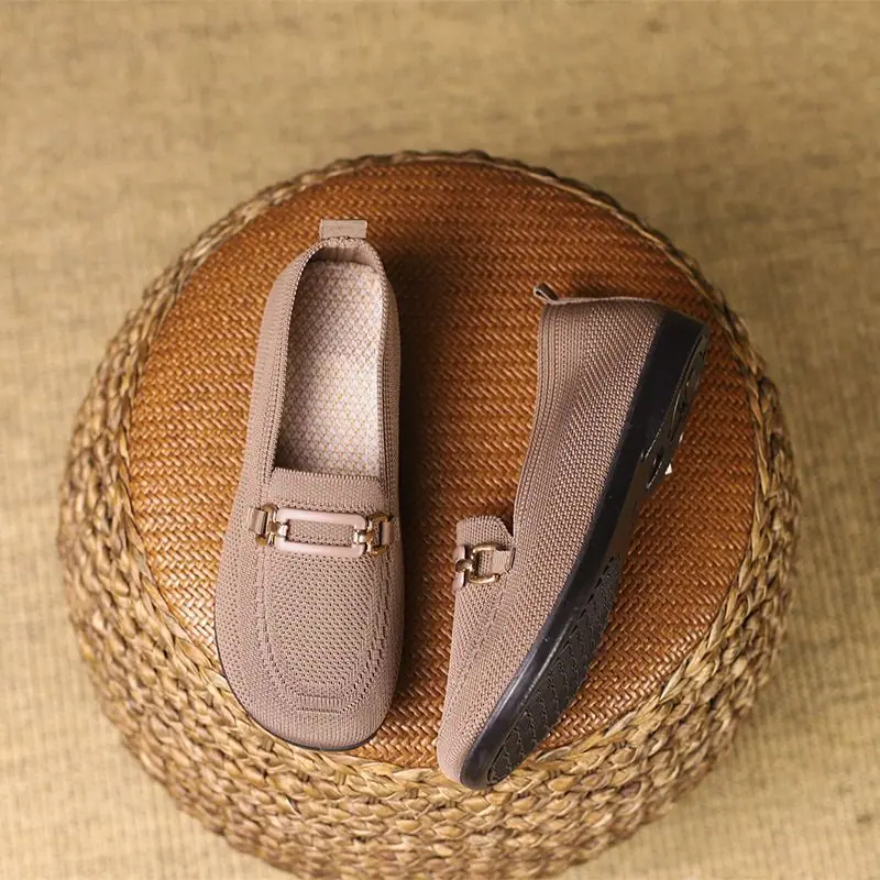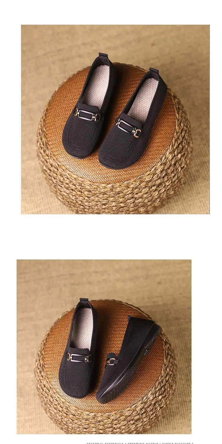 Zapatos de Tela de Pekín Antiguos Mujer 2025 Verano Nuevo Cómodos Transpirables Casuales Slip-on Trabajo Mocasines Suela Plana Zapatos de Mamá