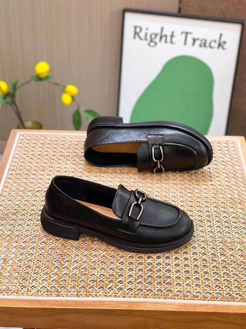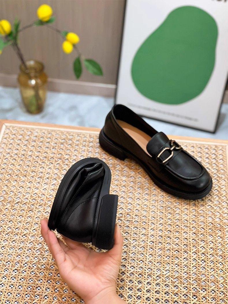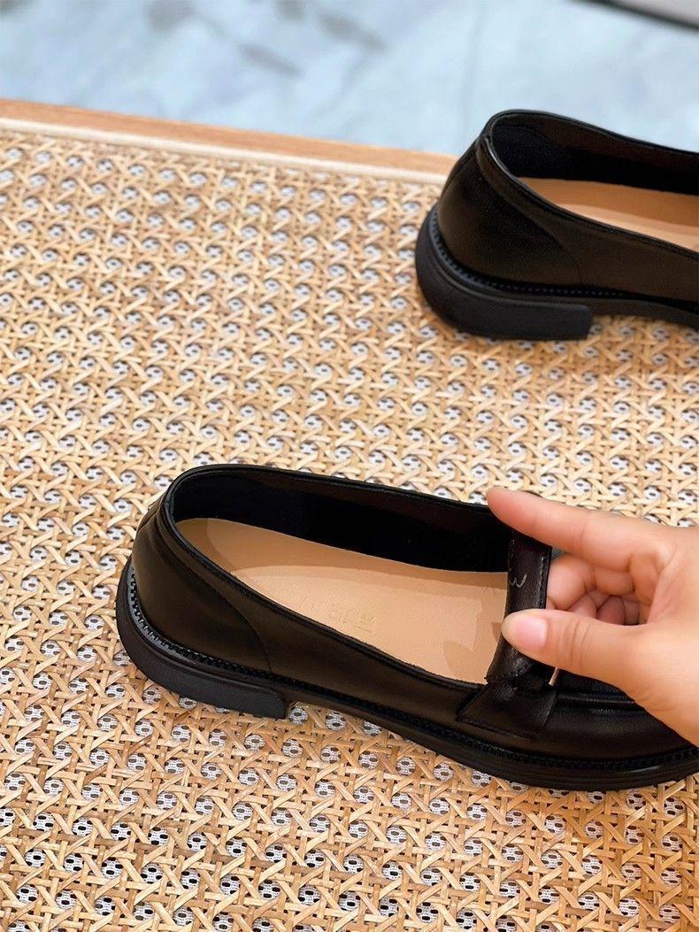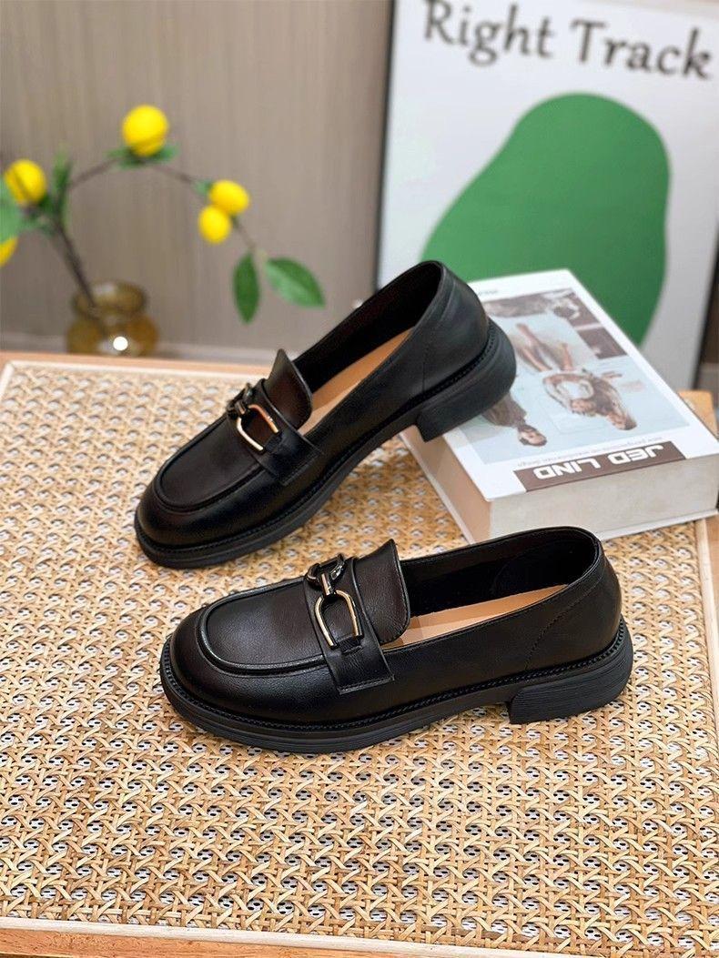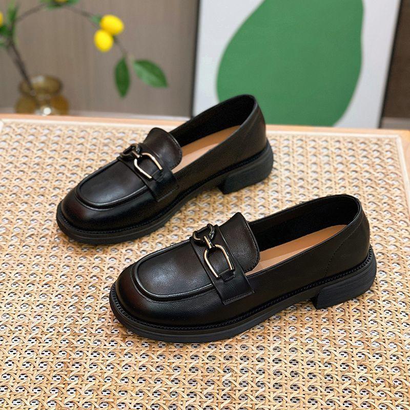 Zapatos Pequeños de Cuero Estilo Británico Suela Suave Mocasines Slip-On para Mujer 2025 Primavera y Otoño Nuevos Versátiles Zapatos Planos Negros Otoño