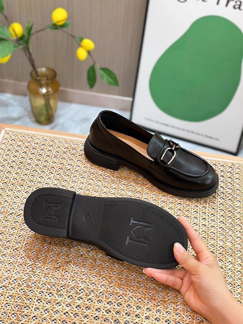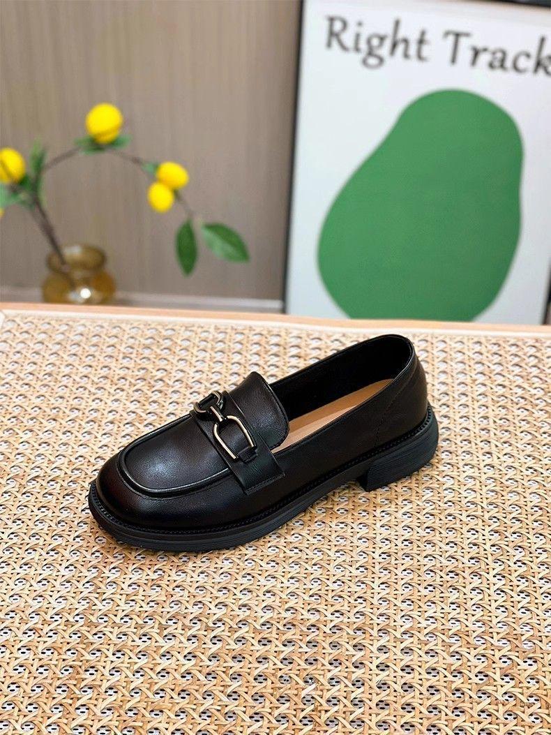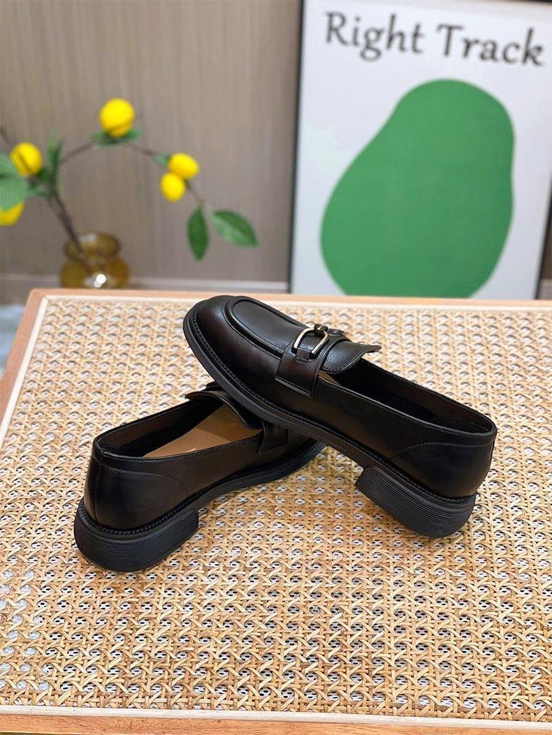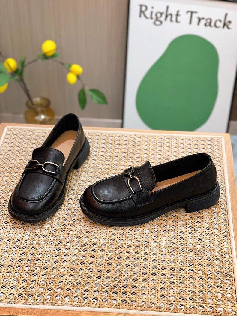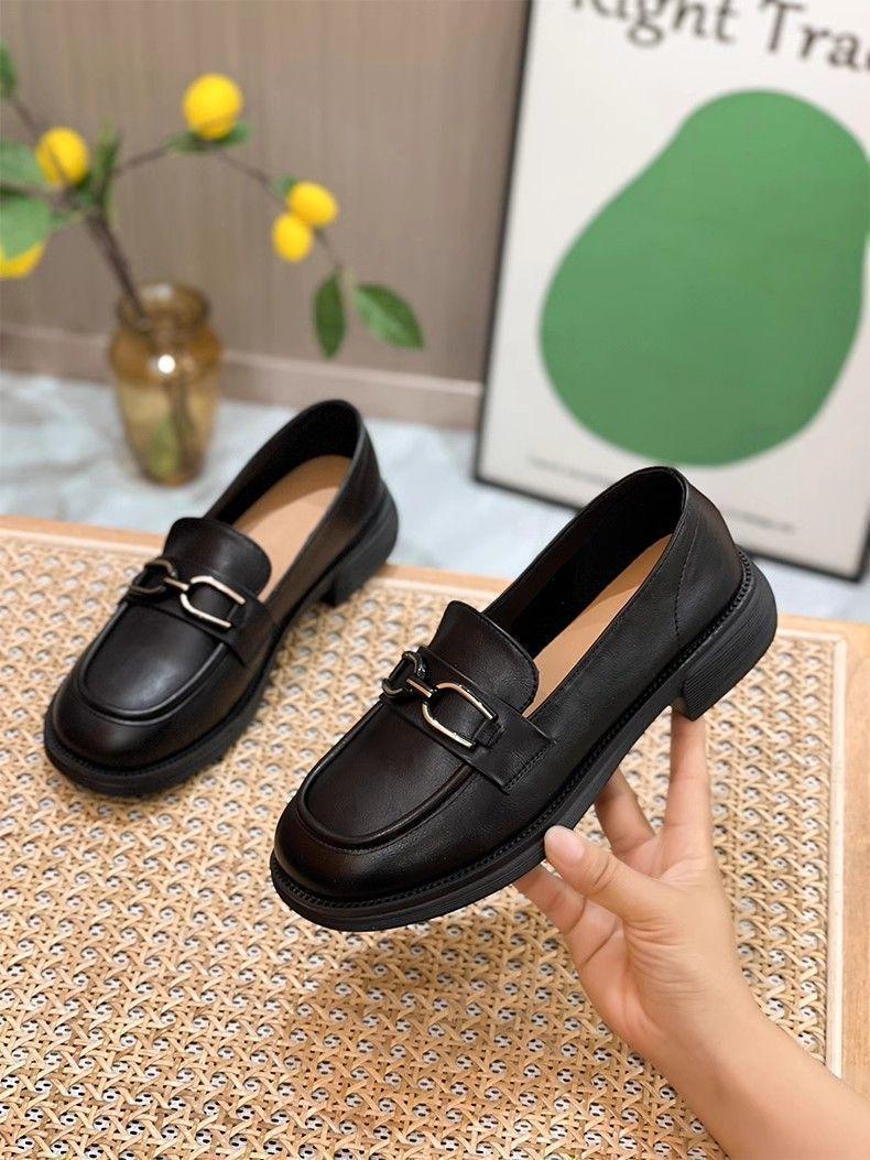 Zapatos Pequeños de Cuero Estilo Británico Suela Suave Mocasines Slip-On para Mujer 2025 Primavera y Otoño Nuevos Versátiles Zapatos Planos Negros Otoño