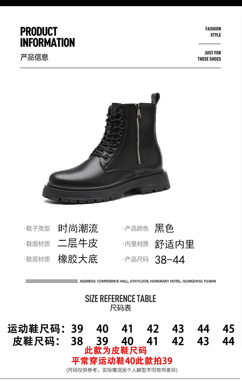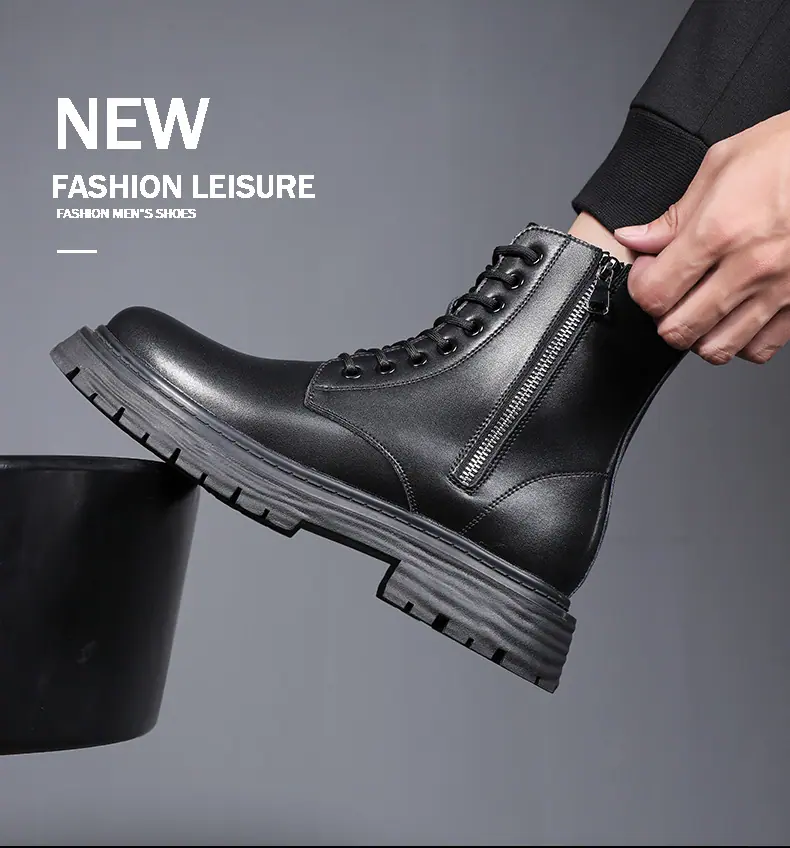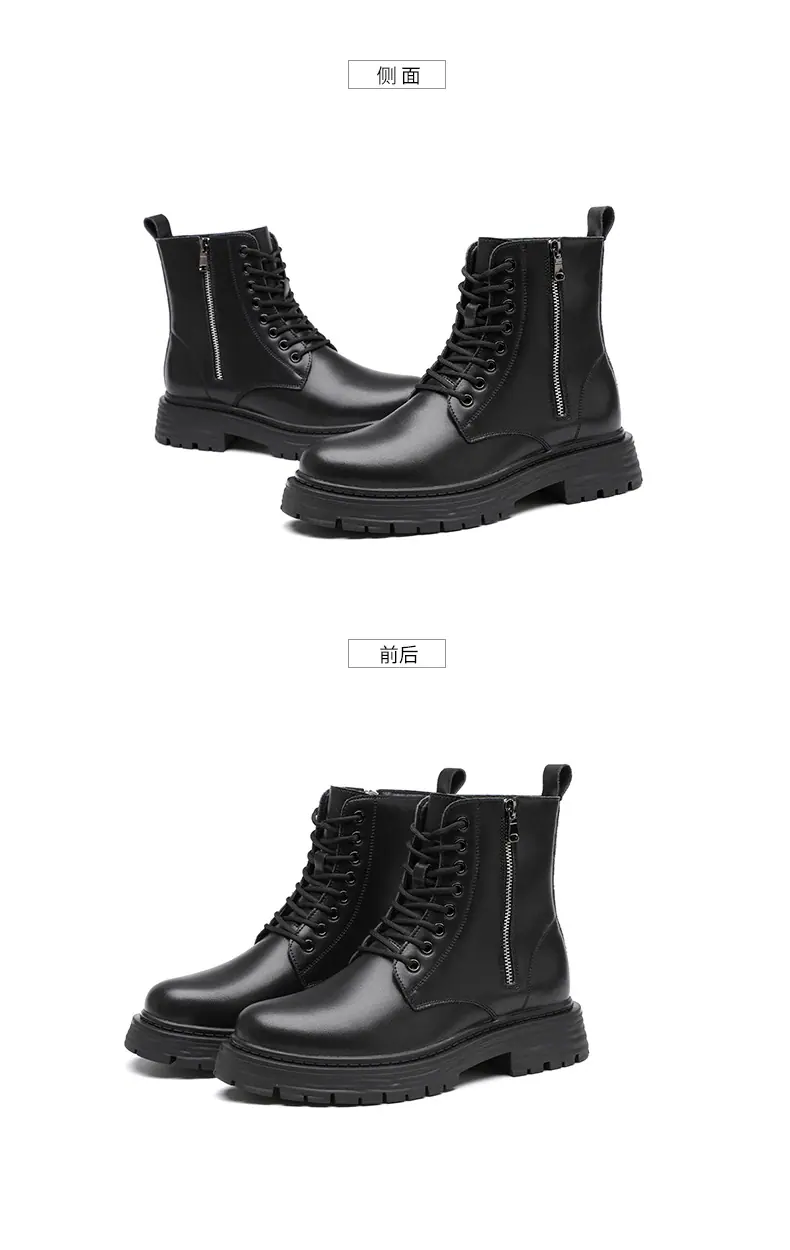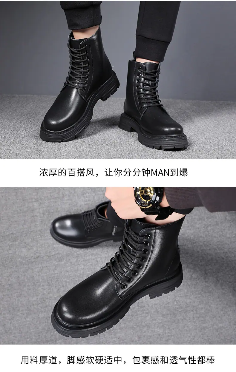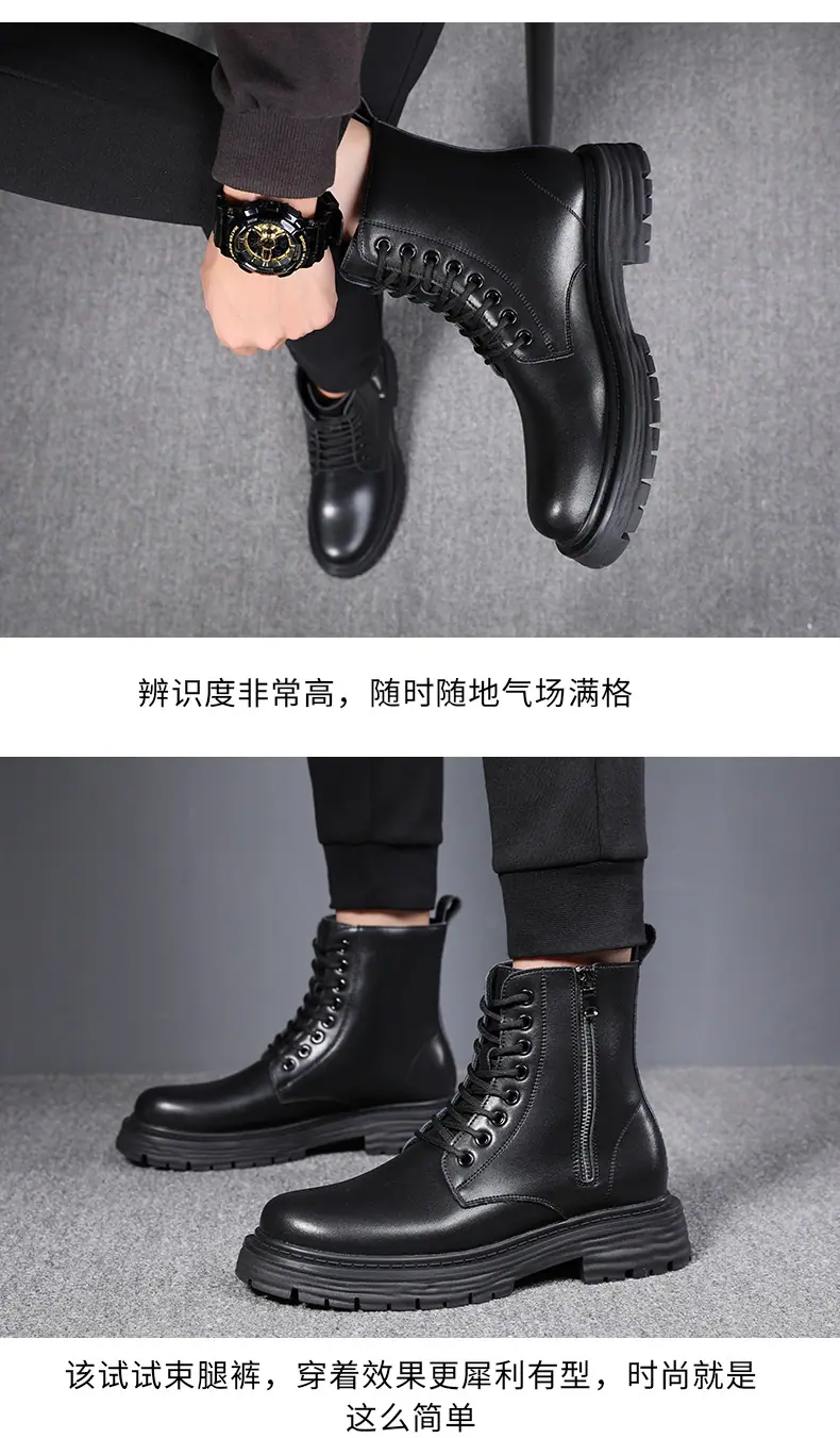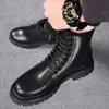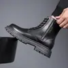 Botas Martin para Hombre Estilo Británico Botas de Caña Alta para Hombre Invierno Forradas de Lana Zapatos de Caña Media de Cuero Negro Ropa de Trabajo Botines Chelsea al Tobillo a la Moda