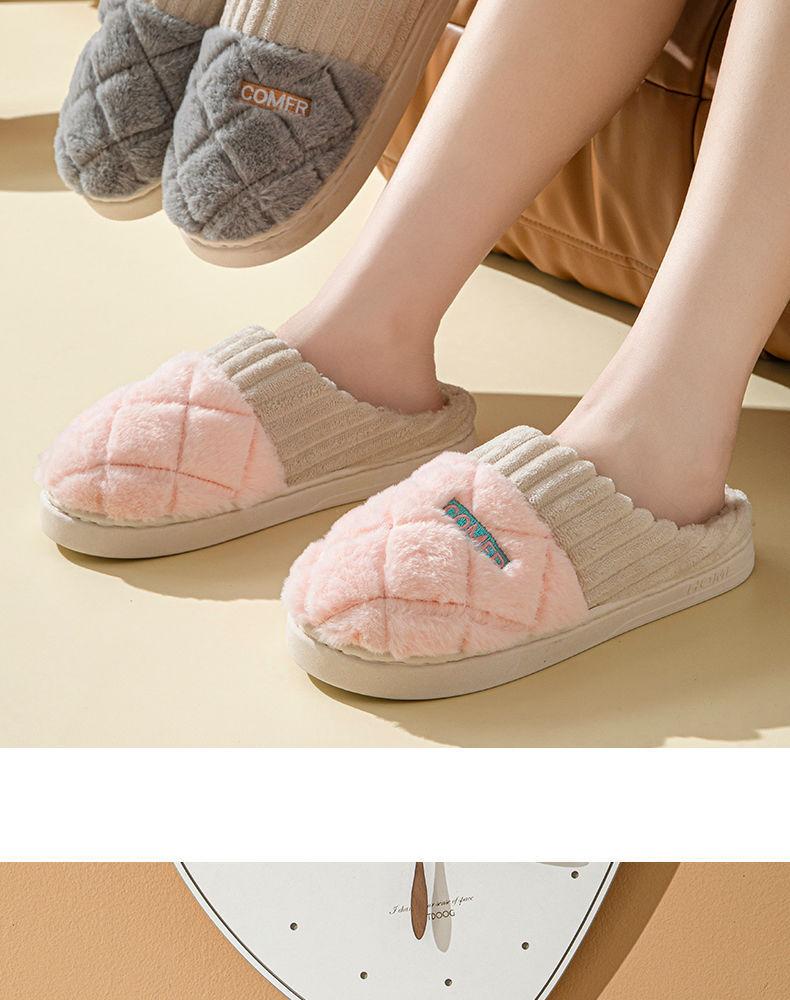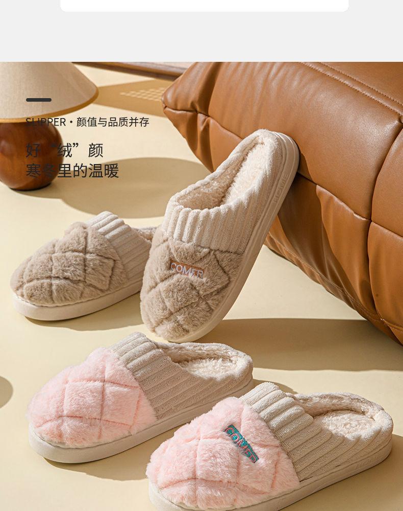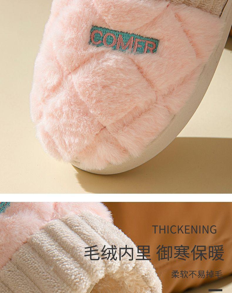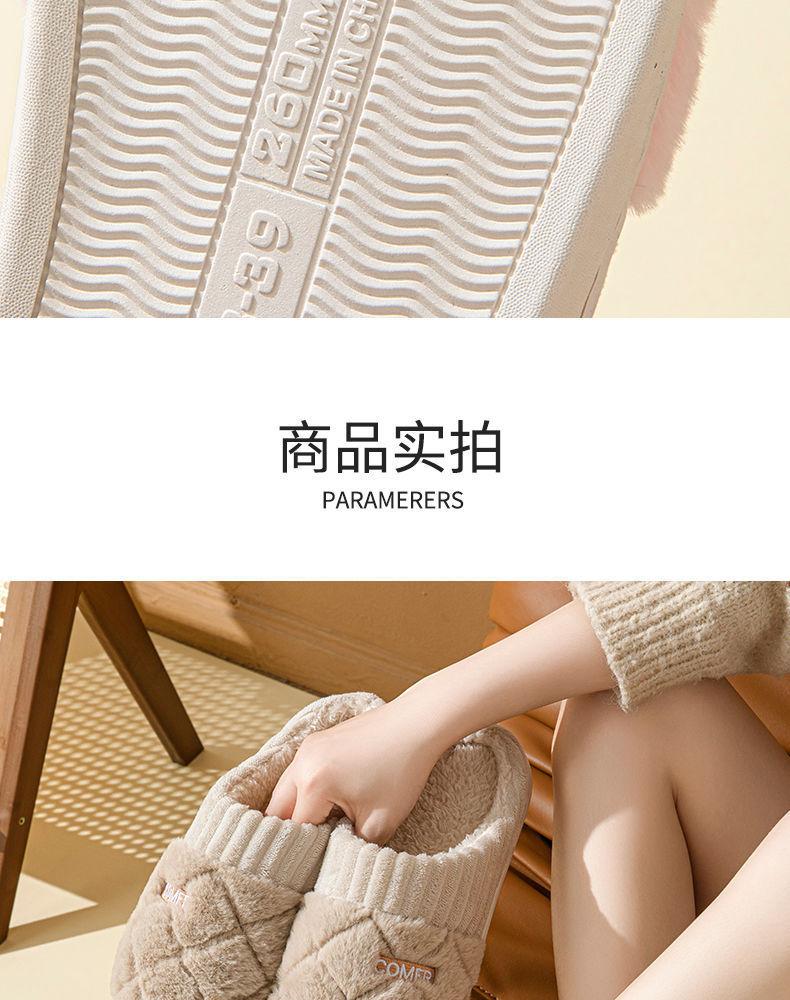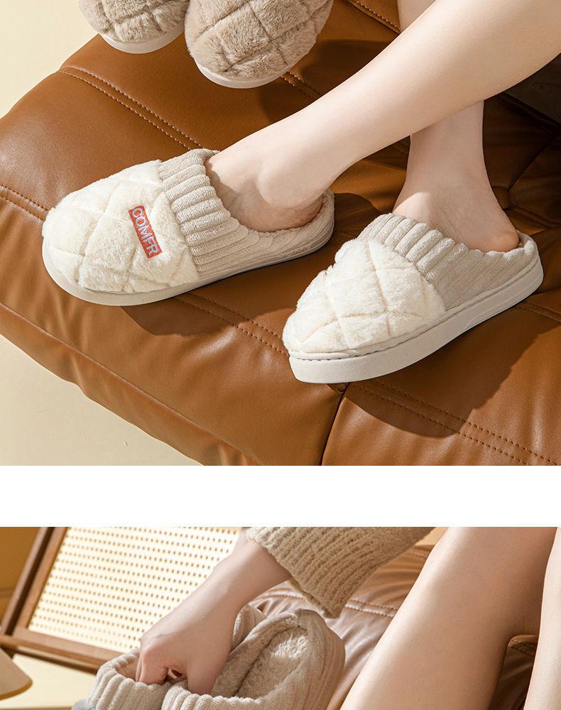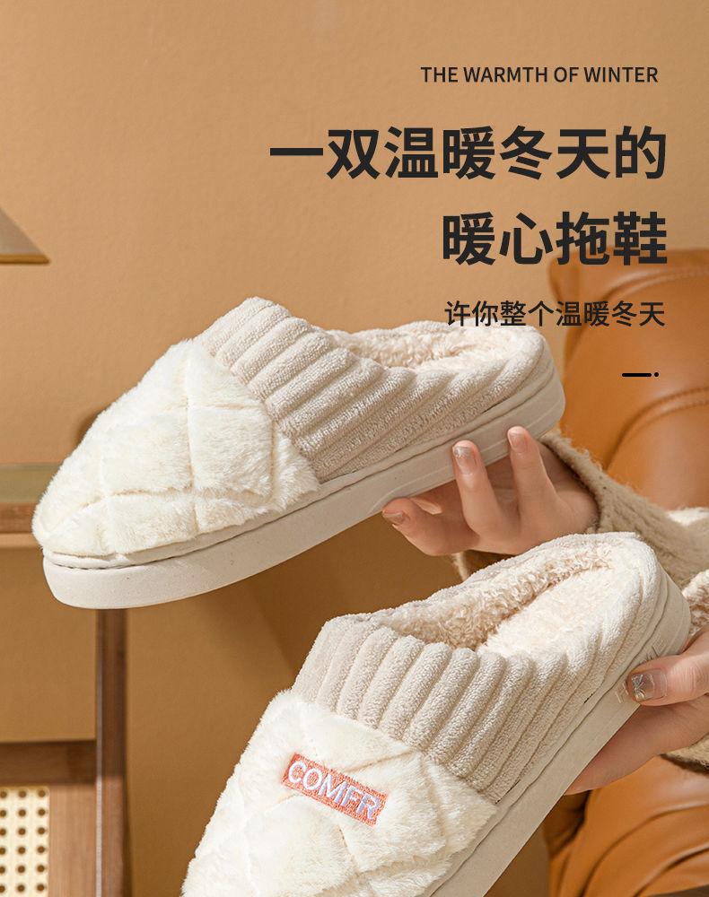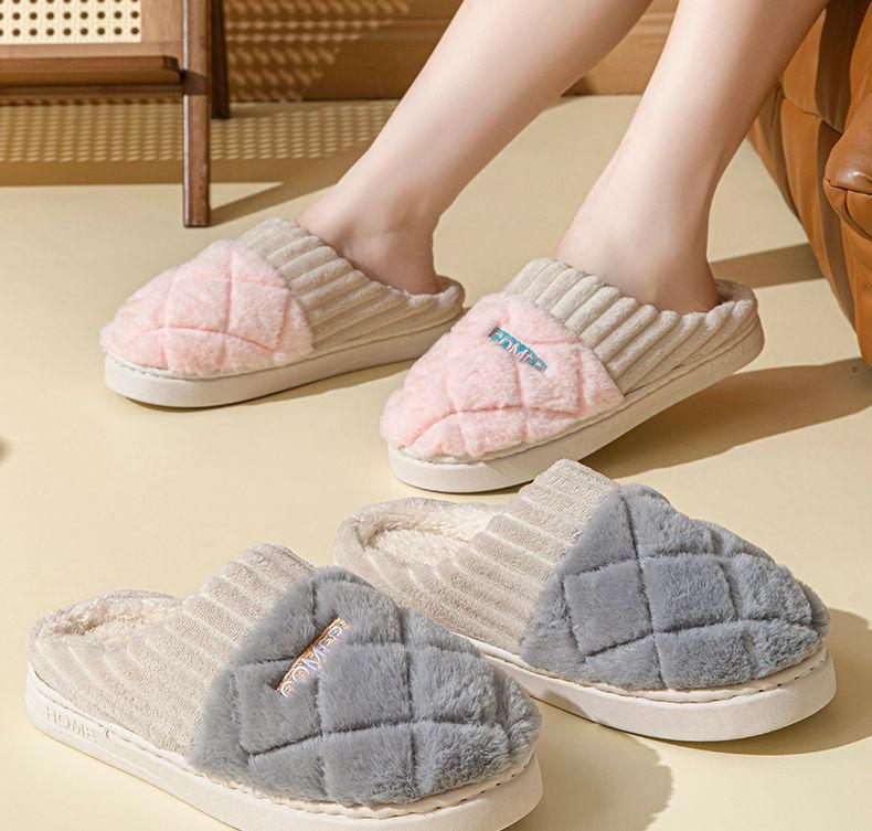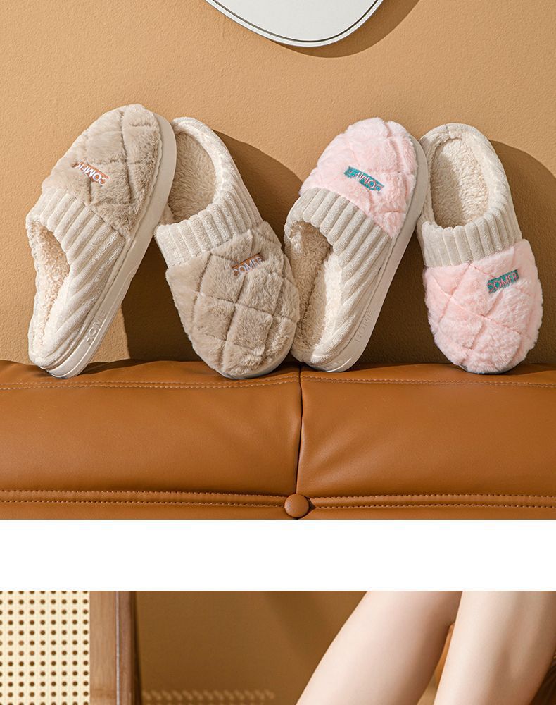 Pantuflas de Algodón Mujer Invierno 2025 Nuevas Pareja Hogar Suela Gruesa Silenciosas Felpa Cálidas Pantuflas Hombre Sencillas Súper Suaves