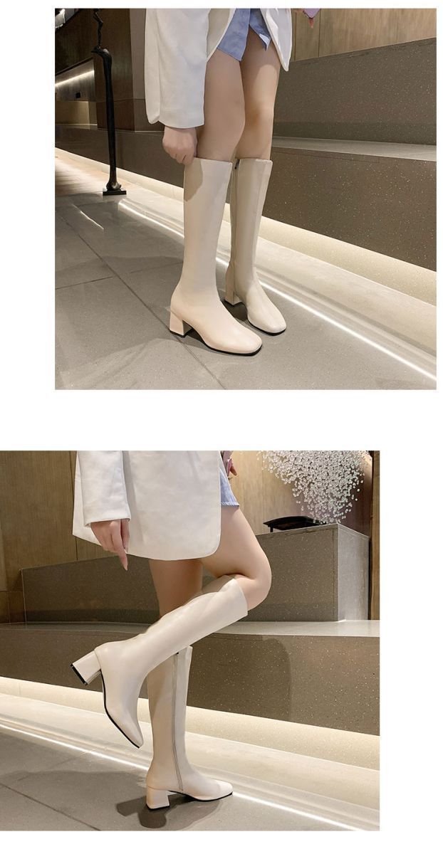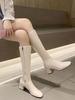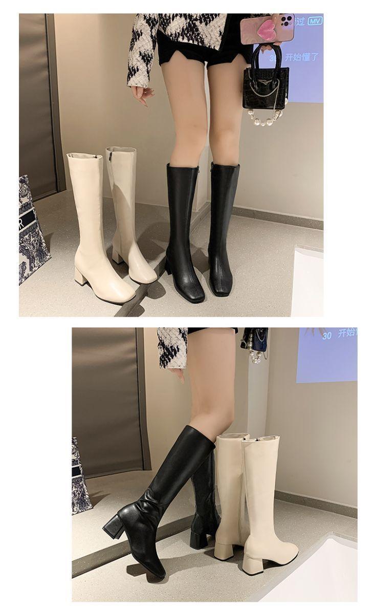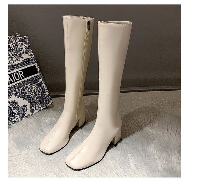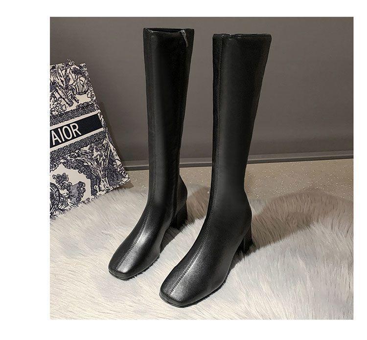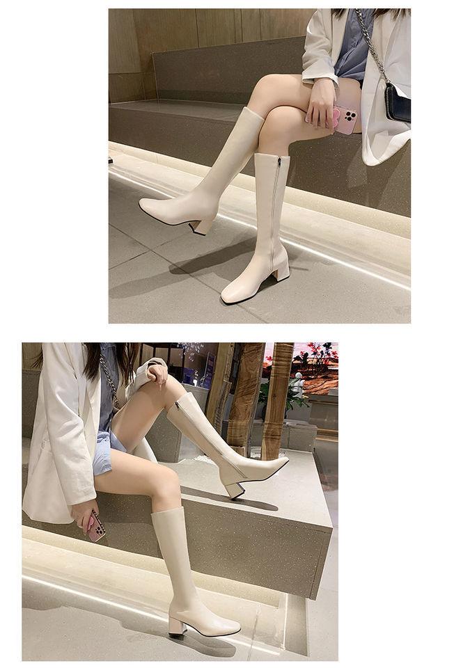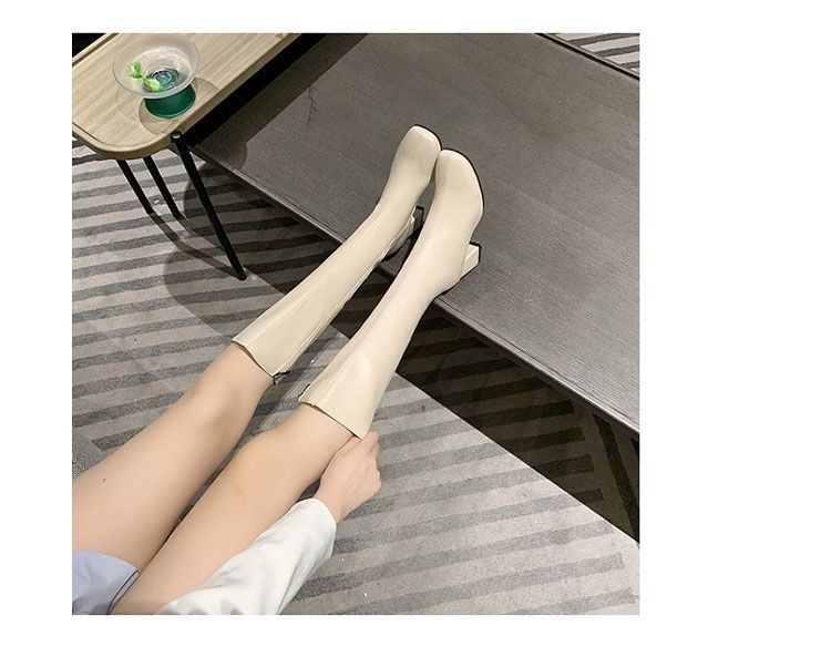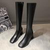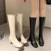 Botas largas por encima de la rodilla para mujer 2025 primavera y otoño nuevas botas individuales botas altas tacón grueso punta cuadrada cremallera lateral botas Martin botas de caballero