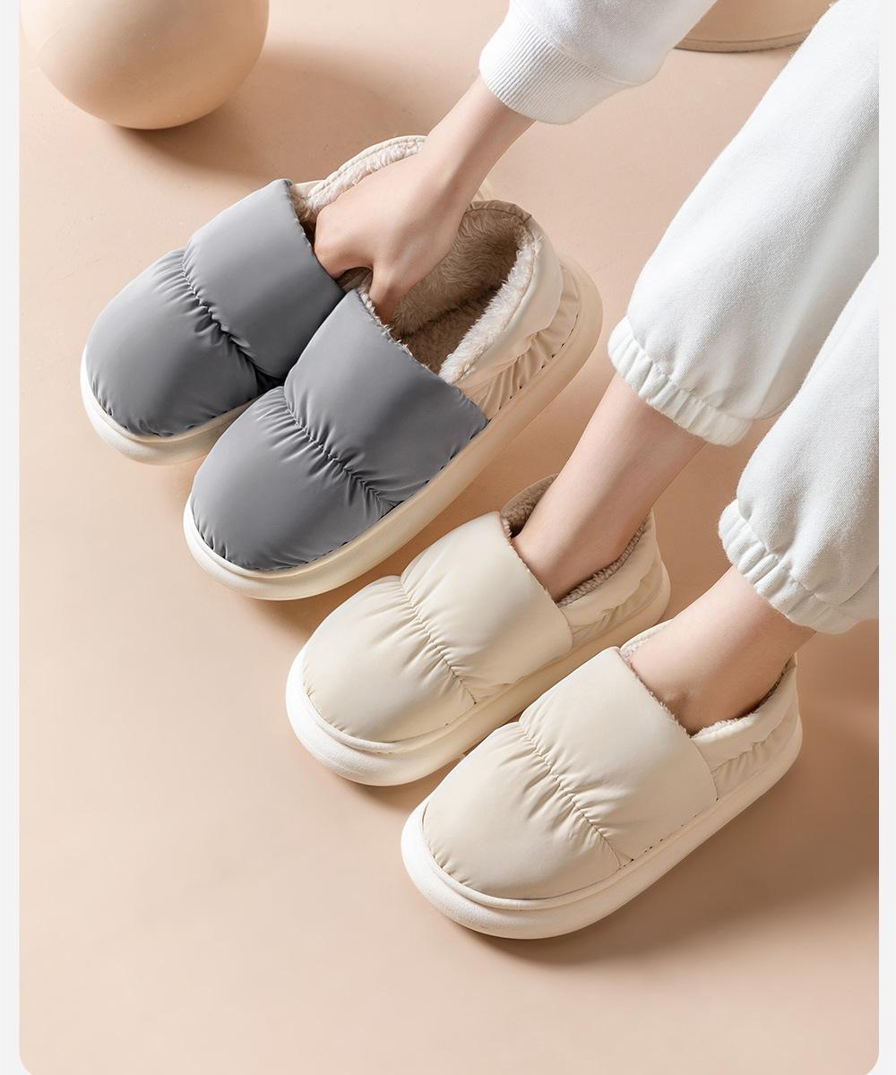 Pantuflas de Algodón Impermeables para Mujer de Talón Cerrado 2025 Nuevo Estilo para Interior Hogar Cálidas Zapatillas de Algodón Plus Terciopelo Peluche Otoño e Invierno Hombre