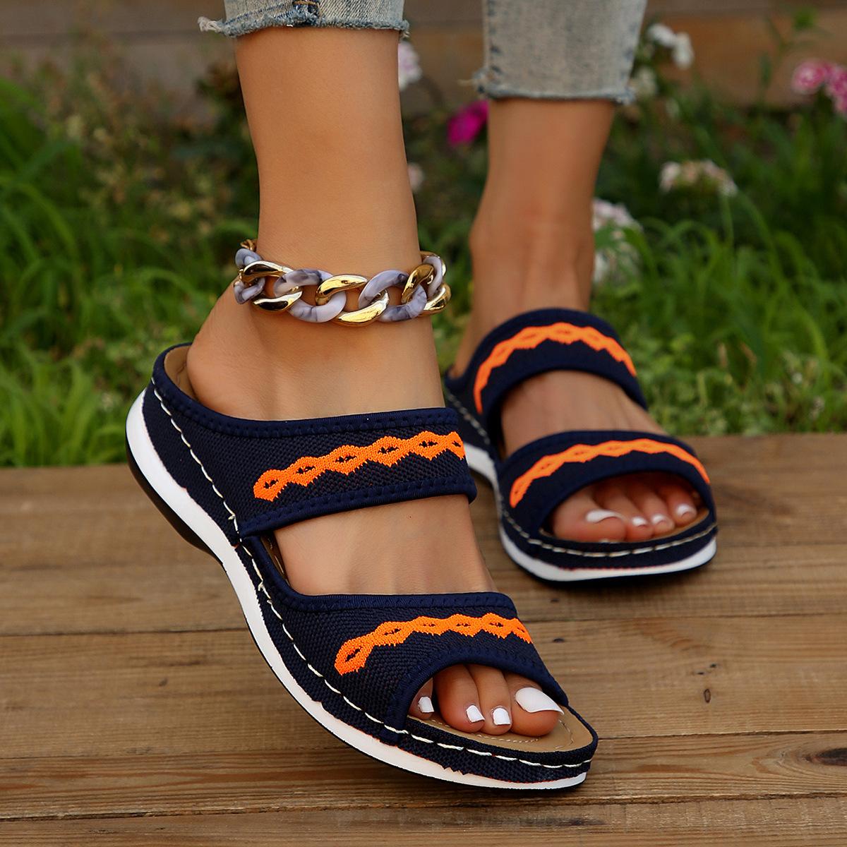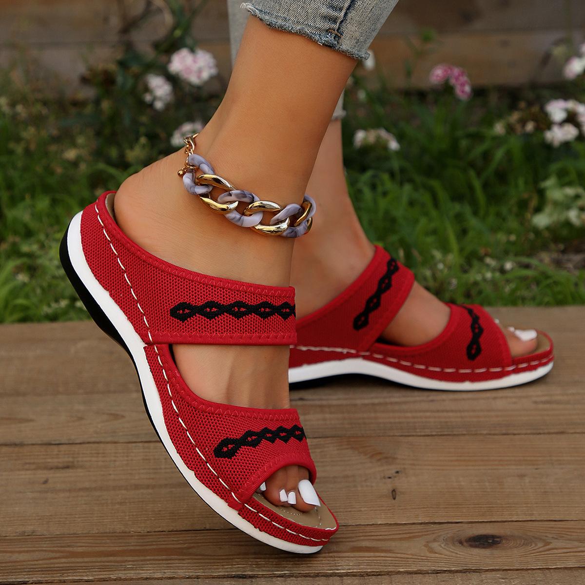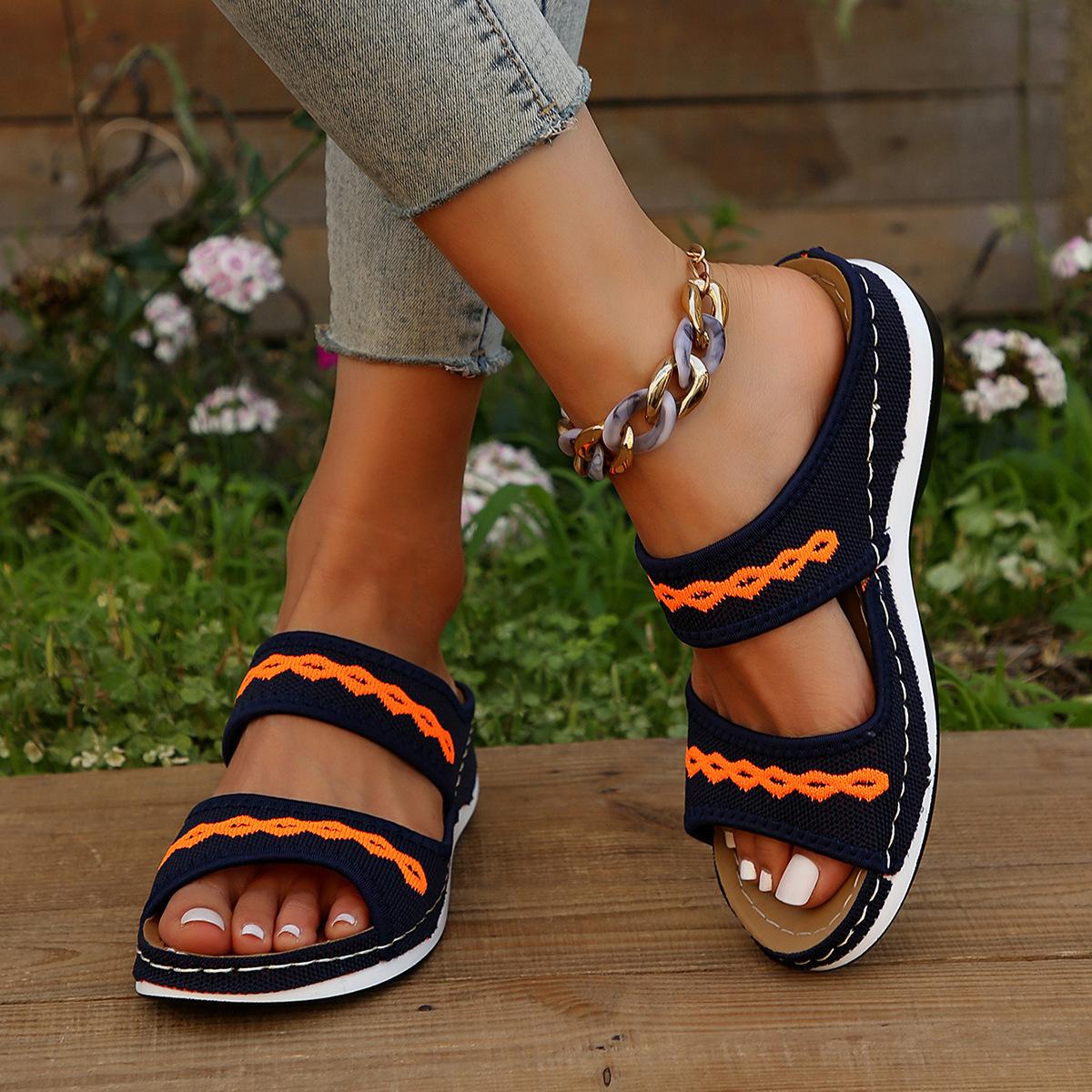 Sandalias de Gran Tamaño para Comercio Exterior para Mujer Primavera y Verano Nuevo Moda Europea y Americana Sandalias Casuales de Suela Gruesa Tejido Fly para Mujer Venta al por Mayor