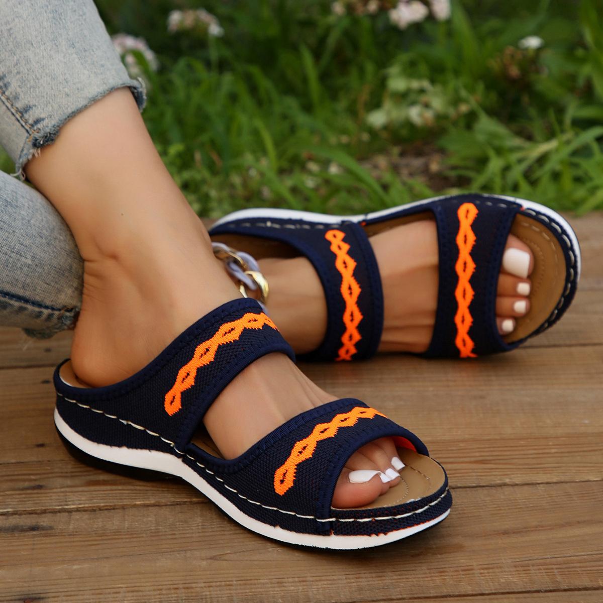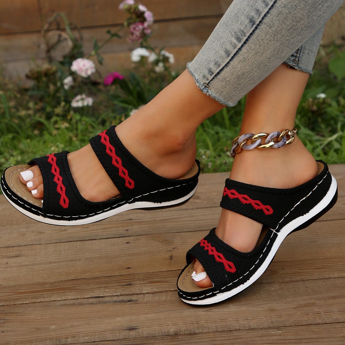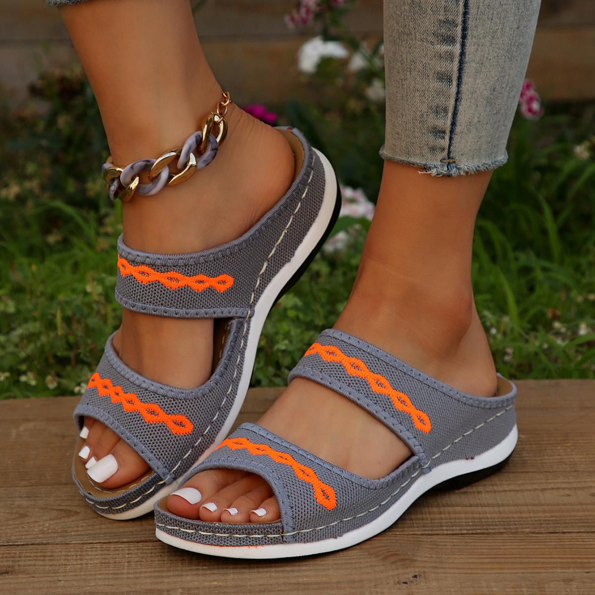 Sandalias de Gran Tamaño para Comercio Exterior para Mujer Primavera y Verano Nuevo Moda Europea y Americana Sandalias Casuales de Suela Gruesa Tejido Fly para Mujer Venta al por Mayor