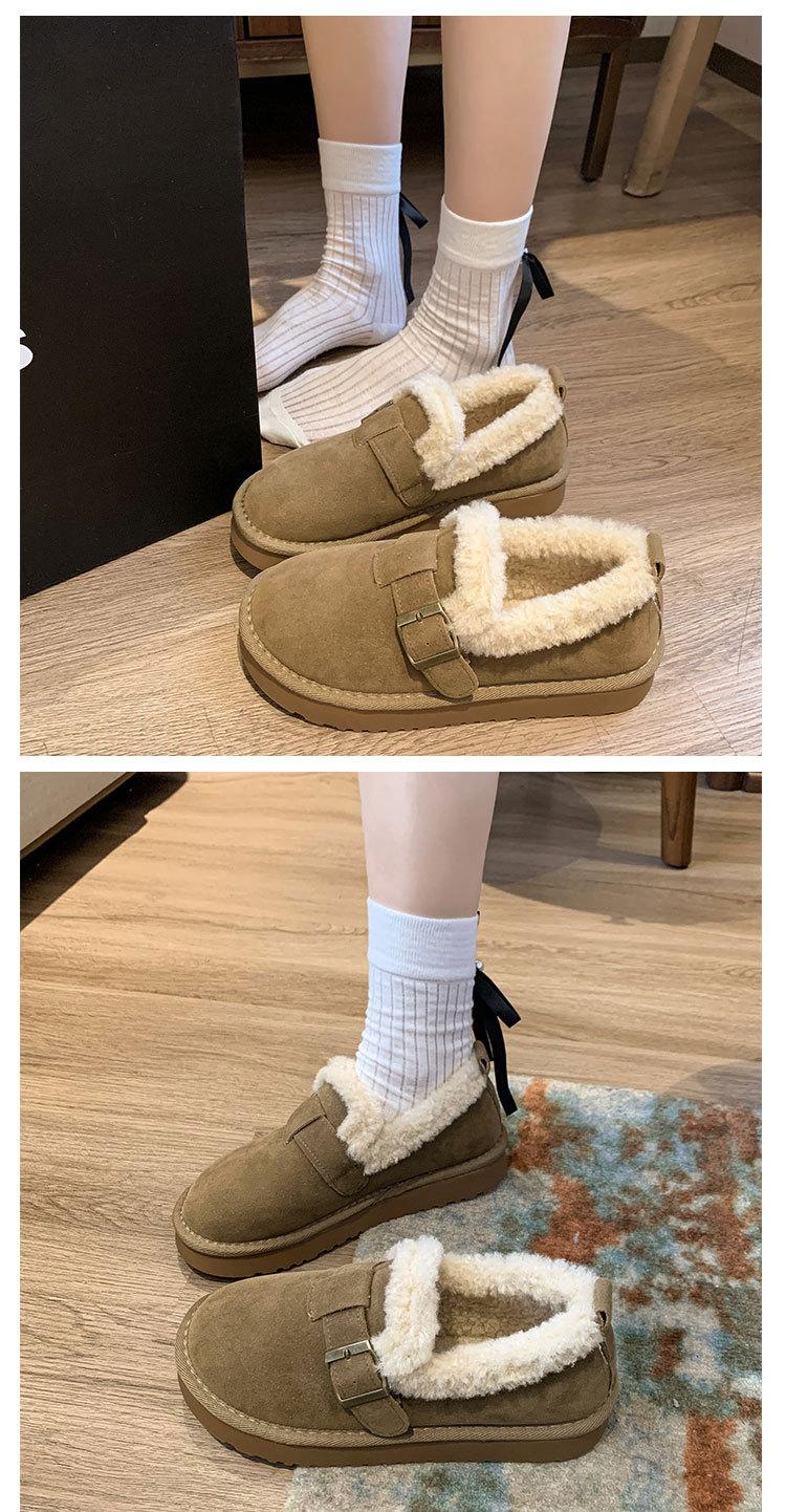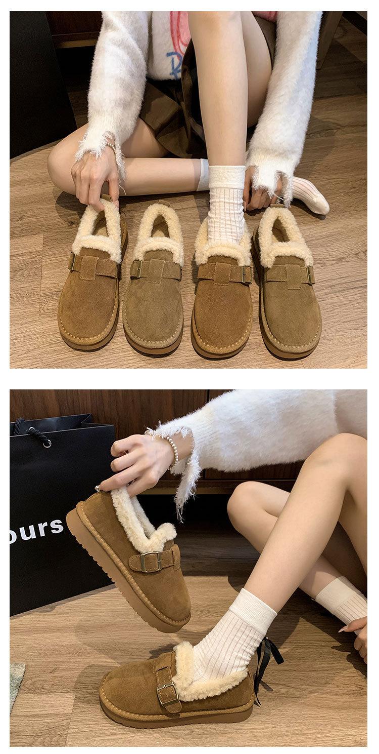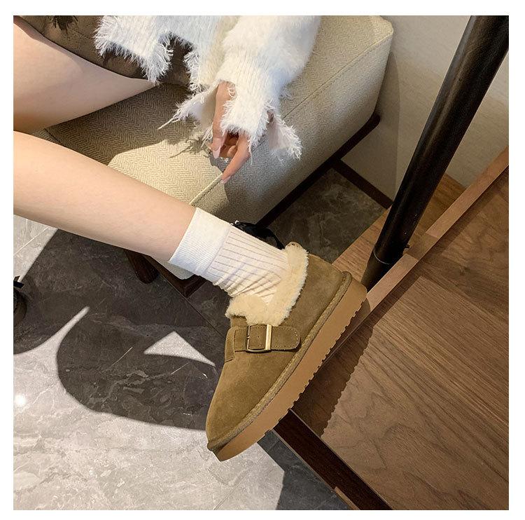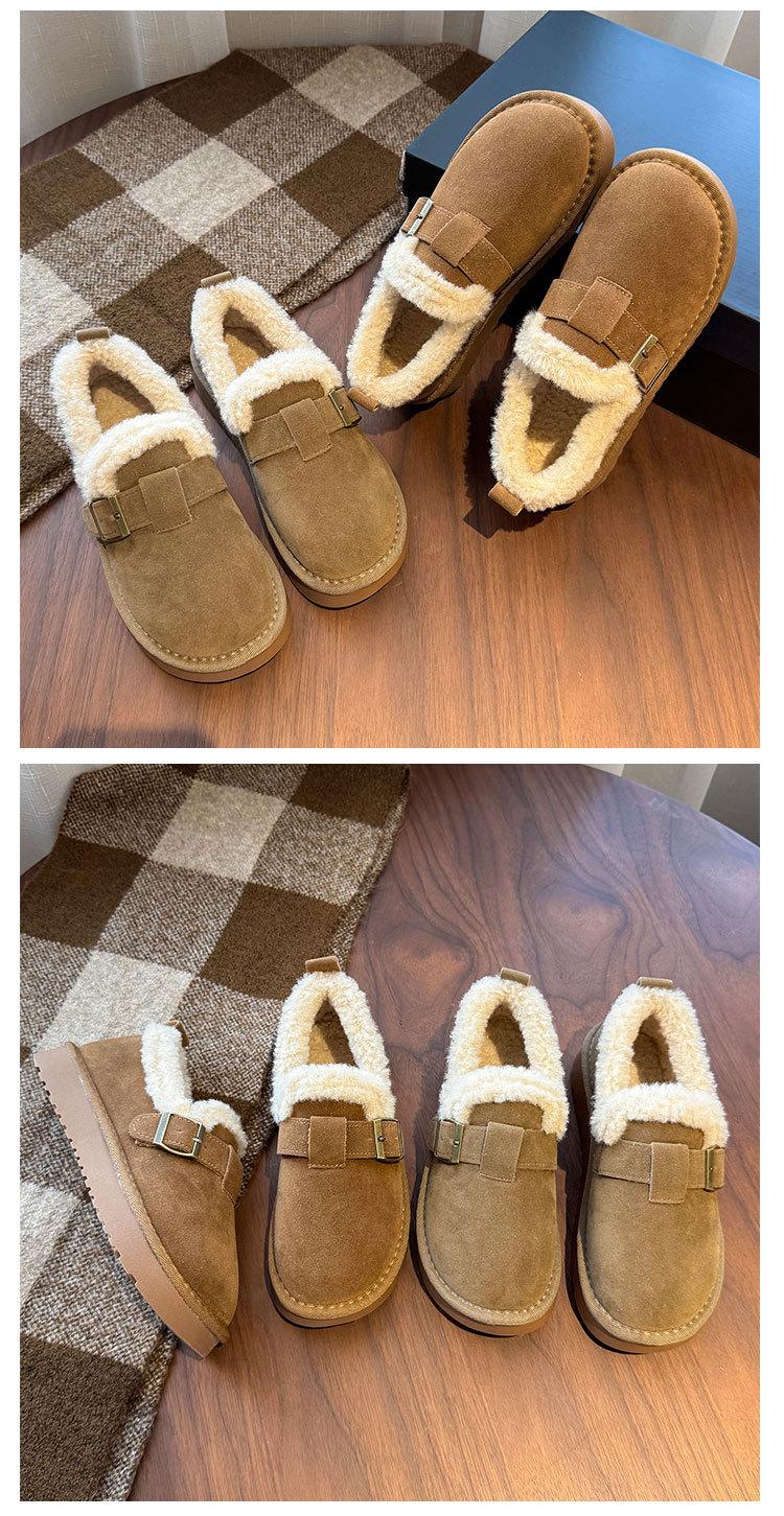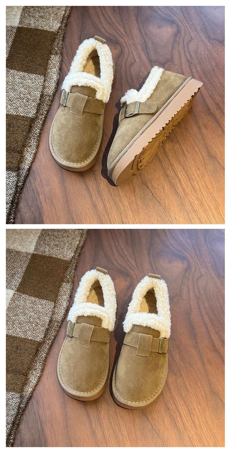 Zapatos de algodón de suela gruesa 2025 invierno gamuza engrosada cálida sin cordones zapatos Birkenstock para mujer nuevos mocasines casuales retro
